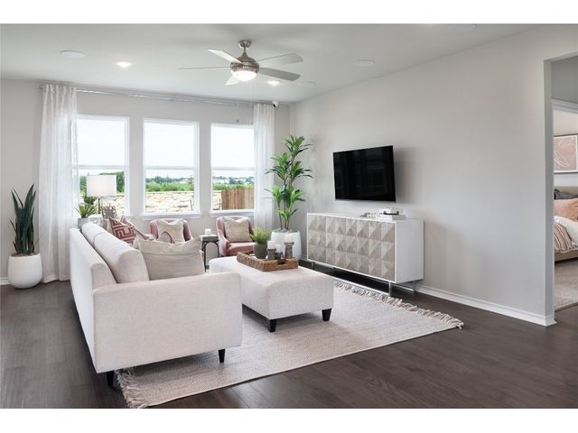 Built by Taylor Morrison, August Completion! The Frio at Longview. Step into the inviting Frio floor plan, your spacious sanctuary awaits. Enter through a charming porch into a timeless foyer, where you'll find a bedroom, bathroom, and laundry room conveniently tucked away. Across the foyer lies a practical 2-car garage and entry. Continue onward to discover the coveted open-concept living space: a gourmet kitchen seamlessly connects to a generous dining area, a cozy great room, and a delightful covered patio. Retreat to the first-floor primary suite featuring a luxurious spa-like bath and expansive walk-in closet before ascending the stairs. Upstairs, you'll find three bedrooms each with walk-in closets, a bathroom, a storage area, an entertaining game room, and a bird's-eye view of the downstairs area. Structural options include: gas line to back porch, undermount sink in kitchen, and railing on staircase.