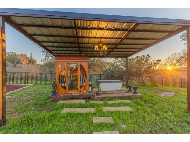 Nestled along the tranquil shores of the Pedernales, this exquisite waterfront property epitomizes the lifestyle of lakeside luxury. As the sun rises and sets, casting a golden hue across the hill country sky, the property awakens to a breathtaking panorama of natural beauty. The seller has spent more than $300k in updates in the last few years including: 1. Land clearing 2.5 acres 2. Defined a driveway with railroad ties 3. 40k fence 4. 16k gate 5. full hookups for 25 amp RV. (largest kind) 6. shipping container for storage 7. Added 1 full bath 8. Added bedroom (unfinished) 9. accordion doors to patio 10. Added cover patio 11. Added pergola with ice bath and sauna ( Ice bath negotiable to stay) sauna stays 12. Added 50k stairs to connect to waterfront 13. Added 40k boat dock 14. 40k boat on boat dock (negotiable) 15. Added water softener for the whole house and reverse osmosis drinking water 6k 16. landscaping rocks to define areas, flower beds, rocks around trees, pathways, rubber mulch for play or entertaining area. These are motivated sellers and have priced below tax valuation at a loss for them. This property can be used as an AirBNB. Please bring all offers and be kind.