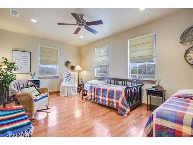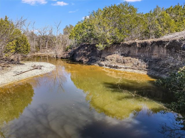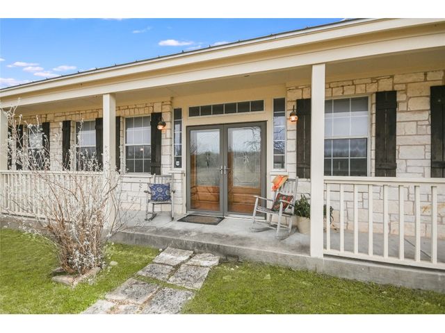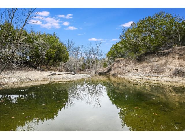 Are you looking for peace next to a flowing stream? Here it is just 15 min. from both Burnet and Bertram west of Liberty Hill on the North San Gabriel River! This Wildlife Exempt 60.40 acre ranch is split in two by the San Gabriel River! Partially fenced on two sides it once was open for grazing, but now is a sanctuary for songbirds. Through the gate and down the gravel driveway that runs parallel to the river you will pass groves of large pecan trees shading meadows. At the driver's end is the stone ranch house with 3 bedrooms and 2 baths, a game room/bunkroom, and a fully equipped kitchen with granite countertops open to the spacious living room and dining area. The vaulted ceiling punctuates the vast space that overlooks the expanse of gleaming oak flooring. A corner stone woodburning fireplace with a mantel and hearth warms the room and provides enough wall space to enjoy the fire and entertainment center at the same time. Walls of windows allow plentiful natural light throughout the home! The primary bedroom also has high ceilings, a walk-in closet with hardwood doors, and private access to the covered porch that surrounds most of the house. It is conveniently located next to a hall bath with a tiled shower and single granite vanity. The large bunkroom/game room is just across from the kitchen. On the other side of the house are two guest rooms that share a hall bath that includes two separate vanities, a tub/shower combo, and a stacked washer and dryer. Outside is the wrap-around porch which is 2/3 covered and overlooks the land down to the river. The shed holds the water well and holding tank. The septic field is in the back to the side of the house. Much of the property is natural with oaks, cedar, pecan, cottonwood, and mesquite trees. The land is subdivided into two lots, and offers many possibilities of use: build guest cottages on the other side of the river? Clear space for gardens? VRBO perhaps? Furnishings are available, too! Join the Wild Life!
