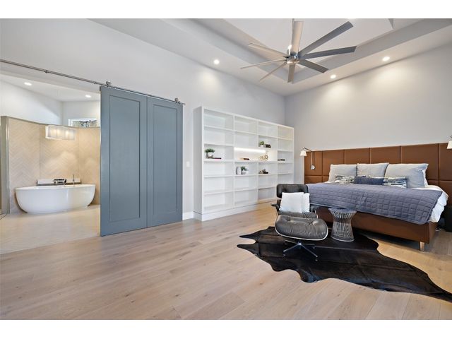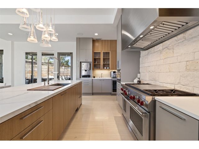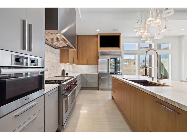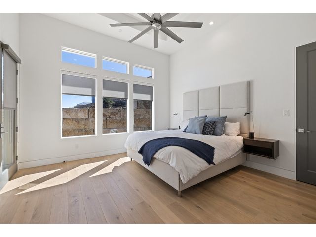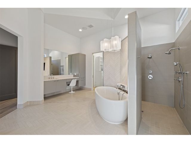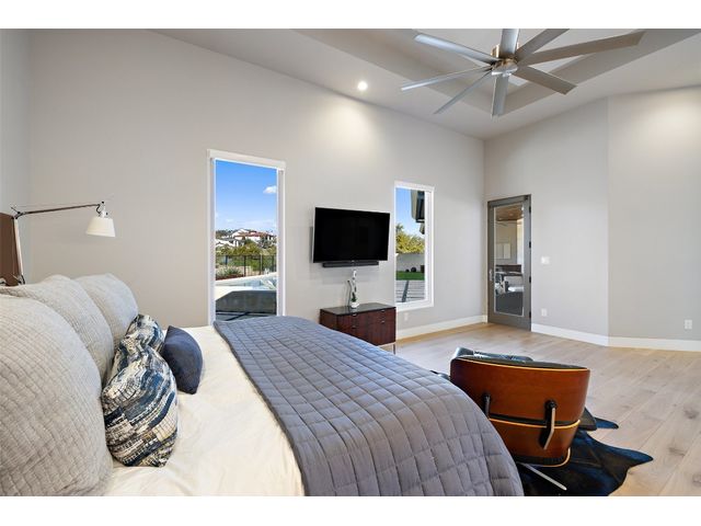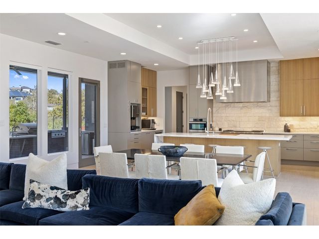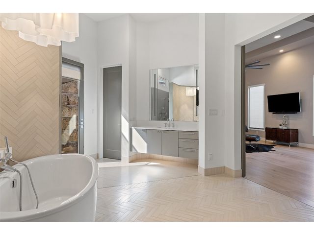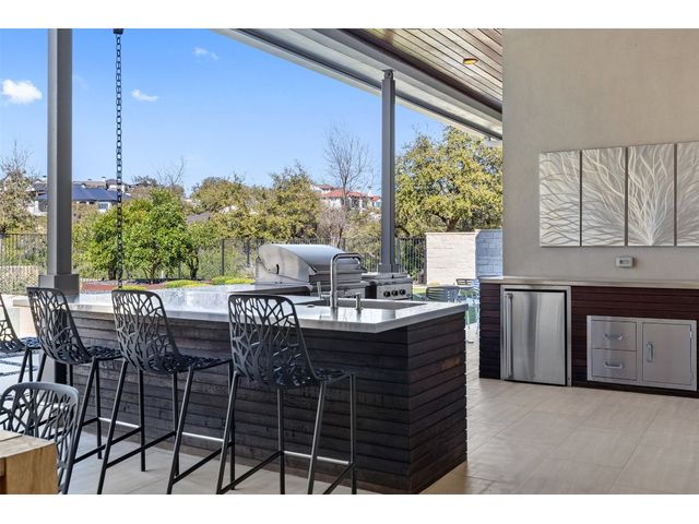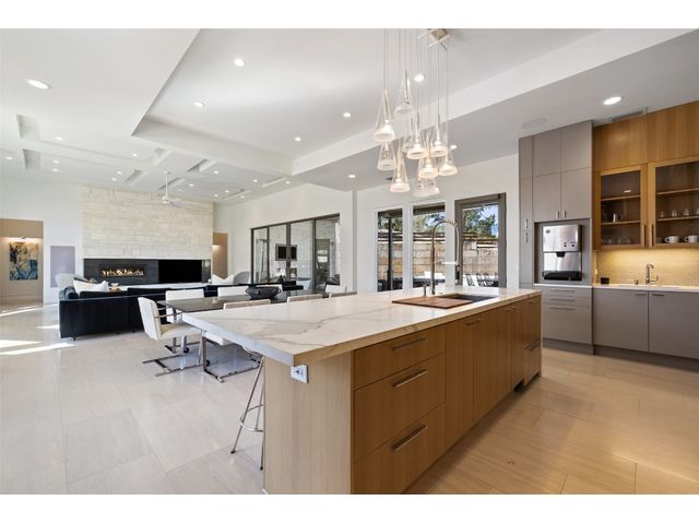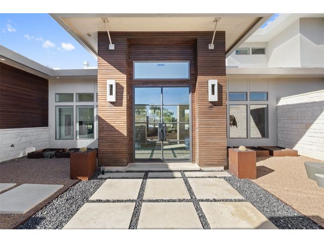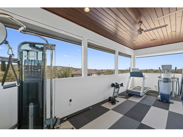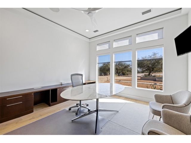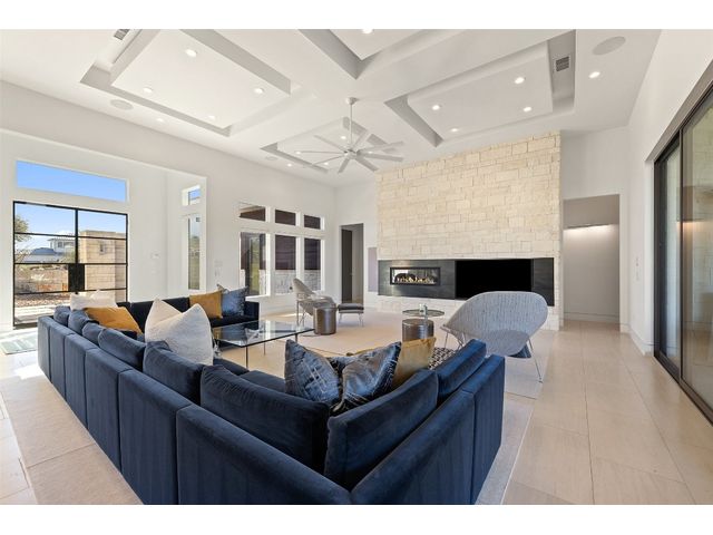 Welcome to 8300 Verde Mesa! Situated on a nearly 2-acre cul-de-sac lot with hill country views, this 4-bedroom, 6-bathroom home in Belvedere provides a serene retreat. This home lives like a single story with light-filled open spaces, every room has unique ceiling treatments, custom window shades, and surround sound speakers. The expansive primary bedroom opens to the back patio pool area and a private deck. The primary bathroom boasts a walk-through shower, soaking tub, and dual vanity with quartz countertops. The open kitchen is perfect for gatherings, featuring a quartz waterfall island and commercial-grade appliances. The secondary bedroom with an ensuite bath and also has access to the front courtyard. Additionally on the first floor, there is a dedicated study with bookshelves, a two washer/two dryer laundry room, and a craft room with ample storage enhance the functionality of the home. Upstairs, the fitness room has panoramic views, a media room with a kitchenette, and two spacious bedrooms with ensuite bathrooms. The outside patio is accessed through double sliding glass doors for seamless indoor/outdoor entertaining. revealing a covered patio, outdoor living area with a fireplace, outdoor dining, and kitchen. After a dip in the pool/spa, enjoy the convenience of an outdoor shower. The community amenities includes 80 acres of trails, a lazy river, splash pad, fishing pond, natural preserve, sport court, and an amenity center where social events are hosted. Furniture is negotiable.