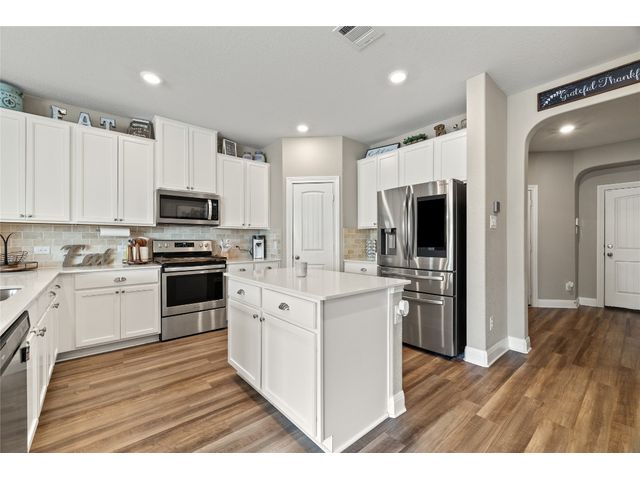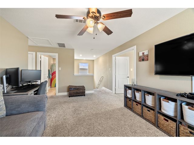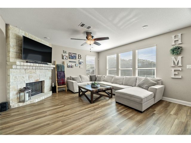 Corner lot home featuring 4 bedrooms, 3 bathrooms with a lot of storage space in the La Conterra subdivision. This 2,594 sqft 2-story home is an open concept plan with a game room and covered patio. The living room is pre-wired for surround sound and the garage has upgraded overhead storage and a water softener. The amenity center includes a basketball court, playscape and Junior-Olympic sized swimming pool. Families can enjoy time at nearby Teravista Golf Club, Round Rock Premium Outlets, IKEA, Wolf Ranch Town Center, and the gorgeous San Gabriel and Old Settlers Park for outdoor fun. Nestled in a suburban neighborhood close to Austin for work and additional activities.