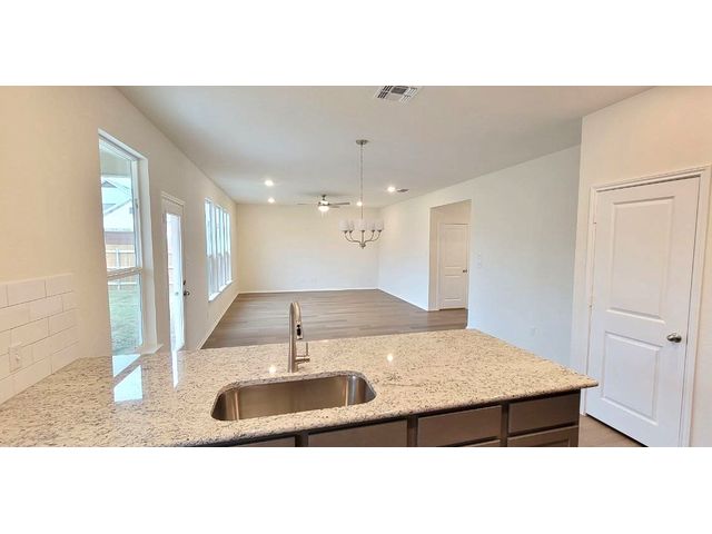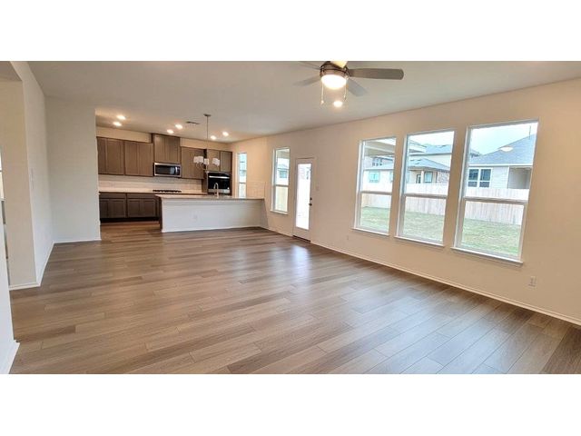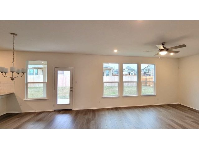 **BUYER INCENTIVE AVAILABLE, SEE SALES TEAM FOR DETAILS** Discover the essence of style and comfort in this beautiful, two-story home. Inside, discover an open floor plan with 9-ft. first-floor ceilings and a spacious family room. A versatile den provides space for a home office or playroom. The stylish kitchen boasts 42-in. Shaker-style upper cabinets, granite countertops and a sleek tile backsplash. The downstairs primary suite features a walk-in closet and connecting bath with dual-sink vanity, Silestone® countertops and shower with tile surround. Enjoy plush carpeting at game room and bedrooms and luxury vinyl plank flooring at kitchen, family room, dining room, den and bathrooms. Additional highlights include ceiling fans at family room and primary bedroom and an ecobee3 lite smart thermostat. Relax outdoors on the covered back patio.