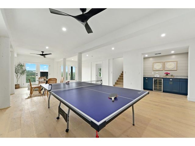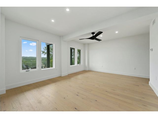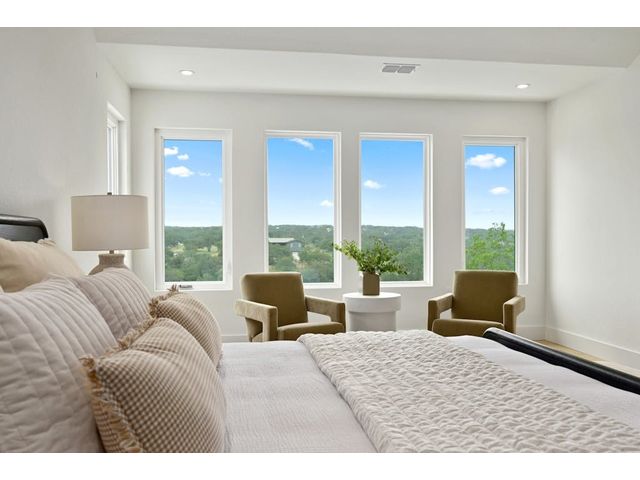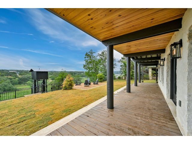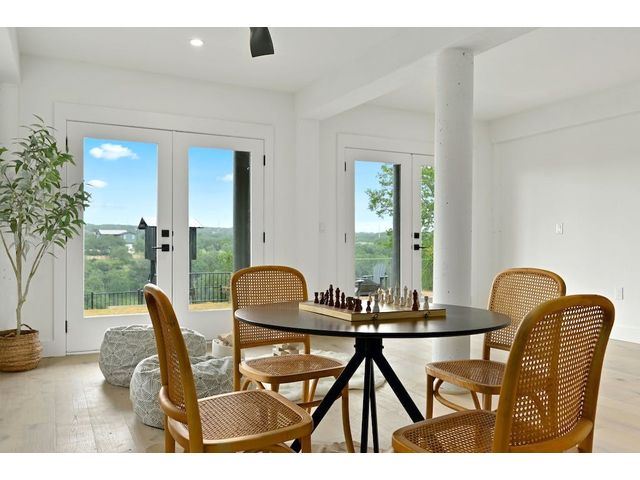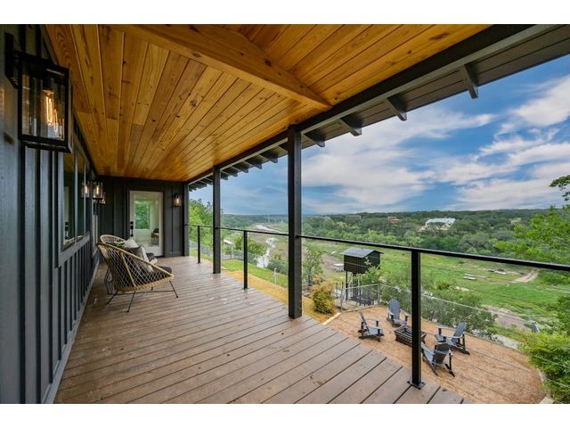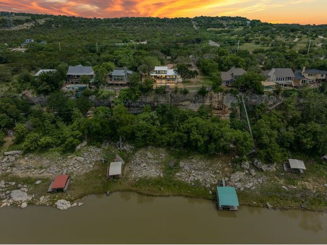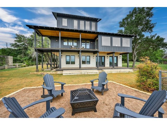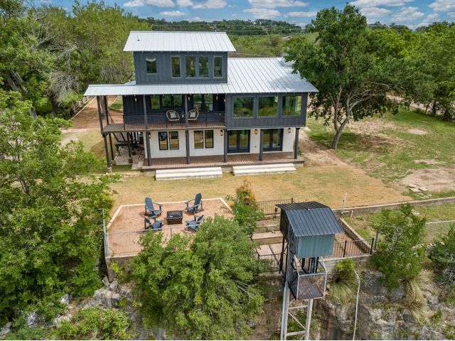 PARADISE ON THE PEDERNALES -Discover the ultimate luxury retreat along the Pedernales River where this remarkable home stands as a testament to the exquisite craftsmanship & waterfront living. With incredible views of the river and hill country, as well as breathtaking sunsets, this glorious property is truly a sight to behold. Upon arrival, a gated entrance revels a multi-level home with modern architecture and a large yard that will leave you in awe...The home features 4 bedrooms, 3 full bathrooms and 2 living areas -1 on the main level and one on the lower level. The lower level includes a spacious owner's suite with dual vanity and a game room /den with wet bar. Main floor has an open concept kitchen with gorgeous quartz countertops and living area with fireplace and stellar views- prepare for spectacular sunsets! Two bedrooms that share a stylish bathroom complete the main level. A second owner's suite is located on the top floor which boasts views galore. The spa like bathroom offers a double vanity, a glass enclosed walk in shower with a soaking tub, closet with custom built-ins and large plank blonde hardwood floors throughout. The home has water access and a fantastic living space. Enjoy evenings by the fire-pit or relax in the shade of the covered porch, perfect for outdoor entertaining. The covered balcony on the 2nd level provides scenic views of the river and hill country, offering an idyllic spot for morning coffee or wine at sunset. With a seamless blend of modern luxury, comfort & style. The property can accommodate a pickle ball/sports court, casita or pool house, pool etc. Build your compound! Elevator to take you down to the water is manually operable only. Current survey and TCAD letter has the property line extending into the water and is +/- 2 acres. Buyer to get new survey. Home can be used as short term rental- relevant as there are many attractions nearby- golf, Lake Travis, distilleries, wineries, etc. No HOA.