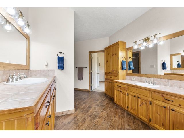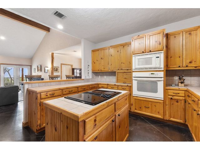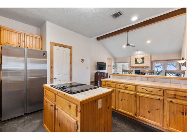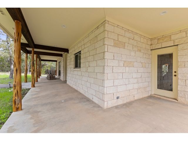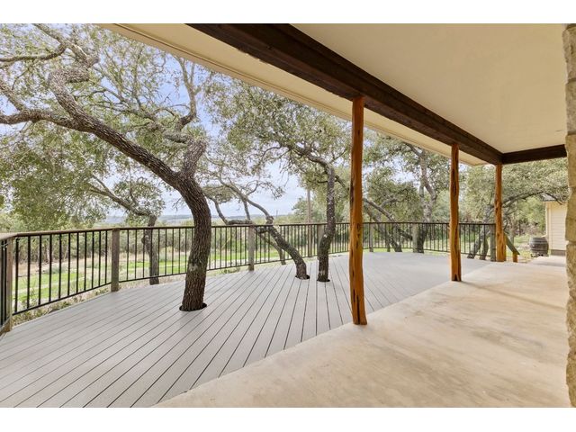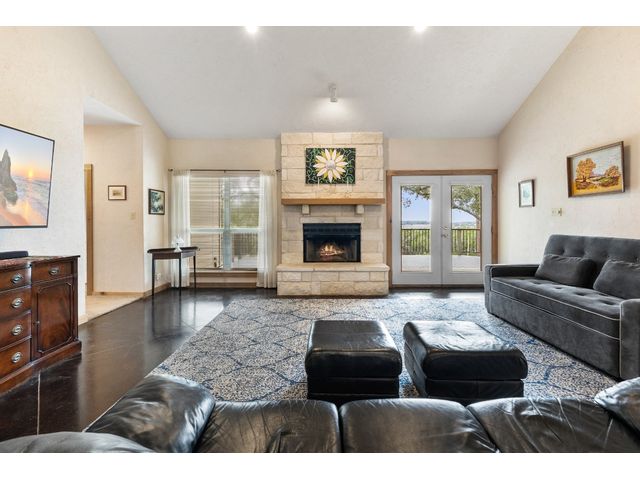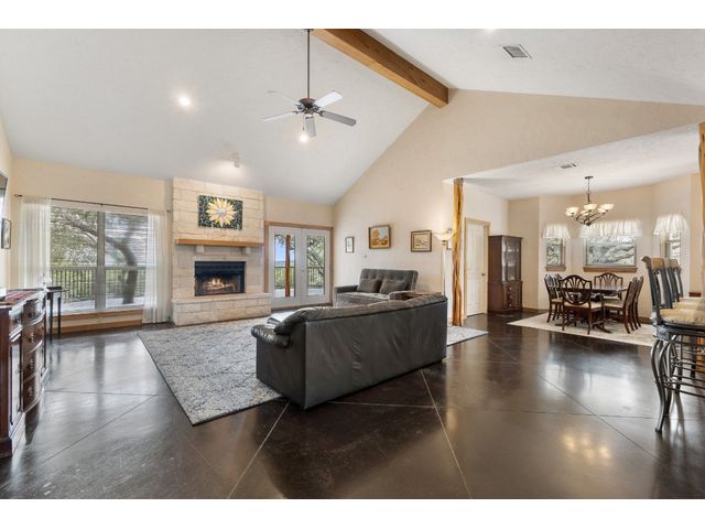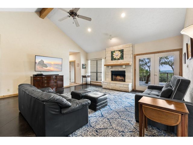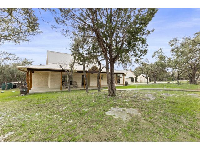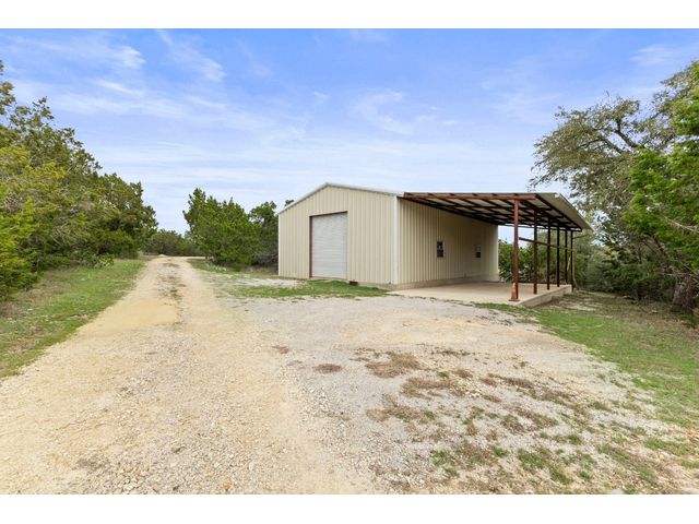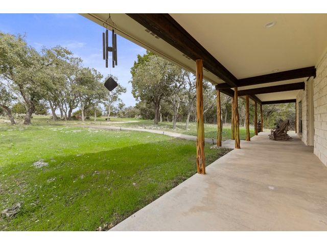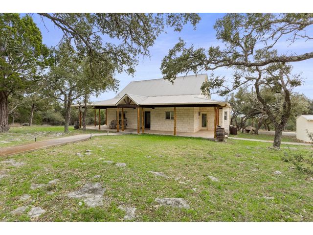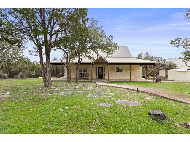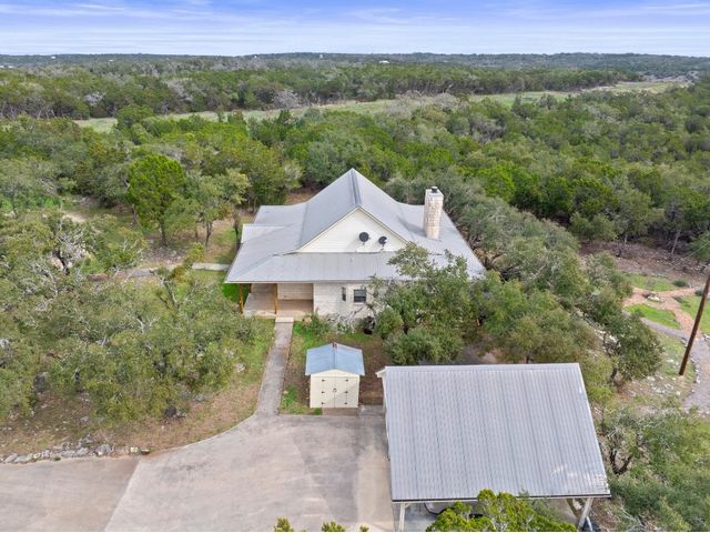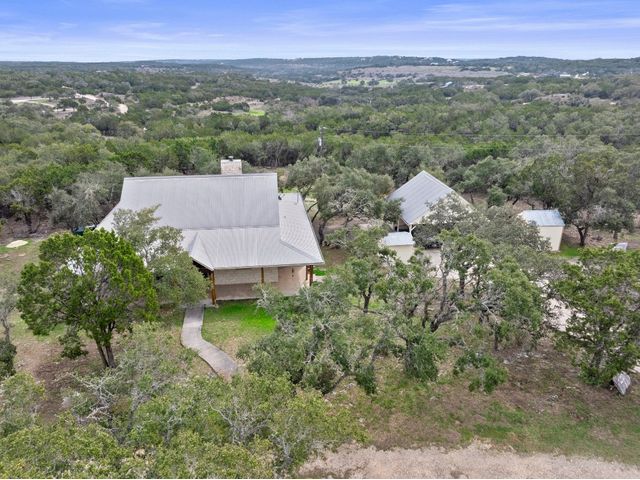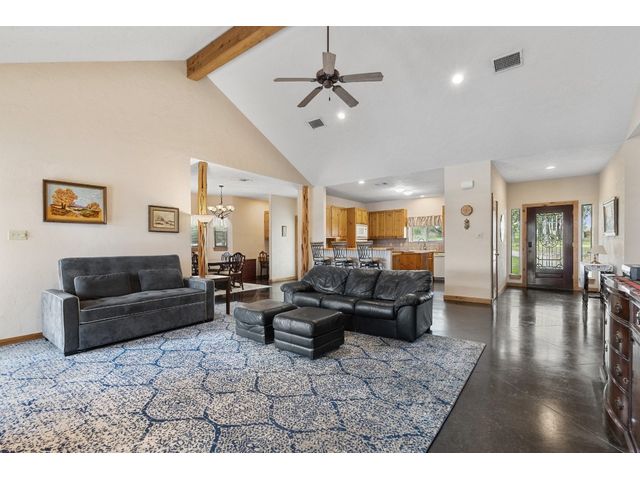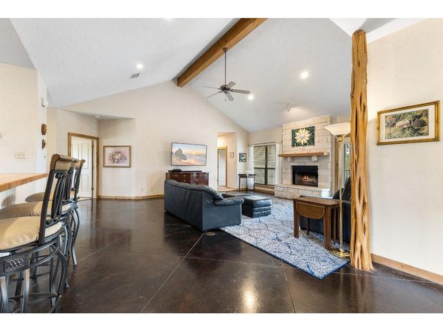 Welcome to this Skyline retreat! This stunning 2,000 sq ft, single-story home nestled on 10+ fully fenced acres of picturesque landscape offers the epitome of tranquil living. LOW tax rate of 1.4%. A circular driveway leads you to the front of the home, where you'll be greeted by a white Austin stone exterior, large covered porch and a metal roof. As you step inside, you'll feel the warm embrace of wood and pine trim throughout. The open floorplan seamlessly connects the living, dining and kitchen, making it perfect for entertaining. The kitchen has a convenient island & bar seating. High vaulted ceilings and a wood-burning fireplace adorned with white Austin stone in the living room. Step outside to the patio or the Trex deck to soak in the breathtaking views that stretch for miles in every direction. This home features a desirable MIL plan, with the primary bed offering direct access to the outdoors, a large tub, separate shower, dual sinks and a walk-in closet. Two additional bedrooms and a full bath are on the opposite side of the house. All bedrooms have ceiling fans. Recessed lighting replaced with flush mount LED lights. Outside, you'll discover a host of amenities including a fenced-in garden area, a 2-car covered carport with attached workshop and a firepit. The barn/metal 30 x 50 building features a covered spot for an RV, electricity, roll up doors, and a dusk to dawn security light. Motion detection lighting under the carport and all sides of the house. Additional highlights include cleared trails, rain collection systems, and a well with a pump house & water softener. Don't miss your chance to own this slice of paradise, where peace and tranquility await at every turn.