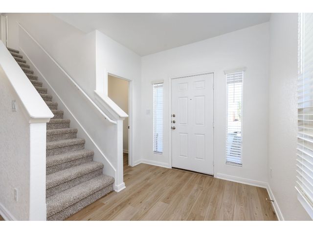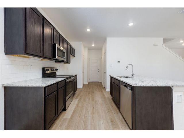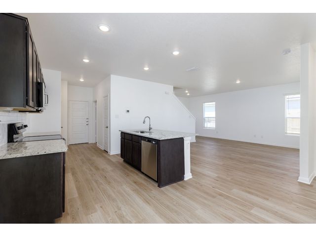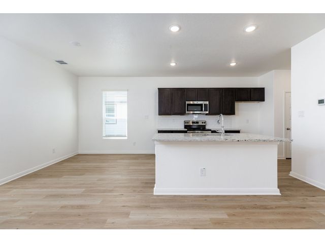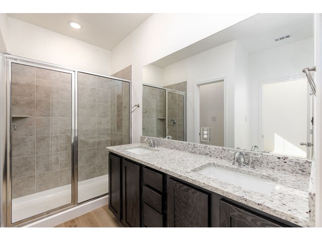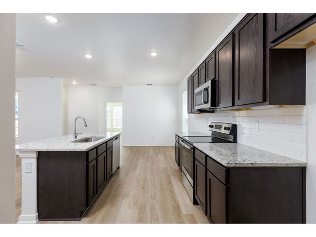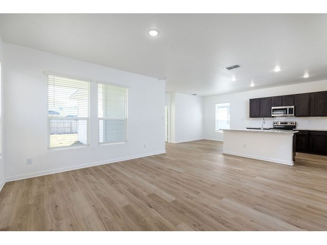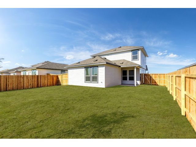 Welcome to this stunning single-family home in the heart of Seguin, TX, offering a perfect blend of modern luxury and comfort. As you step into the foyer, you are greeted by the warmth of luxury vinyl plank flooring that extends throughout the first floor. The 9-foot ceilings on the main level create an open and airy ambiance, enhancing the sense of space. The main level is designed for convenience with both the primary suite and the laundry room thoughtfully placed for easy access. The primary suite provides a serene retreat with ample natural light, while the en-suite bathroom features a stylish standing shower and dual vanity sink. The upper level of this two-story home is dedicated to comfort and functionality. Three bedrooms provide ample space for family and guests and a unique middle bathroom, with a separate vanity from the tub and toilet for added privacy, ensures convenience without compromising on style. A loft area upstairs adds a versatile space that can be customized to suit your lifestyle. The heart of the home, the open kitchen, is a chef's dream. Recessed lighting highlights the granite countertops and beautiful 36-inch oak cabinets. Stainless steel appliances add a touch of sophistication, making this kitchen both stylish and practical. The tasteful backsplash lighting further enhances the overall aesthetic. Enjoy the Texas weather on the spacious covered patio, surrounded by a privacy fence that creates an intimate outdoor space for relaxation and entertaining. Located in award winning Navarro ISD, just 5 miles to IH-35, close to Texas Lutheran University, restaurants, and shopping.