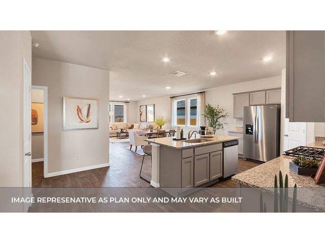 UNDER CONSTRUCTION - EST COMPLETION IN MAY Photos are representative of plan and may vary as built. The Gaven II is a thoughtfully designed 1,773 sq. ft. 4 bedroom, 2 bath home perfect for any family. This beautiful home features a spacious kitchen with a walk in pantry and large kitchen island. The kitchen also features granite countertops and stainless steel appliances. The kitchen overlooks the dining area and large family room. Enjoy the open space perfect for entertaining. The main bedroom, bedroom 1, is located off the large family room and includes a huge walk in closet. The Gaven II also offers a large covered patio with full yard irrigation and sod. This home includes our HOME IS CONNECTED base package which includes the Alexa Voice control, Front Door Bell, Front Door Deadbolt Lock, Home Hub, Light Switch, and Thermostat.