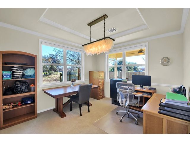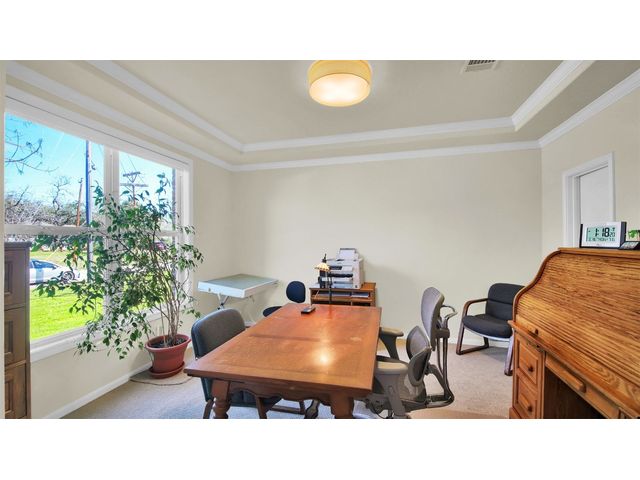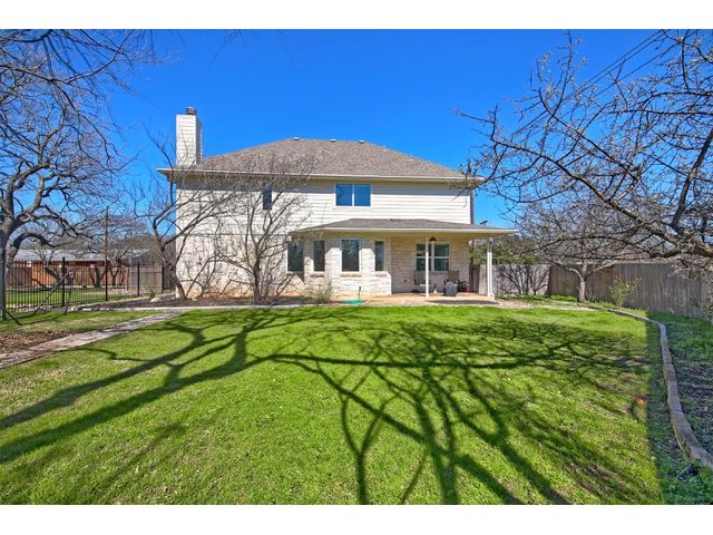 Nestled on a quiet street and large lot, this inviting residence boasts 5 bedrooms, 2 living areas, and 2.5 baths, featuring new carpet throughout. Crafted for culinary excellence, the open-style kitchen showcases a Bosch induction stove, Blanco Silgranit sink, and hickory cabinets. The island and granite counters provide ample meal prep space, while the adjoining dining room features a captivating Capiz chandelier. Unwind in the living room with a fireplace and bay windows overlooking the yard. The primary bedroom offers a tray ceiling, ensuite bathroom with skylight, and a spacious walk-in closet. Upstairs, a vaulted ceiling living area enhances the living space. The front study, equipped with double French doors, a molded tray ceiling, and a walk-in closet, easily serves as a 5th bedroom. The scenic backyard features rock paths and flowering fruit trees, and contains over 8,000 square feet of newly fence yard with plenty of room for a pickle ball court, or pool! Abundant storage, usable attic space, and a 2-car garage with a Tesla charger complete this charming property. With close proximity to Davis Elementary, major employers, parks, trails, and shopping hubs like the Domain and Arboretum. This home embraces both comfort and convenience. Lot next door at 5315 Bull Run also available for sale. Washer, dryer and refrigerator can covey!