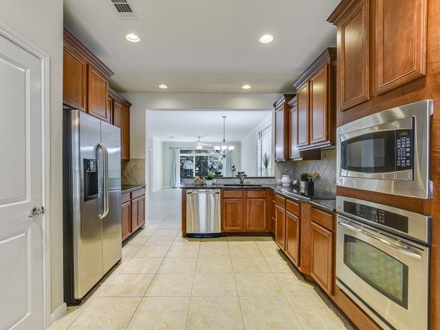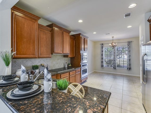 Don't miss this Andover floorplan backing to a very private backyard with lots of trees & shade---extended garage---granite counters in the kitchen---electric cooktop---carpet in the bedrooms & tile everywhere else---sink in the laundry room---bay window in the master---crown molding in the family room---Covered back patio---fenced back yard---Go, Go, Go!....Maintenance repairs complete!!