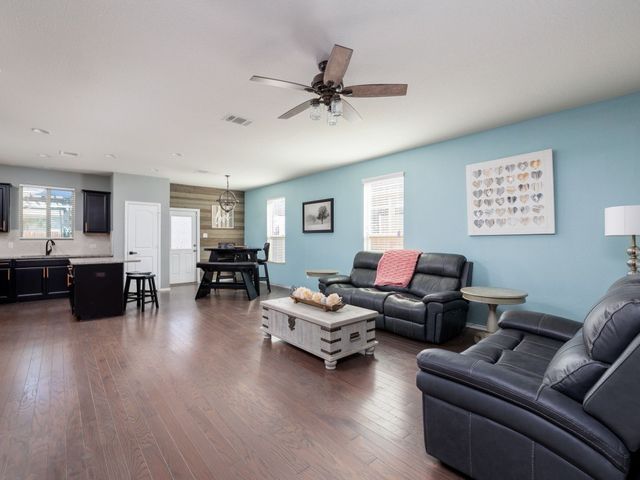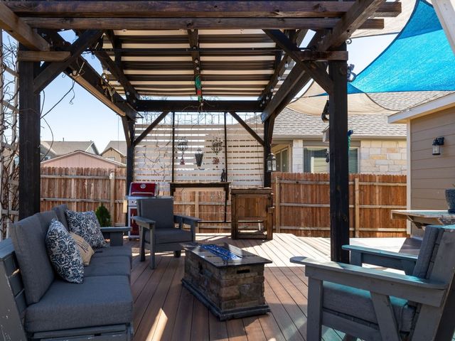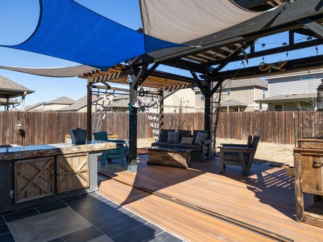 *SELLER OFFERING CONCESSIONS FOR RATE BUY DOWN, FLOOR REPLACEMENT AND / OR PAINT. *Welcome to this lovingly maintained home in the highly sought after Santa Rita Ranch community in Liberty Hill. Step inside this meticulous large floor plan with an open concept living space featuring four bedrooms, three bathrooms, two living areas, & an in-law suite downstairs. This home has something for everyone! The heart of the home is the well-appointed kitchen, with granite countertops, upgraded appliances , a gas range, ample counter space, and custom drawers for easy access to cooking essentials. The kitchen has an ample sized island / breakfast bar that separates the kitchen from the dining area. The primary bedroom is located on the main floor with dual vanities and a huge walk-in closet. Upstairs is the oversized second living area with three additional bedrooms, bathroom and laundry room. Relax in your backyard on a custom deck with a built-in cabinet, trellis and sunshades. There's also raised garden beds to grow your own vegetables. Beyond the home, residents of Santa Rita Ranch enjoy an array of amenities, including resort-style leisure and lap pools, vibrant parks, a dog park, a gym, basketball courts, sand volleyball courts, and scenic trails. With a calendar filled with planned social events, this vibrant community offers endless opportunities for recreation and leisure. Conveniently located just minutes from the Georgetown square, Cedar Park, and easy access to the Domain area, this residence offers the perfect blend of tranquility and accessibility.