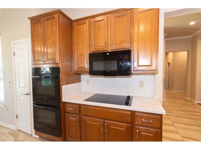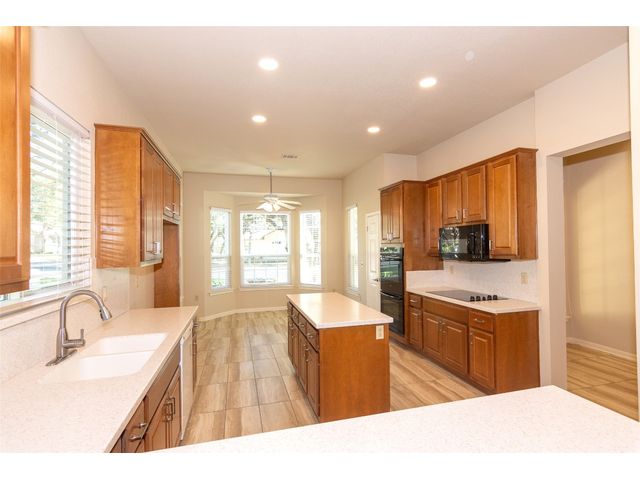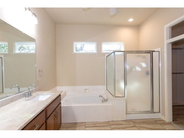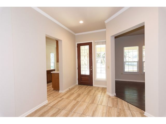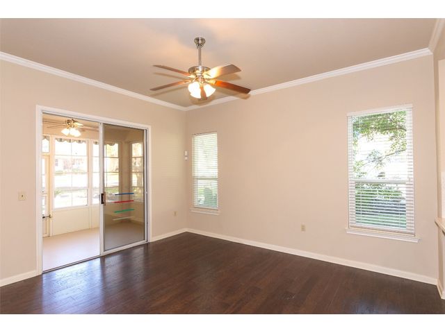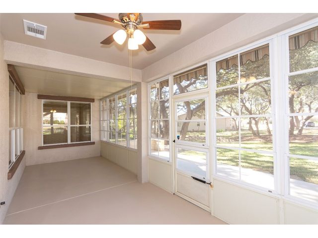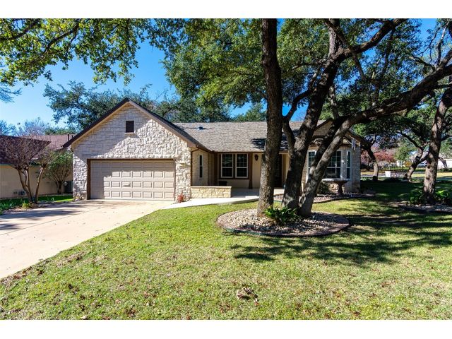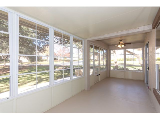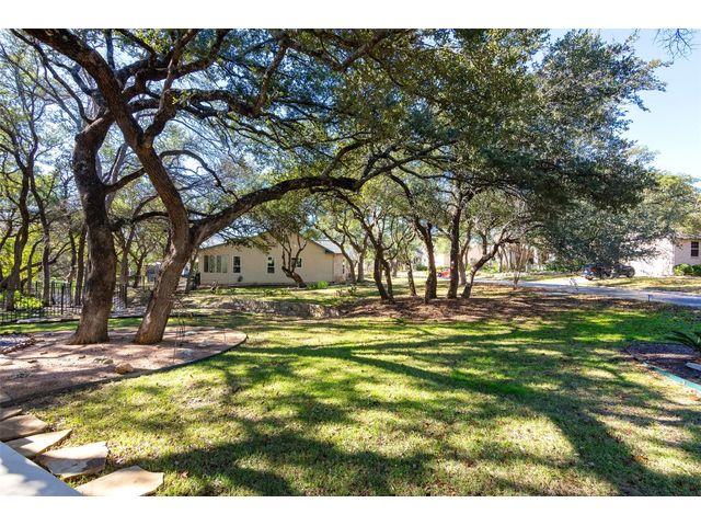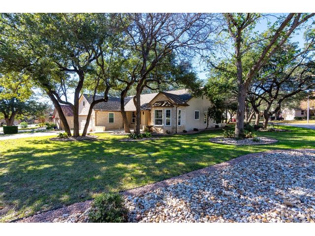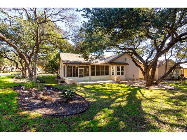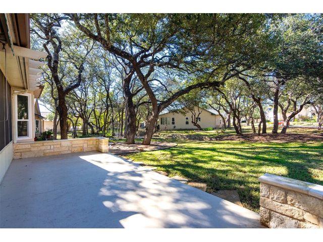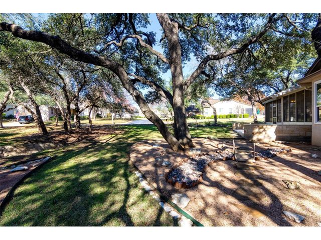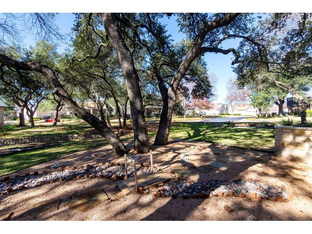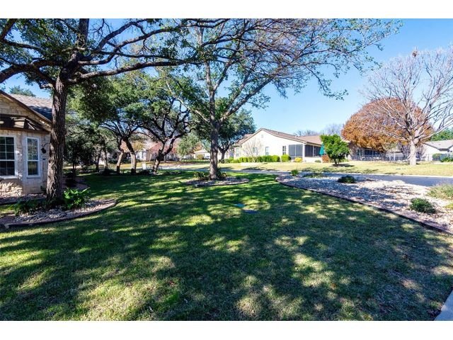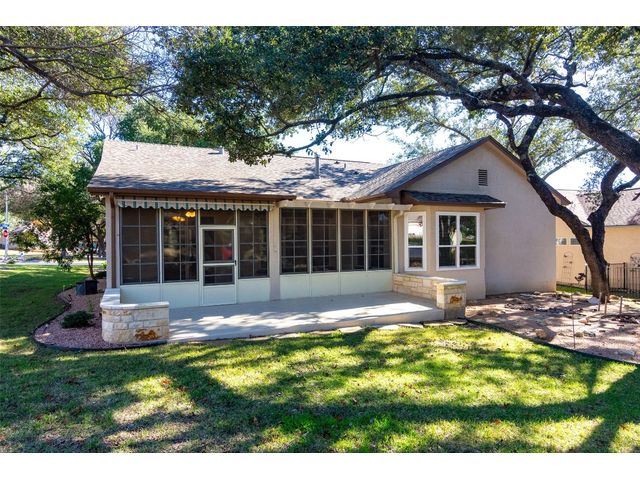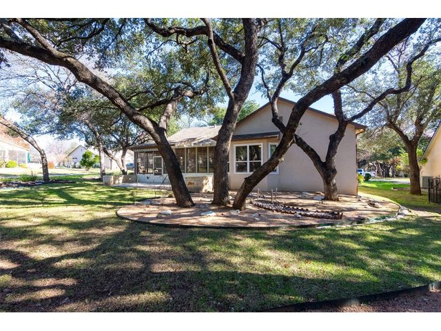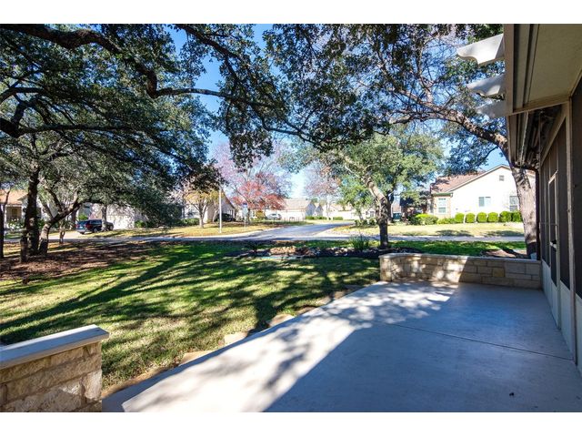 Beautiful White Rock Trinity nestled on a large corner lot under towering trees that back up to a wet weather creek. Owner has lovingly cared for this home and updated it for the last eleven years she lived there. As you will see when you step inside, updates to the inside, for example; running vents so the enclosed back porch will be heated and cooled for comfort, or the three times in 2023 she had professionals trim and feed all her trees. The front and back porch/patios are another addition to this beautiful home. Inside walls and trim have been freshly painted (including ceilings), all new hardware, locking doors, bathroom countertops, re-painted concrete in garage, both patios, and back porch. She even turned the coat closet into a bigger pantry. The biggest upgrade is every window has been replaced in 2022. Roof was replaced upon her move-in and one more time from hail damage. Florissant lighting has been removed and can lighting added to brighten the kitchen, and to make the ceiling more aesthetically pleasing. Agents, please share the "upgrade list" in documents with your clients. There are so many more than I can list here. Another great upgrade you will not see everyday but be glad you have it, is the plywood decking added to the attic so you can literally stand and walk down the middle (with shelving) along both sides! Come see all the love and upgrades my client has given this beautiful home. Please feel the love this home exudes!