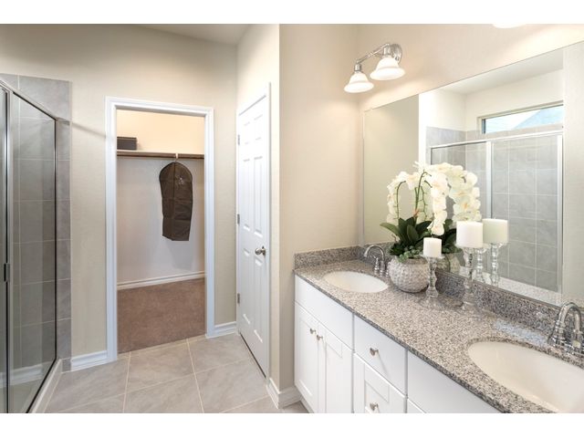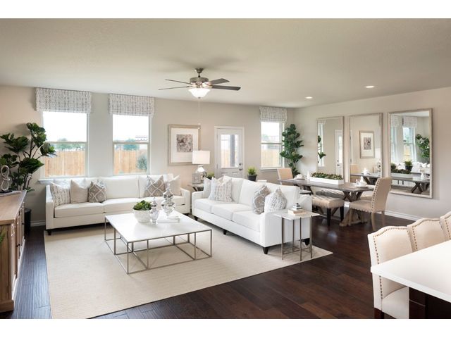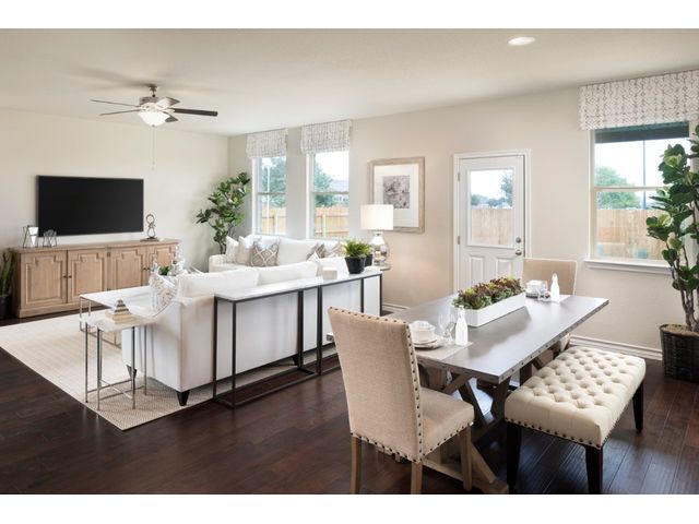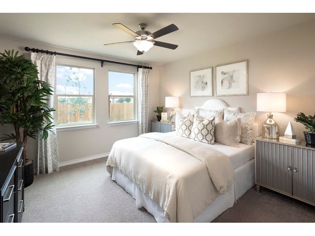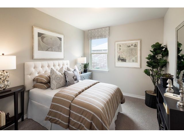 REPRESENTATIVE PHOTOS ADDED. Built by Taylor Morrison, September Completion - The Bosque floor plan is a must-see, offering 1,956 square feet of living space that includes a luxurious owner’s suite, three secondary bedrooms, a gourmet kitchen, and an extended covered back patio. Upon entering through the foyer, you'll be greeted by the inviting gourmet kitchen, which is spacious and well-lit. It features ample counter space, a breakfast bar island, sleek appliances, plenty of tall cabinets, and a large pantry for all your storage needs. The kitchen seamlessly flows into the sunny great room, while the adjacent dining room provides the perfect setting for entertaining guests or hosting family gatherings. Outside, the extended covered back patio offers a wonderful space for enjoying al fresco meals, spending quality time with family, or simply relaxing with friends. Moving down the hallway, you'll find the impressive owner’s suite, complete with dual sinks, a walk-in shower, and an oversized walk-in closet. Bedrooms 2, 3, and 4 are generously sized and share a full bath with a tub/shower combo.