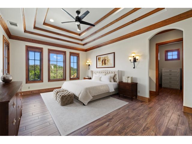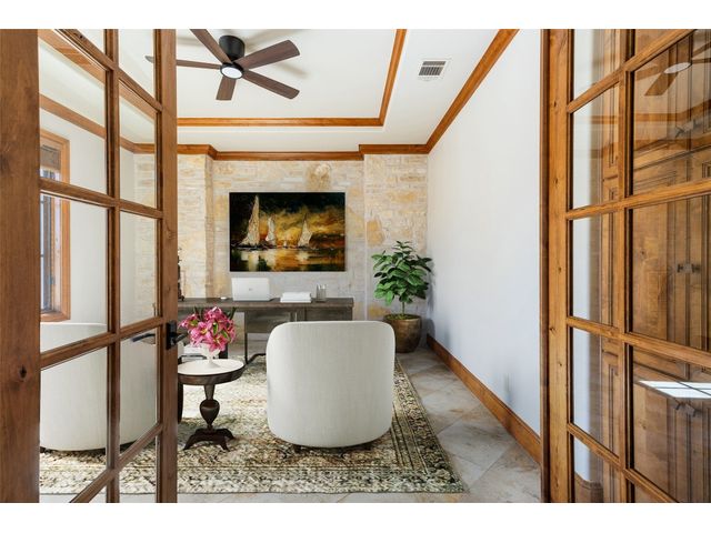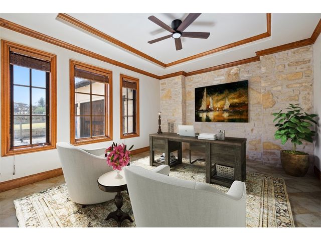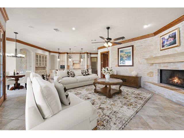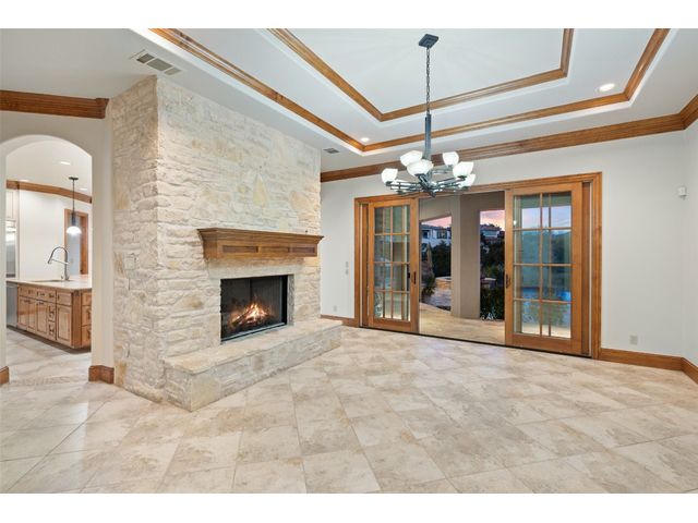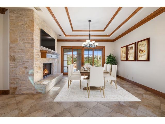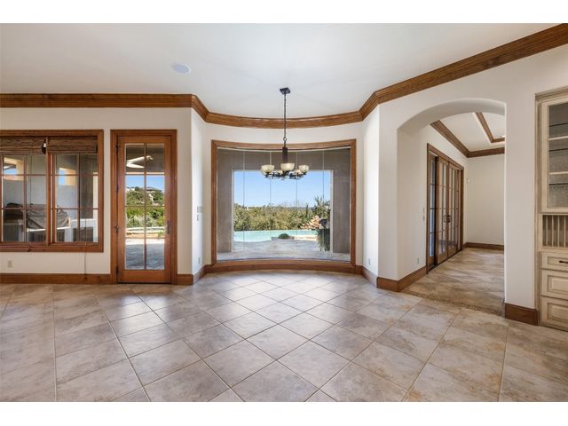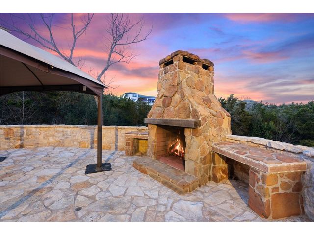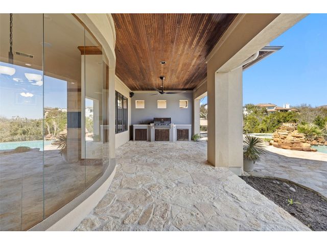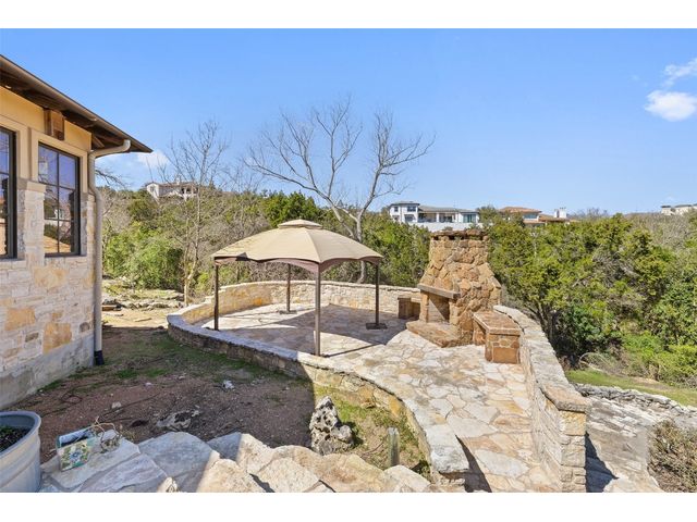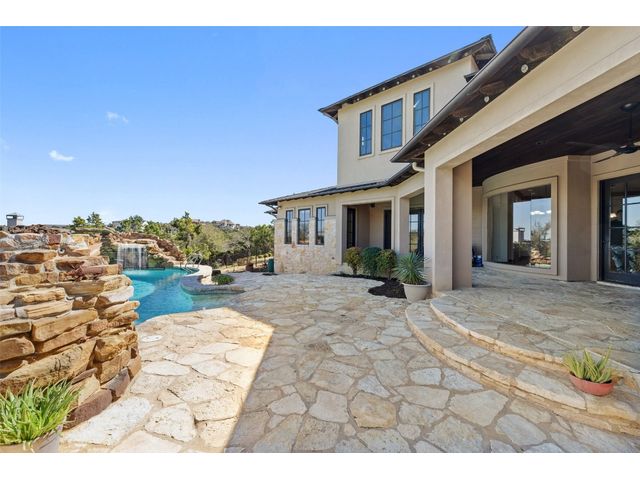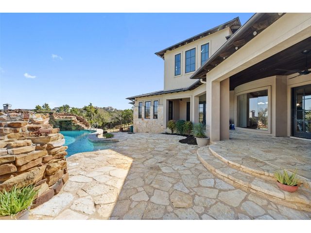 Welcome to 8708 Capehart Cove, a luxurious retreat nestled in the prestigious neighborhood of Seven Oaks - part of Eanes ISD community of Austin, TX. This exquisite 5-bedroom, 5.5-bathroom home boasts an impressive 5394 square feet of living space on a sprawling one-acre home site. Upon entering, you are greeted by a grand 2 story foyer bathed in natural light. The study features French doors and a wall of limestone adding warmth to the room. The formal dining includes a cozy fireplace and makes the perfect stage for entertaining. Both the primary and guest bedroom are conveniently located on the main level. The primary overlooks the relaxing backyard and takes advantage of serene views, it includes a coffee bar, 2 large walk-in closets, primary bath with whirlpool tub, separate shower, and double sinks. Ascend the staircase to discover three additional bedrooms, each with its own ensuite bathroom, large walk-in closets, and a spacious game room. The open concept design seamlessly connects the kitchen, living room, and breakfast area, creating an ideal space for both relaxation and entertaining. The gourmet kitchen is a chef's delight, featuring a sit-up bar, granite counters, steam oven, warming drawer, double ovens, gas cooktop, and an abundance of custom cabinets. Outside, the backyard is a private oasis, complete with a covered verandah, outdoor kitchen, and a stunning negative edge pool with fire features, spa, grotto, and slide. The expansive hardscape provides ample room for gatherings around the outdoor fireplace, while a separate pool house offers potential as an exercise room, additional study, or playhouse. Experience luxury living at its finest in this remarkable Austin residence. Don't miss the opportunity to make this extraordinary property your own.