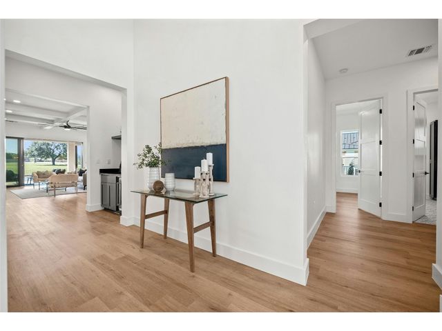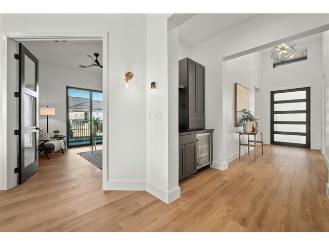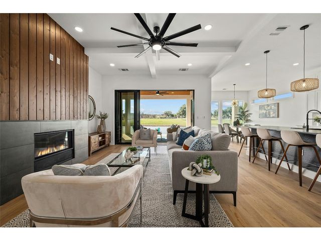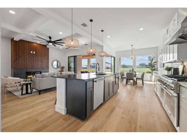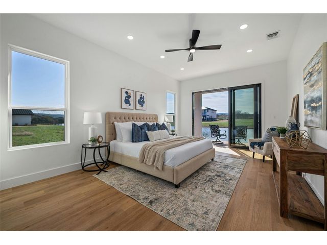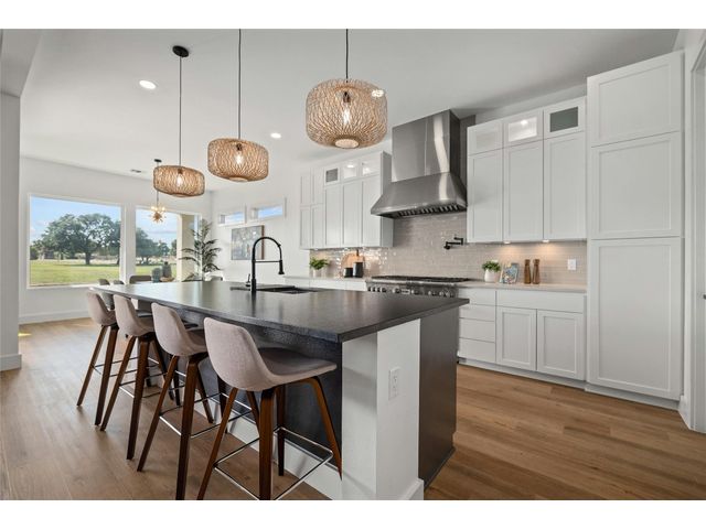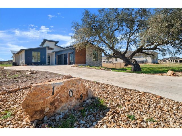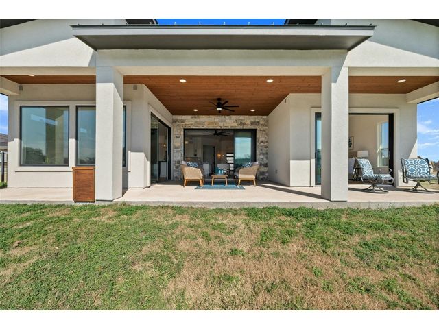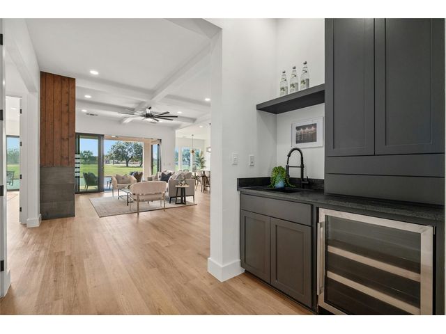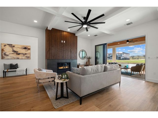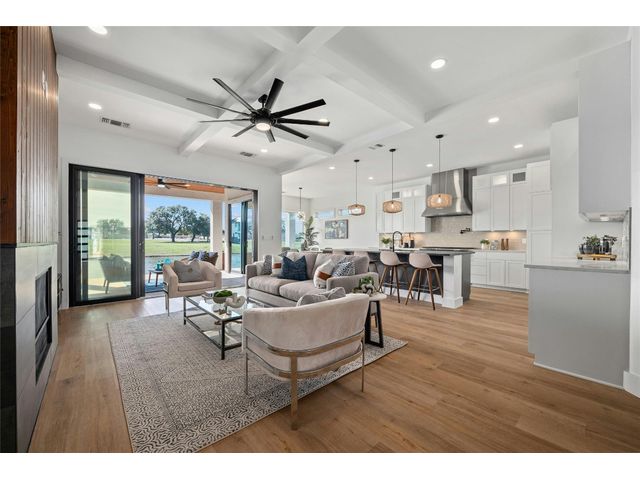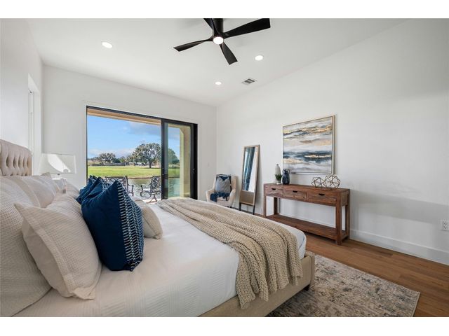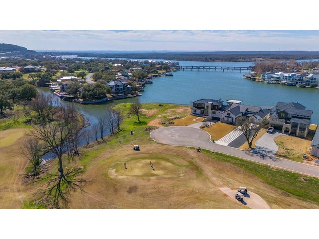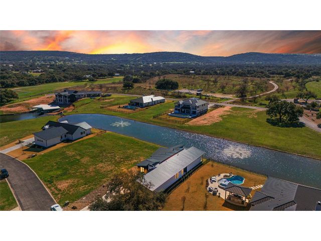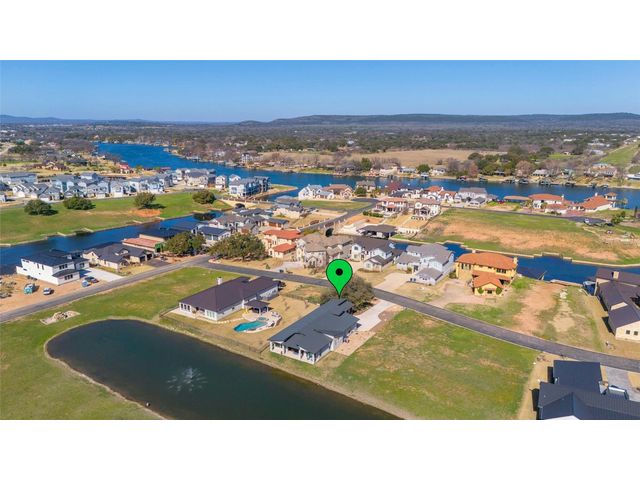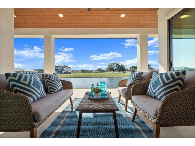Discover the pinnacle of lakeside living in this exquisite, newly constructed single-story residence nestled in the highly sought-after, gated community of Clearwater Landing in Kingsland. This stunning home is a masterpiece of design and craftsmanship, featuring decorative, designer-selected finishes that elevate the living experience. As you step inside, you're greeted by an open and airy floor plan that seamlessly blends living, dining, and entertaining spaces inspired by Chris Craft design. The heart of this home is its gourmet kitchen, boasting a top-of-the-line Thermador gas range and hood, pot filler, leathered granite center island, quartz serving bar designed to inspire culinary creativity. A dedicated wine bar adds a touch of sophistication, perfect for hosting gatherings or enjoying a quiet evening at home and a wine fridge to store wine from the 30 wineries within a 15 miles radius! The home's thoughtful layout includes a dedicated office space, offering the perfect environment for productivity and focus with a private patio. Each bedroom is a tranquil retreat. Secondary bedroom with ensuite bath, private patio access and separate entry door. The primary suite offering serene views, sliding door with patio and a spa-like bathroom with dual vanities, deep free standing soaking tub and large walk-in shower for ultimate relaxation. The home is thoughtfully set against the backdrop of a picturesque pond, this property promises serene views and a connection with nature. Located less than 0.5 miles from the dock of Lake LBJ on the Colorado River wing, outdoor enthusiasts will revel in the convenience of lake access for boating, fishing, and water sports. The community itself boasts a wealth of amenities, including a golf course and exclusive lake access, ensuring a lifestyle filled with leisure and luxury. This home is more than just a residence; it's a gateway to a lifestyle where every day feels like a vacation. BOAT SLIP IS AVAILABLE!