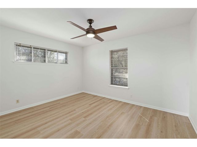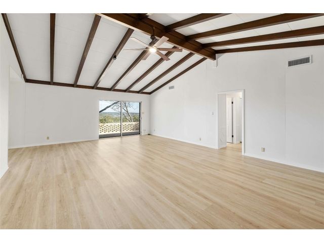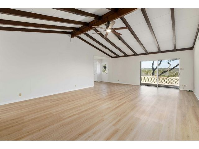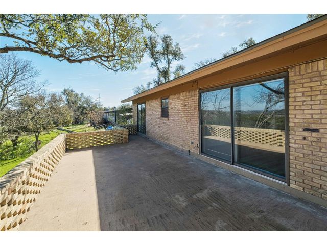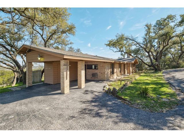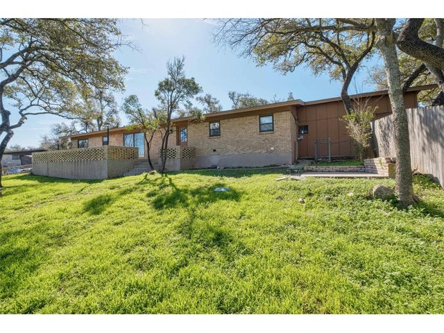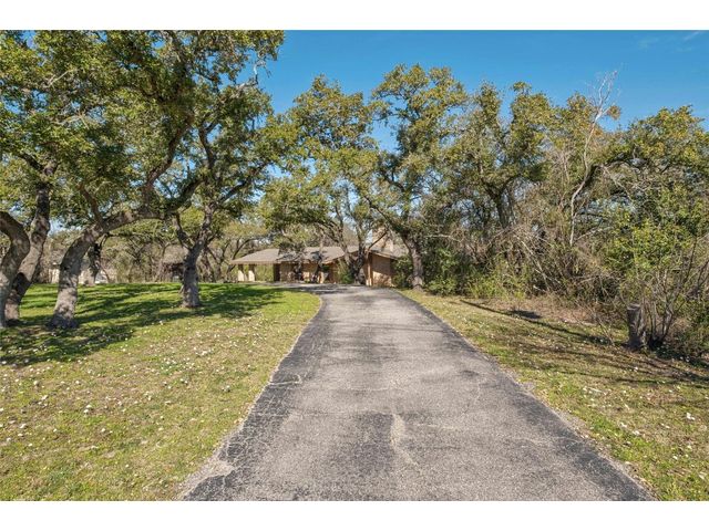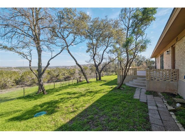 Tucked away on a sprawling 2.6+ acre lot, this charming West Oak Hill home offers tranquility and stunning views. Recent improvements include new roof (9/2023), fully renovated half bathroom, kitchen updates (new quartz countertops, backsplash, sink, disposal, vent hood & microwave), new countertop/sink in hallway bathroom, new flooring, paint, fans, fixtures and more. Spacious front yard with towering oak trees and a huge circular driveway. The backyard features panoramic views, large patio and a fenced in area. Most of the acreage is beyond the back fence and has unlimited potential, plenty of room for pool, sport court, etc. Private setting on a low traffic street. Easy access to 290/71. Large bonus room could be used as 4th bedroom, office, game room or second living room. Unique workshop/storage room of kitchen. Low tax rate. No HOA.