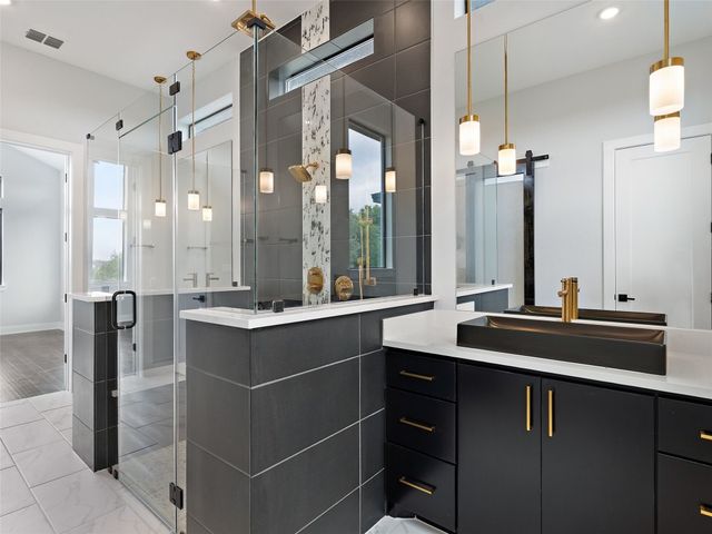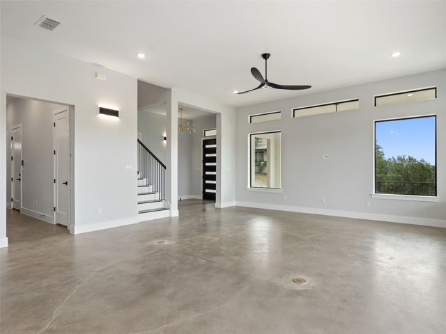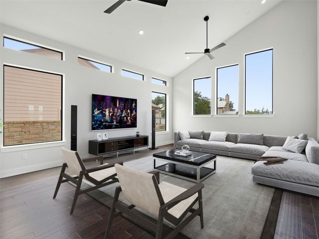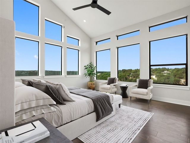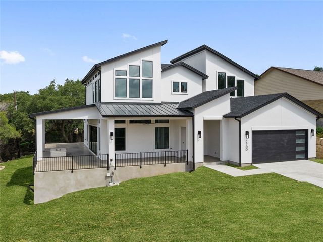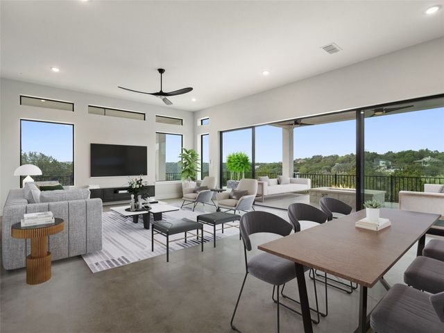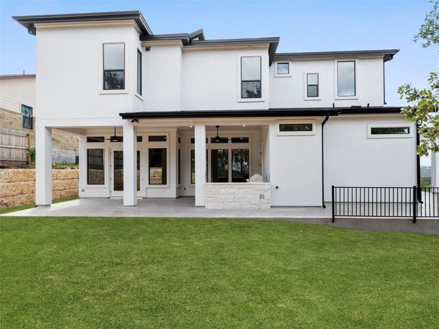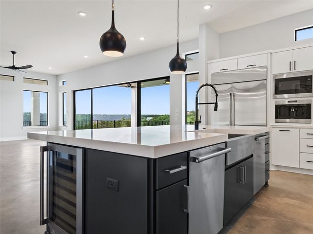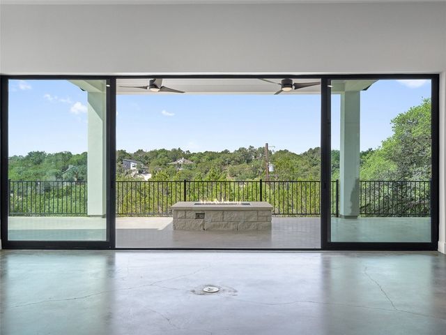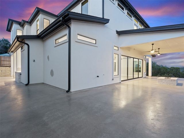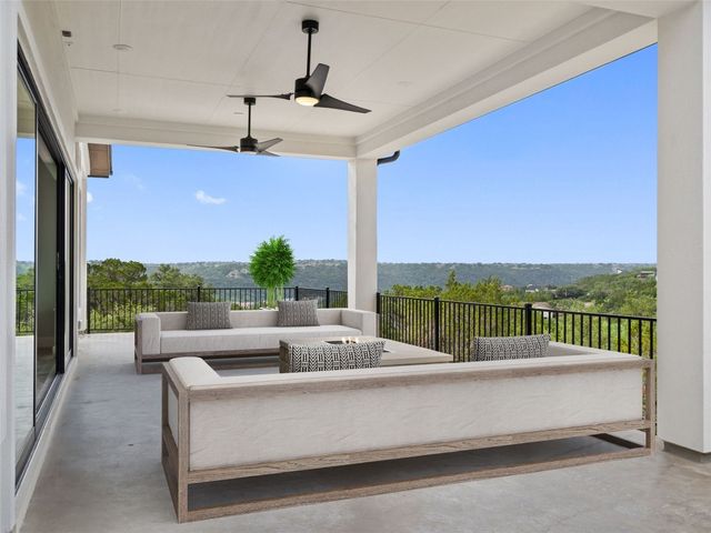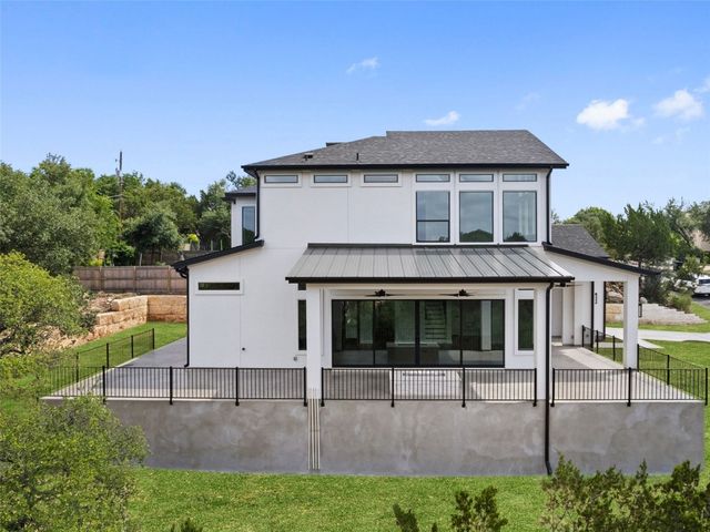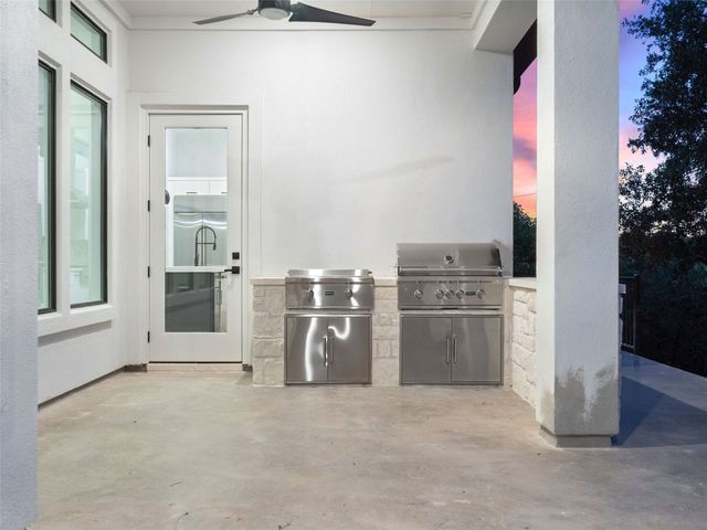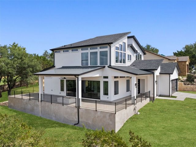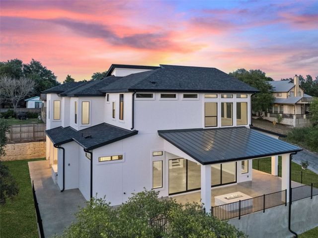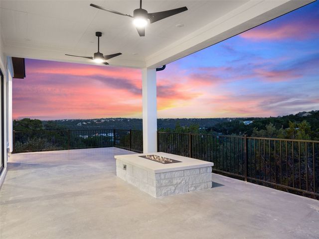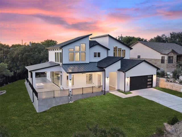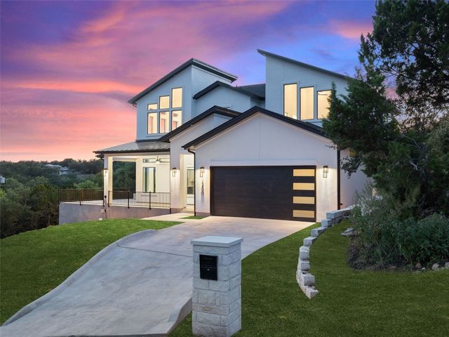 Modern luxury meets effortless living in this stunning contemporary home, perched on a scenic hill with breathtaking greenbelt views. Enjoy year-round indoor-outdoor living with wrap-around decks, a built-in gas firepit, and a fully equipped outdoor kitchen. The open floor plan offers 4 spacious bedrooms, 4 baths, and a private office, with natural light flowing through every space. Located in a private community in the Lake Travis School District, residents enjoy exclusive access to pools, sports courts, trails, and a private lake park. Just 20 minutes from Austin, this home offers easy access to city life, Hill Country wineries, and the best local amenities