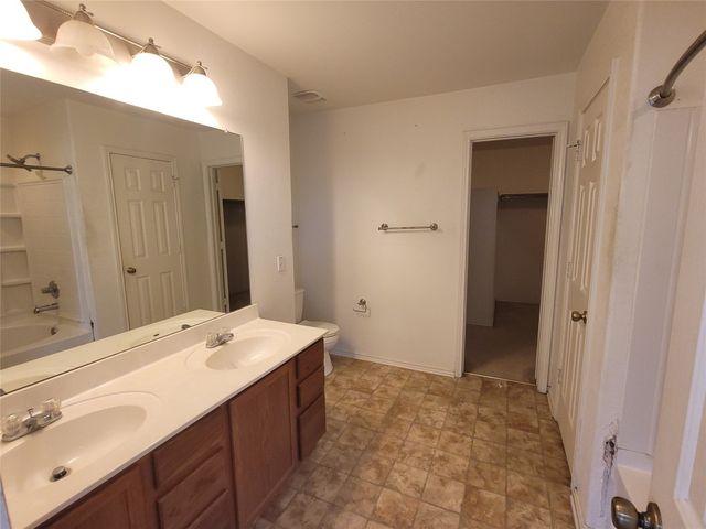 Large 3 bedroom 2.5 bedroom home, with 2 living rooms, separate formal dining room/office. Big backyard on a large culdesac lot!! Open kitchen with lots of cabinet space for storage, with Breakfast bar that is open to family room. All bedrooms upstairs, master bedroom has a full bath with double vanity. Great game room /tv room upstairs. Home is an estate and is being sold as is, no repairs. Price reflects condition, it will need new flooring, fresh paint and other work on the home. No survey, buyers responsibility.