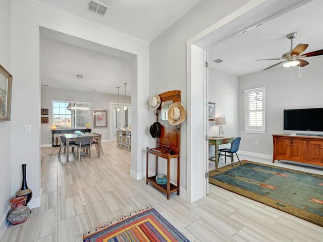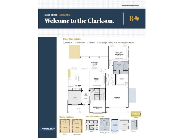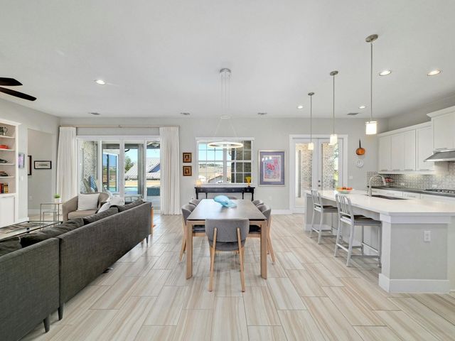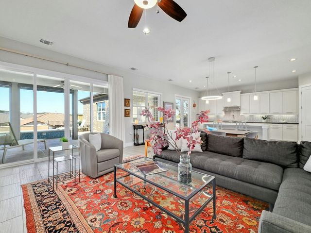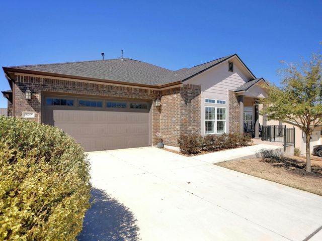 Introducing an exceptional residence within the sought-after Kissing Tree 55+ active community. Step into the backyard oasis, where a refreshing in-ground POOL and spa, heated for year-round enjoyment, beckon for relaxation and leisure. This community boasts an endless supply of amenities and activities including an 18-hole GOLF course, resort-style pool, putting green, restaurant and bar, tennis and pickleball courts, elevating the living experience to unparalleled heights. This Brookfield-built home boasts a bright airy floor plan featuring 2 bedrooms, 2.5 bathrooms, and a dedicated office in the main house. Meanwhile, a charming CASITA with a full bathroom offers versatility for in-laws, a home office, an art studio, or a game room. From the stunning exterior to the meticulously maintained landscaping, this home exudes curb appeal. The inviting front porch leads into a flawless interior adorned with upgraded tile flooring, neutral finishes, and high ceilings that bathe every inch in natural light. The large open-concept living, kitchen, and dining room create a harmonious flow, with sliding glass doors opening to the expansive back patio, forming a seamless connection to the backyard oasis. The heart of the home lies in the dining room, illuminated by a stylish fixture, and a stunning kitchen featuring white cabinetry, tile backsplash, under-cabinet lighting, quartz countertops, and an oversized center island with additional seating. Doors from the kitchen open to a private patio that connects to the casita. The large primary suite is a quiet haven, offering a spa-like bathroom with dual vanity, a large walk-in shower, and an expansive walk-in closet that defies expectations with its ample space for clothing and accessories. The guest bedroom, complete with wood-shuttered windows and an ensuite bath, provides comfort and style. Don't miss the chance to make this special property your own and live the good life in beautiful Central Texas!