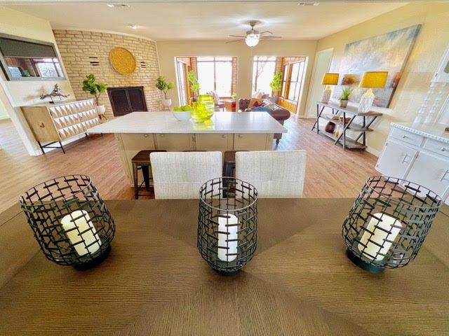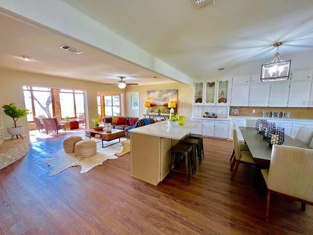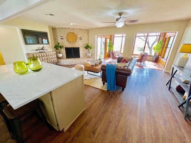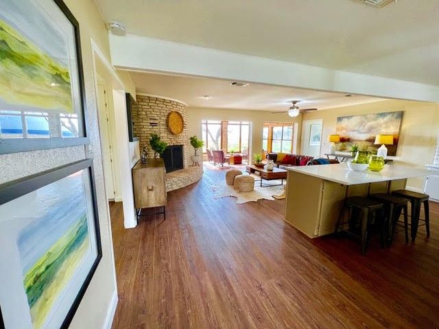 PRICED TO SELL! Breathtaking views complete this updated & remodeled Lake Buchanan home in Cassie! Enter into the open floorplan that supports greatroom style living & the updated kitchen with quartz countertops and tile backsplash, stainless steel appliances, complete with arefrigerator, new vinyl plank flooring and new paint. Dining area seats 6 comfortably with a 6' table PLUS the island will seat even more.An entertainer's dream!! Open living focus is the curved floor to ceiling stone fireplace with wide hearth. Perfect to warm up to on thosecool Winter nights. The sunroom is a dream! Bathed in full sunlight, the large windows afford the greatest water views. Cozy knotty pinewalls, bead board ceiling, stone accents, and saltillo tile flooring help make this room one you will not want to leave! Primary ensuite hasa sitting area with spacious adjoining bathroom boasting dual vanities, large dressing area, walk-in closet, soaking tub, & tons of storage.The handy office is off the back hallway & leads to the utility room/laundry with sink & washer/dryer. The other two bedrooms and 1.5bathrooms are split & on the opposite side of the home for privacy. Detached 3-car garage plus workshop and storage make thisproperty one you will not want to miss! Lake Buchanan is coming back is the best fishing lake around! If you arelooking for a weekend getaway or a full-time residence in the Highland Lakes, be sure & check out 234 S. Chaparral! You will be glad you did!! This is a one-family owner home! NEW Architectural Series ROOF 2023. 2500 gallon water storage tank also conveys with property.