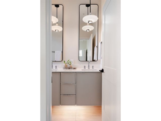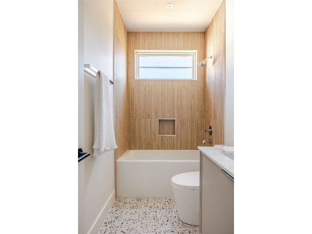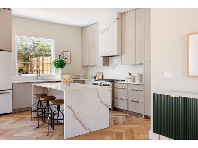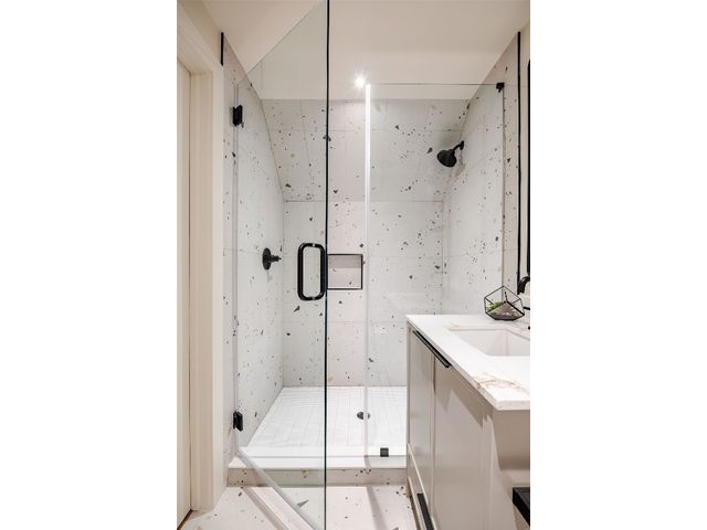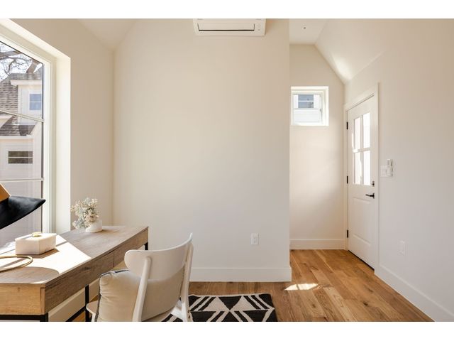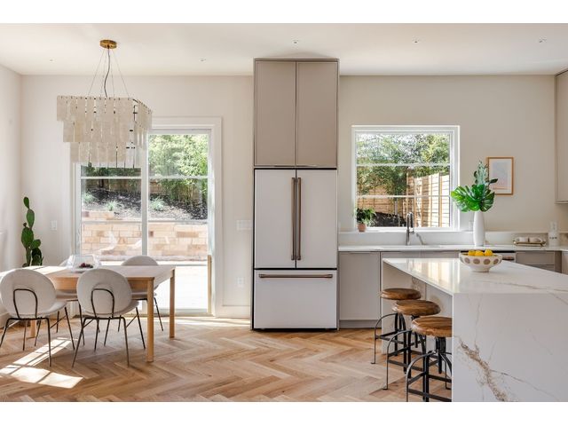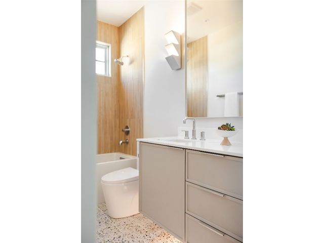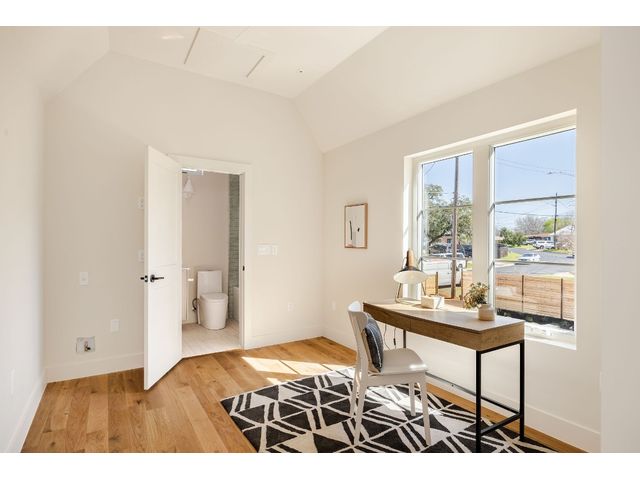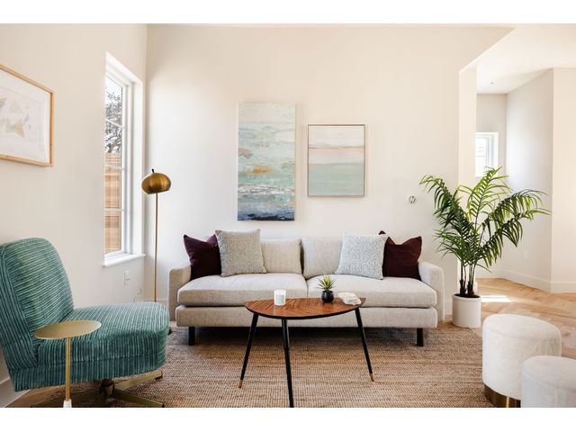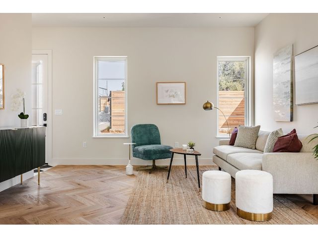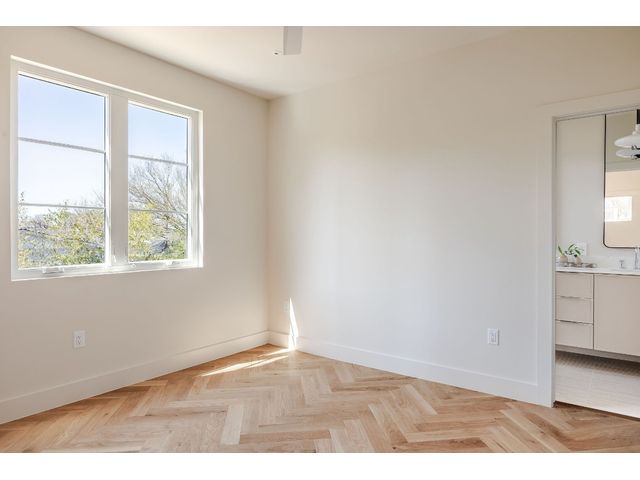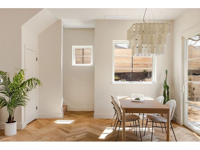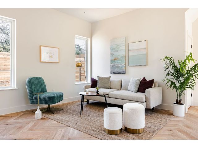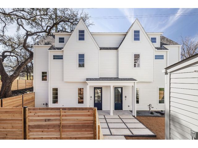 Stunning compound with 4 bedroom spaces and 4.5 total bathrooms with a detached 1bedroom/1bathroom studio with kitchenette perfect for office, guest, home gym, or short-term rental income! Arrive to the home quickly from the airport or downtown and enjoy the heart of East Austin and Mueller within 10 minutes drive! The main house features a magazine-perfect main floor with a soothing creamy taupe color scheme and classically elegant herringbone white oak flooring. The Chef's kitchen has a Cafe appliance package, copious use of beautiful quartz and tons of natural light pouring in through the southwest exposure Andersen windows and lovely 8 foot sliding door. The eat-in kitchen leads directly to a private and lush backyard. On the second floor, find two more bedrooms, one of which with an ensuite bathroom, and a second full bathroom. On the third floor you will find an additional flex space with a full private bathroom. This unit also has a detached one-car garage with a private guest suite/studio/flex space above that has another full bathroom, walk-in closet, and living area with kitchenette. The garages also include hookups for a secondary washer/dryer! The high quality construction of this home is evident throughout! Take note of the spray foam insulation, high quality millwork, Andersen casement-style windows, chic 2" dimmable recessed lighting and designer finishes throughout. Smart home features include already installed Nest doorbell and thermostats.
