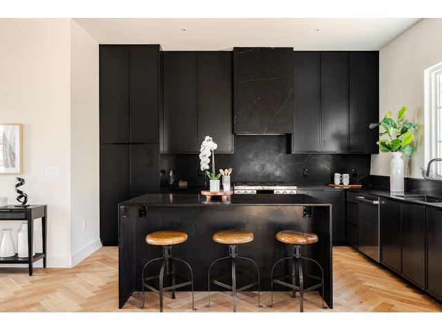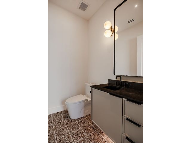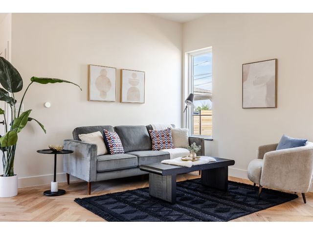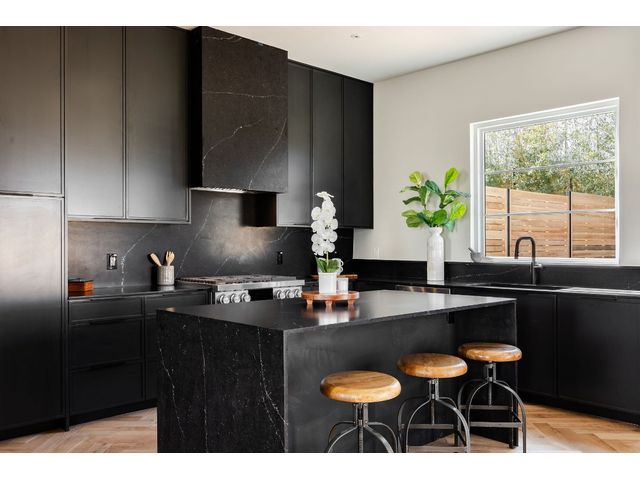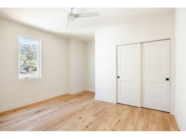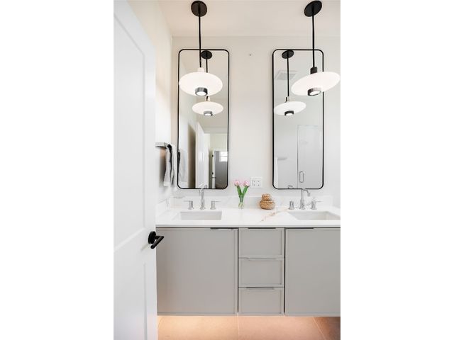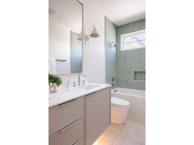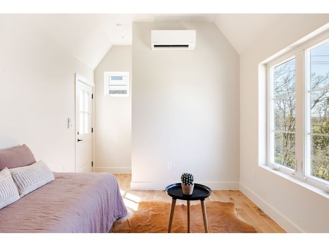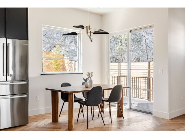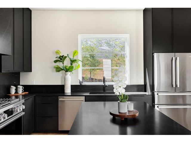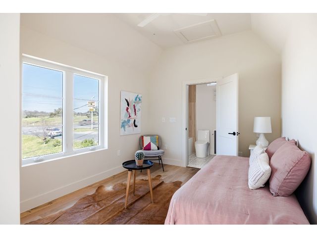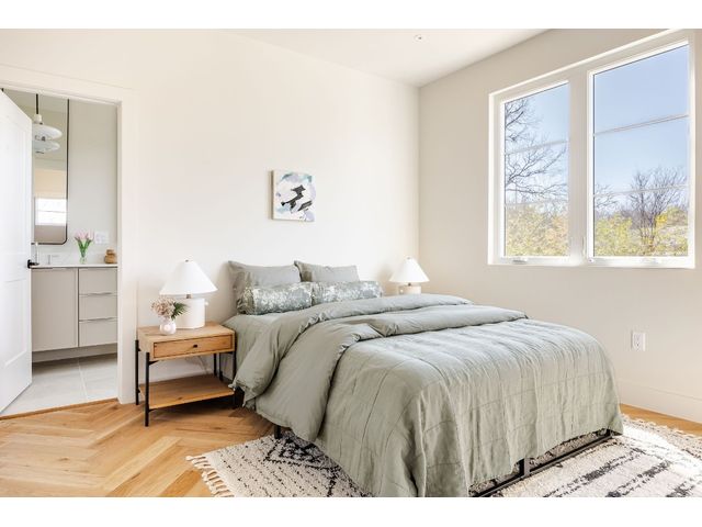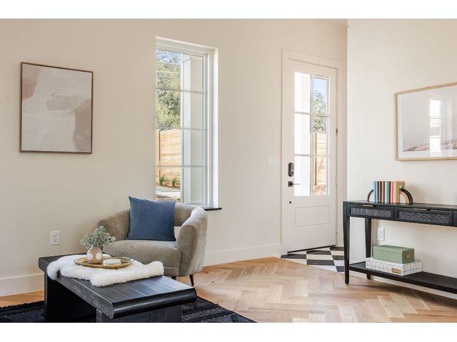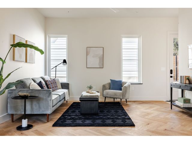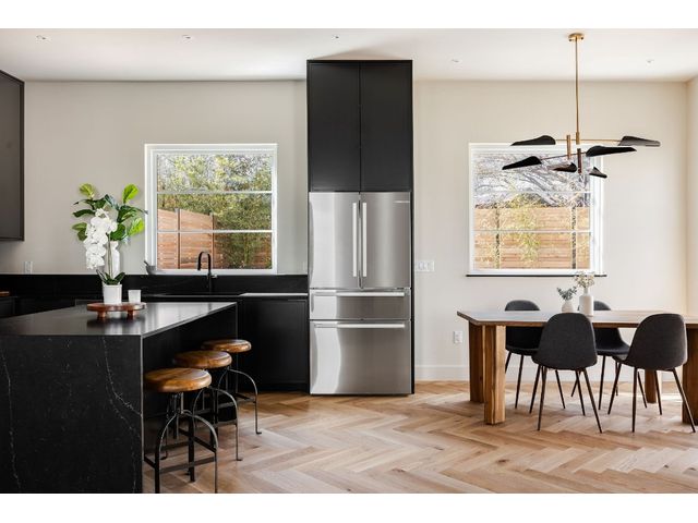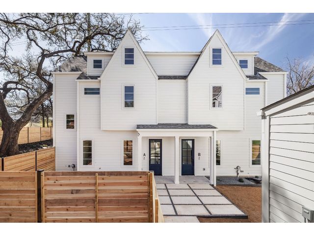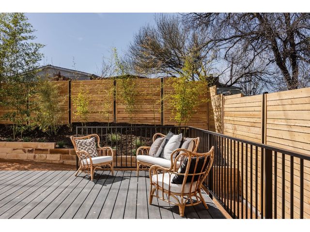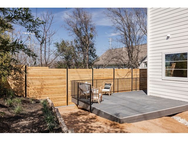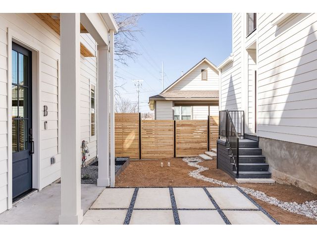 Stunning compound with 4 bedroom spaces and 4.5 total bathrooms with a detached 1bedroom/1bathroom studio with kitchenette perfect for office, guest, home gym, or short-term rental income! Arrive to the home quickly from the airport or downtown and enjoy the heart of East Austin and Mueller within 10 minutes drive! The main house features a magazine-perfect main floor with a soothing creamy taupe color scheme and classically elegant herringbone white oak flooring. The Chef's kitchen has a Dacor 36" gas range, Bosch refrigerator and dishwasher with copious use of beautiful black matte quartz and tons of natural light pouring in through the west exposure Andersen windows and lovely 8 foot sliding door. The eat-in kitchen leads directly to a private and lush backyard. On the second floor, find two more bedrooms, one of which with an ensuite bathroom, and a second full bathroom. On the third floor you will find an additional flex space with a full private bathroom. This unit also has a detached one-car garage with a private guest suite/studio/flex space above that has another full bathroom, walk-in closet, and living area with kitchenette. The garages also include hookups for a secondary washer/dryer! The high quality construction of this home is evident throughout! Take note of the spray foam insulation, high quality millwork, Andersen casement-style windows, chic 2" dimmable recessed lighting and designer finishes throughout. Smart home features include already installed Nest doorbell and thermostats.
