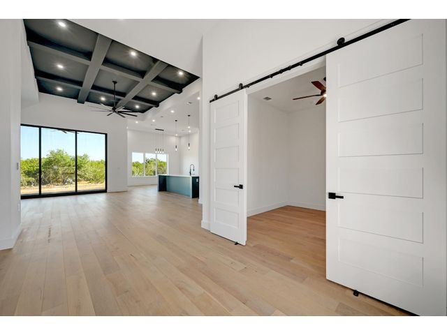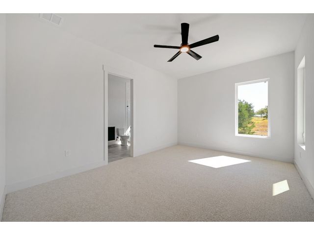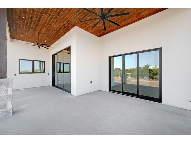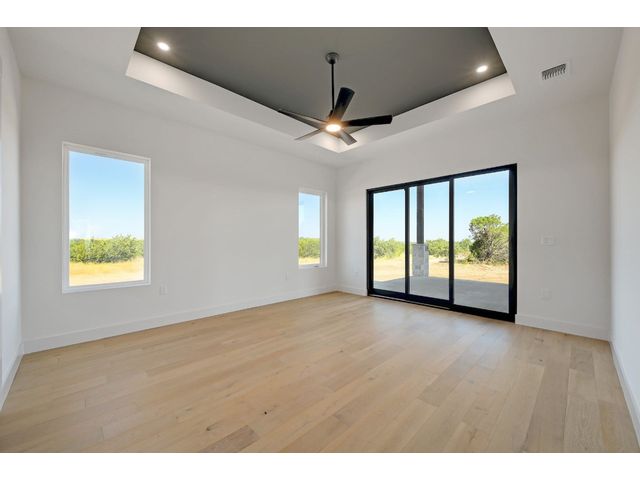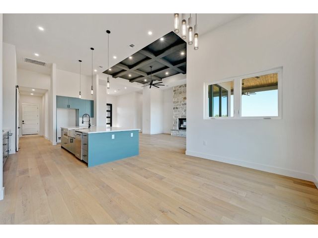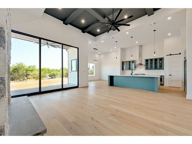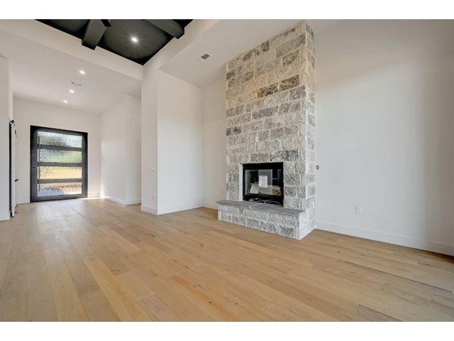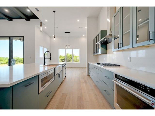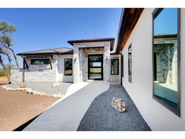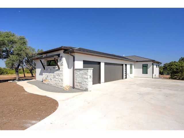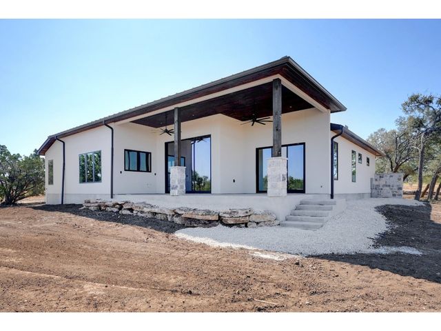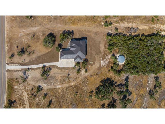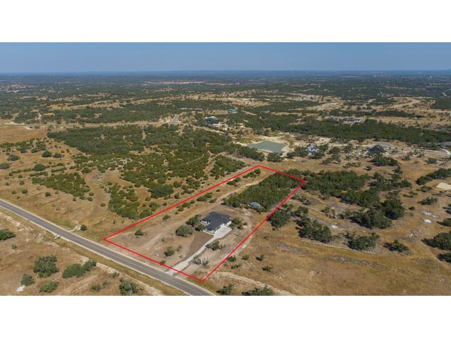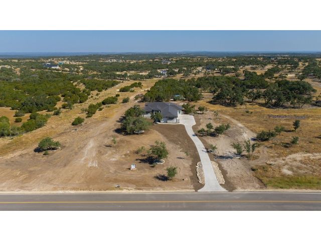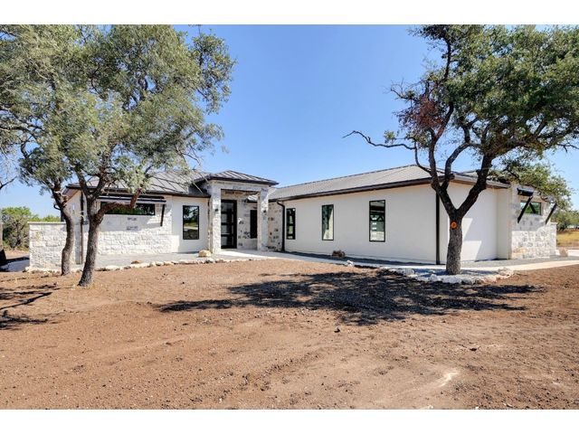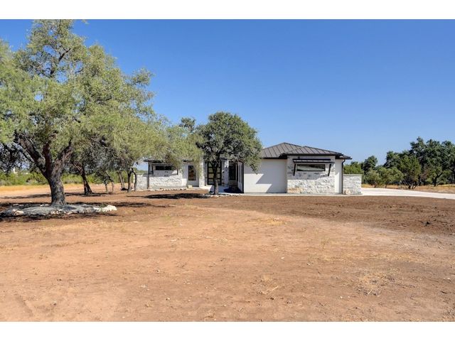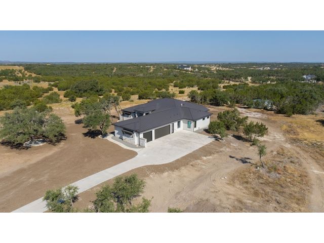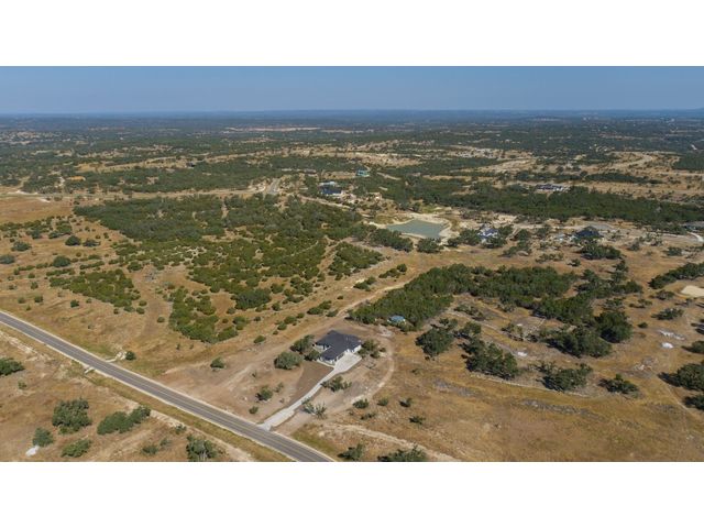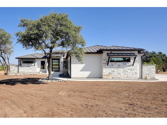New construction completed, time to sell! Beautiful and serene 5.5 acre lot with mature oak trees, views, in newly developed Legacy Hills. This stunning modern plan features 3 bedrooms, 3.5 bathrooms with an office that can be a 4th bedroom, and open living space ideal for entertainment, as well as outdoor entertaining space under the covered back patio. The home finishes feature hardwood floors throughout the main living areas, tile in the bathrooms and carpet in the secondary bedrooms. There are tray ceilings throughout with exposed beams, an oversized front door to greet you, and extensive cabinetry in the kitchen with granite counters, stainless steel appliances and an oversized center island. A 30,000 gallon rain water tank provides water to the home. Plenty of land to build additional guest quarters, pool with outdoor entertainment area and more. This gated community features paved roads, underground utilities, large acreage lots with mature oaks, and low taxes due to AG exemption. The community is only a short 10 minute drive west of Dripping Springs and easy access to Austin.