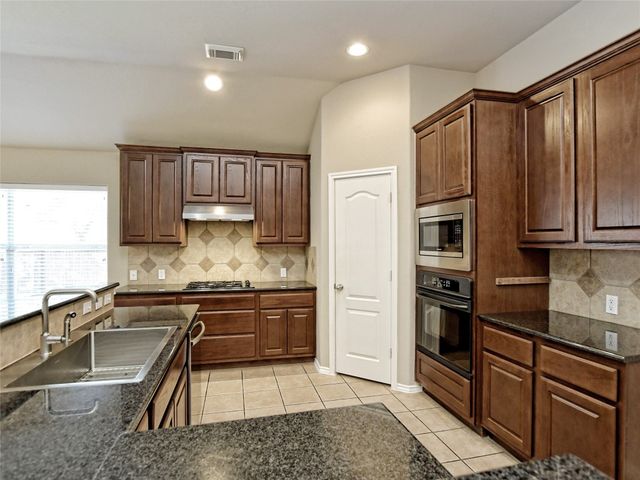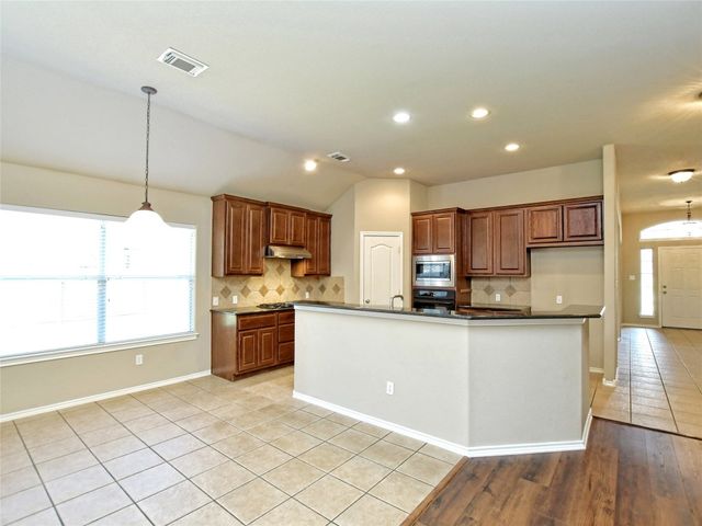 Lovingly cared for popular Mayfield Ranch floorplan w/3 bdrms, 2.5 baths with bonus room/playroom/quiet retreat area situated between the 2 secondary bedrooms. Separate office with French doors. Formal dining room as well as a breakfast area.Covered back patio. Automatic 9 zone inground sprinkler. High-quality, easy care luxury vinyl planks in living room. Hard tile in wet areas. Master bath has oversized garden tub, frameless shower, dual vanities and walk in closet. Roof replaced just 3 years ago. Spacious kitchen with lots of cabinets, huge pantry, built in oven and gas cooktop. Corner lot provides extra privacy and you're just quick two minute walk to Mayfield Ranch's neighborhood pool and playground. Top rated Round Rock Schools including Chandler Oaks Elem and Walsh Middle School. Among the lowest tax rate in the area!