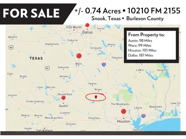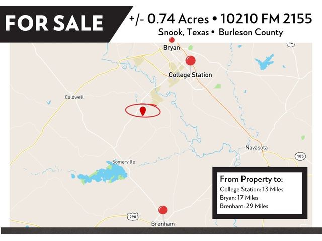 Commercial opportunity in Snook, TX - just 13 miles from College Station & Texas A&M. Approx. 1,680 SF of updated office space (see attached floor plan) with multiple offices, 2 restrooms, and break room/kitchen area. Approx. 2,400 SF of shop space (40' X 60', 16' eave, 2 - 12' X 14' rollup OH doors). +/- 0.74 acre lot that is perimeter fenced with security fencing, 4 gated entrances to FM 2155/FM 2155 Loop, and concrete parking with gravel yard area. 3-phase, 400 amp underground electric service. Easy access to FM 60 that has recently been widened for increased traffic flow.