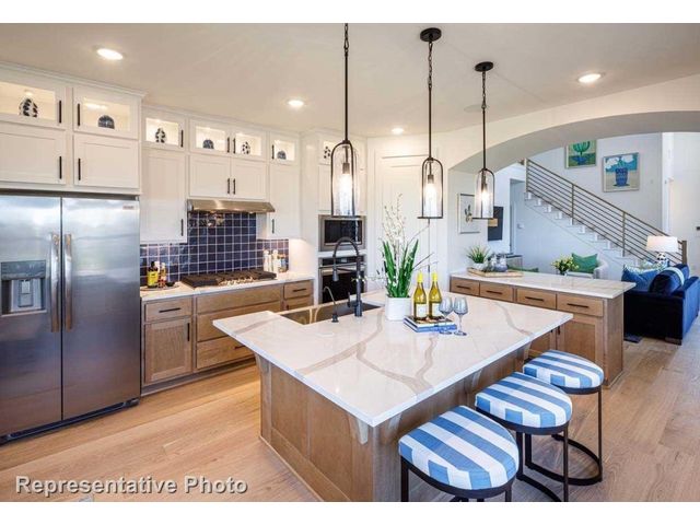 MLS# 4528683 - Built by Highland Homes - Ready Now! ~ Stunning floor plan with vaulted ceilings! Two islands and tons of cabinetry in kitchen with built in appliance package! Wood flooring, designer touches throughout. Smart home features, tankless water heater. Full sod and sprinkler system!