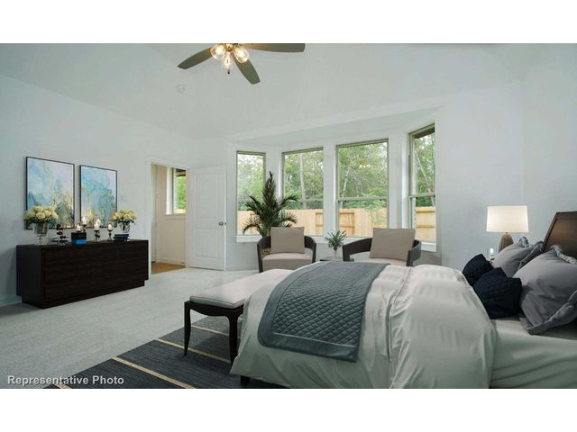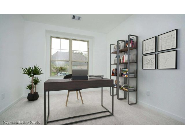MLS# 4684381 - Built by Highland Homes - Ready Now! ~Two Primary Suites! Large study plus flex room. Open concept floor plan with gourmet kitchen overlooking family and dining spaces. Upgraded cabinetry and quartz countertops throughout the home. Extensive use of wood and tile flooring no carpet! Smart home features, tankless water heater, full sod and sprinkler system!