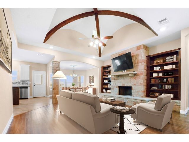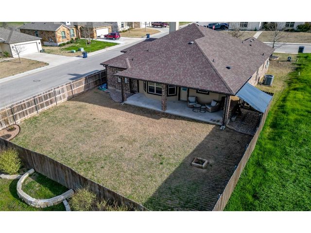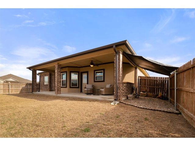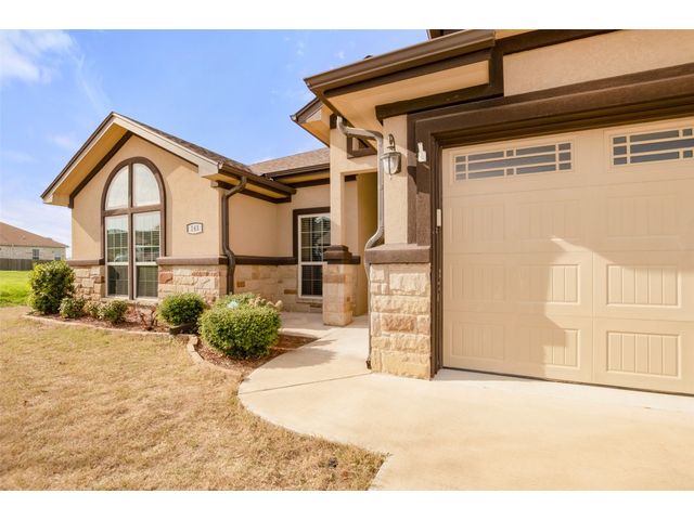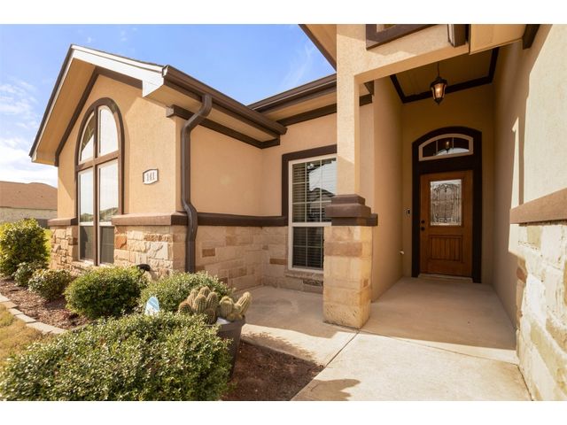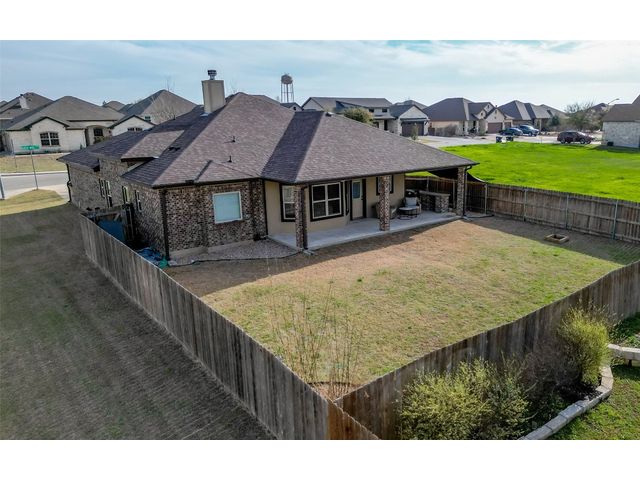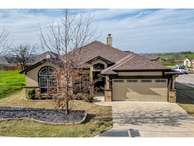 Welcome to your dream home on a CORNER lot! This stunning one-story residence exudes elegance and sophistication. Nestled on a spacious corner lot this 4 bed/2.5 bath home offers the perfect blend of luxury and functionality. The centerpiece of the living area is a striking ceiling and a floor-to-ceiling stone fireplace, creating a cozy ambiance for relaxing evenings with loved ones. Arches gracefully accentuate the space, leading you seamlessly from room to room. Prepare to be wowed by the gourmet kitchen which features granite countertops, built-in stainless steel appliances, an island with seating, and a convenient pantry, this kitchen is as beautiful as it is functional. The adjacent dining room boasts a charming bay window, perfect for enjoying meals with a view. The owner's suite, adorned with custom ceiling treatment, this spacious retreat offers a must-see ensuite bath complete with his-and-hers closets, separate vanities, a luxurious garden tub, and a pass-through shower. The home further impresses with three additional well-appointed bedrooms serviced by a hall bath featuring dual vanities, ensuring comfort and convenience for family and guests alike. Step outside to discover your own private oasis! The expansive yard offers ample space for outdoor activities and entertaining, while a covered patio provides the ideal spot for al fresco dining year-round. This home offers an easy commute to Fort Hood, Temple, Georgetown, and Austin, making it a perfect choice for those seeking both tranquility and accessibility. Don't miss your chance to experience the epitome of luxurious living in this meticulously crafted masterpiece. Schedule your showing today and make this exquisite home yours!