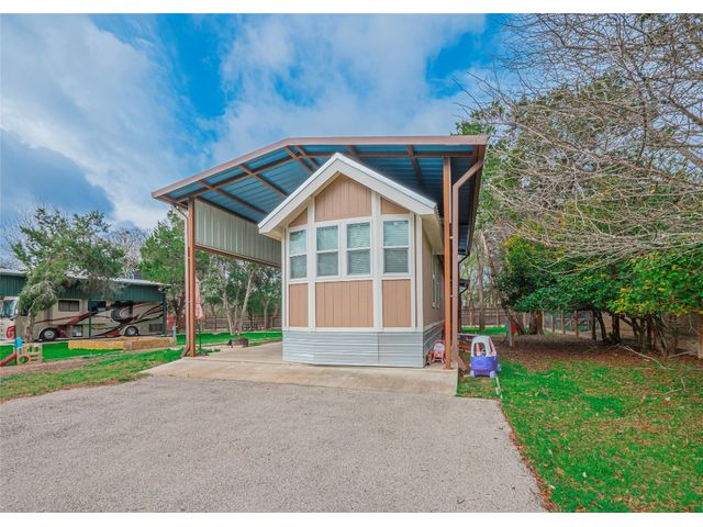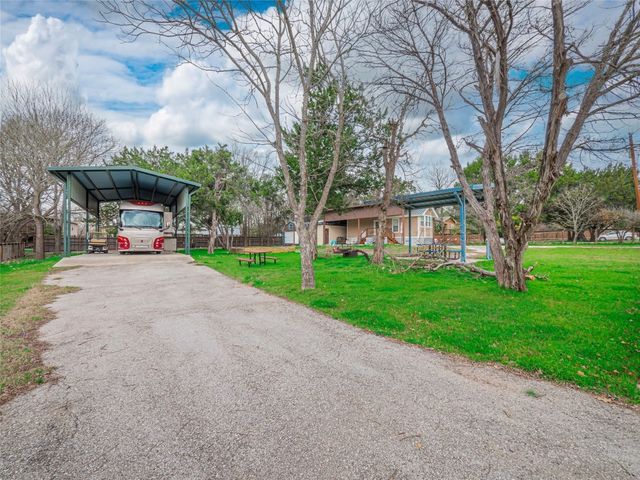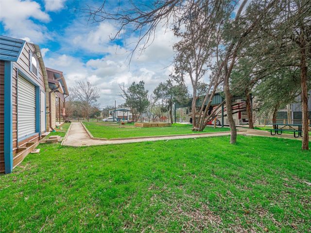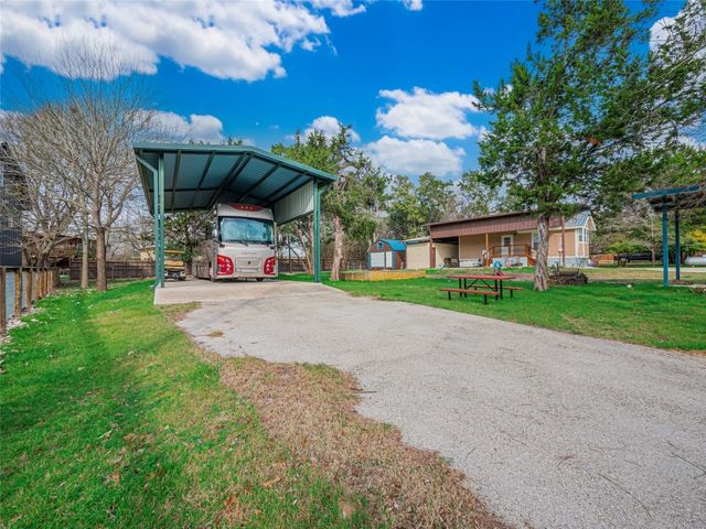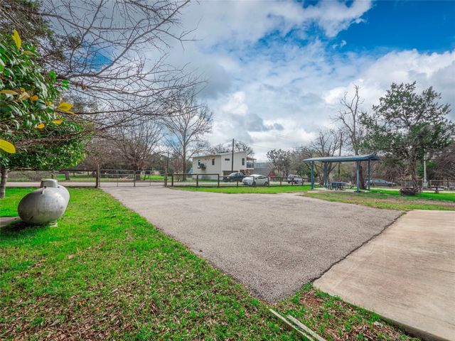 Recent new construction and located in a private, Blanco riverfront subdivision, 3.6 miles West of The Village of Wimberley, Texas. This property is fully fenced, enclosed by a 4' tall wood rail and HD galvanized wire mesh fence, designed to keep in pets. Double 8 gates at two separate entrances provide access via four-digit, combination padlocks. The same fence wire mesh covers the gates to secure guest, children, and pets. Time Warner / Spectrum cable TV and High-Speed DSL internet are available on site, individual subscriber contracts are required for activation. WIFI is also available under the same terms. The site location has a strong and stable cellular signal available to most subscribers. There is also an 10 x 24 ADA bath house complete with separate stalls, (2) vanities, large dual headed shower stall, dressing area and stackable washer/dryer. Each site also has a large, covered, ADA compliant picnic table. There are two private river parks, both are in easy walking distance and a swimming pool. A property owner key is required to gain entrance to both.