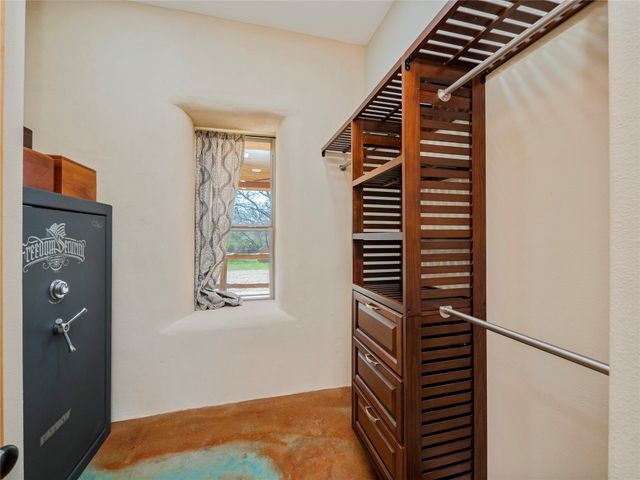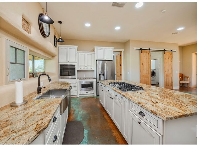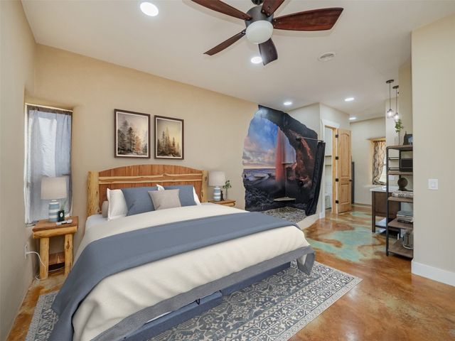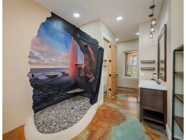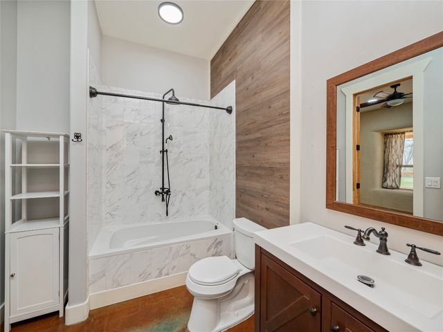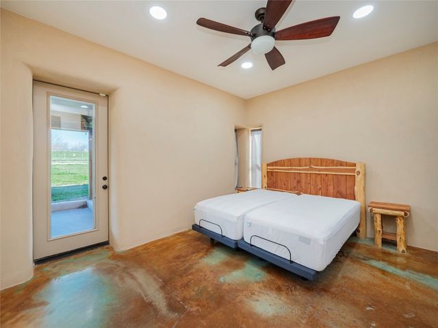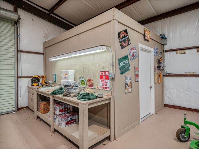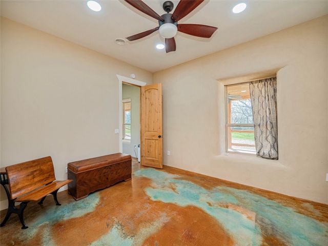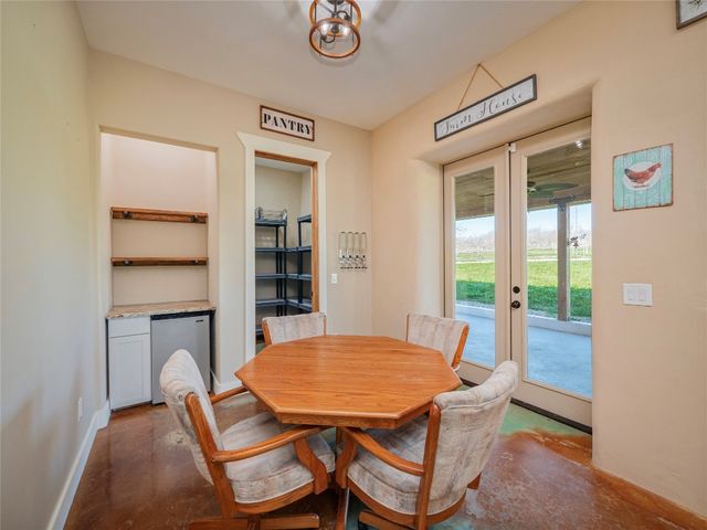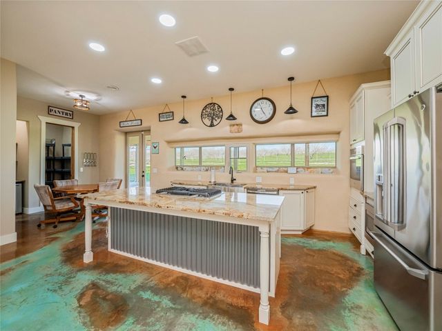 This rural home is perfect for those looking for a peaceful retreat away from the hustle and bustle of city life. Located on 10.29 acres, this spacious home features an open floor plan with stained concrete flooring throughout. The large living area is perfect for entertaining or relaxing with family and friends. The split bedroom floor plan offers privacy, with the primary bedroom featuring a walk-in shower, single vanity, and a nice size closet. The kitchen boasts an extended island with granite counters, gas cooktop, built-in oven, wet bar with wine cooler. One of the highlights of this property is the huge back porch facing the San Gabriel river. This year-round live-water feature provides opportunities for fishing, kayaking, swimming and relaxing under giant century-old pecan trees. If you enjoy working on projects or have hobbies that require extra space, there is a large 40x60 metal shop with concrete floors and dual roll-up doors. There are also four storage tanks to catch rainwater runoff. There is also a livestock barn as well as an enclosed poultry coop. The north area where the barn sits is cross fenced and ready for cattle or horses. An ag exemption is already in place to help keep taxes low on this beautiful piece of land. An automatic gate along the private road maintains privacy while providing easy access to Rockdale (10 minutes), Taylor (30 minutes), and even Austin (less than an hour). If you're looking for country living at its finest with modern amenities close by, then look no further than this stunning rural home.