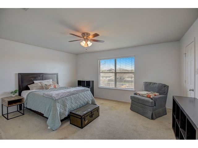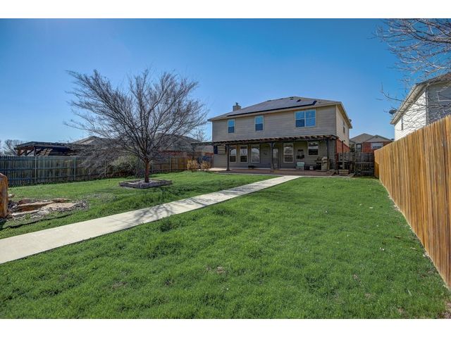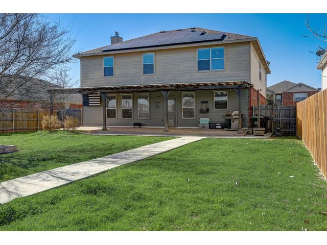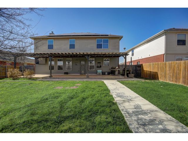 Introducing an exceptional opportunity to own a freshly painted interior 4-bedroom home, situated on an oversized lot within walking distance to the community park, offering a playground, sports court, and pool. This modern oasis is equipped with a leased solar power system, designed to significantly reduce the electricity costs of a home of this size. The existing leased solar panel loan is to be assumed by buyer. The first story features an office/flex space and an elegant formal dining area with an abundance of natural light, all centered around the gourmet kitchen with an oversized Corian island flowing into the dining and living room with a modern fireplace. Upstairs, a large game room/second living area awaits, along with a spacious primary suite boasting two large walk-in closets and a grand bathroom featuring dual vanities, a large soaking tub, and a separate shower. The three secondary bedrooms are generously sized and include large walk-in closets for plenty of storage. Outside, the backyard is an oversized oasis with a covered porch and a convenient dog run. Don't miss out on this incredible opportunity to own a spacious, modern home with the added benefit of solar energy!