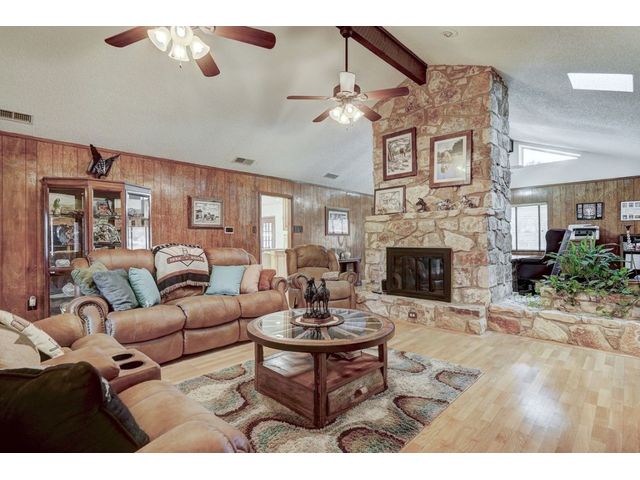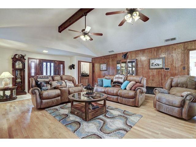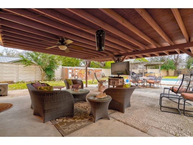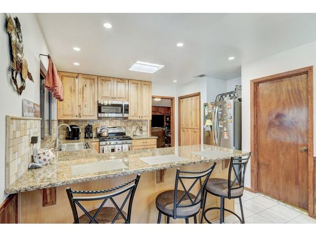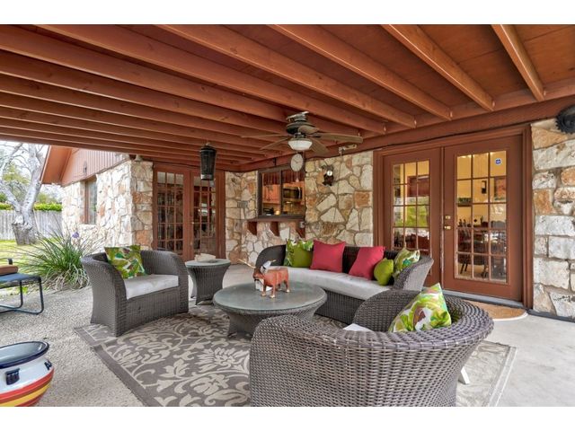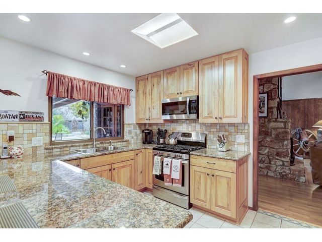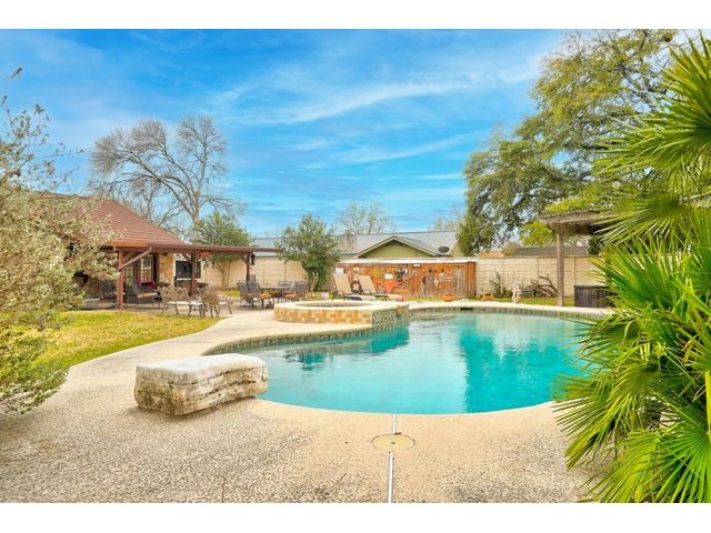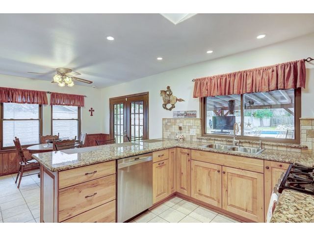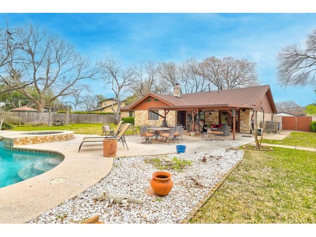 Welcome to Onion Creek Community! This property, is on .39 acres with large, private backyard, Tall trees front & back, nice lawn, beautiful inground pool/hot tub combo. Backyard is a private oasis year round & great for entertaining. In 2017 owner completed updates in Kitchen, granite countertops, Larger cabinets, newer appliances, added French Door opening to backyard. Kitchen has breakfast bar & dining area. Laundry room/pantry combo, & door to oversized 2 car garage. Large combo Living room & Den/office space, divided by a stone gas/wood burning Fireplace. A wet bar w/sink by front entry. Primary & secondary bedrooms are to right of front entry, all bedrooms have carpet & can accommodate a King Bed & great walk-in closets. Primary bath has recessed LED lights & walk-in shower, 2 vanities, 2 primary walk-in closets. The second bathroom with Tub/shower is by the other bedrooms near front entry. The driveway & garage are front facing. In 2022 owner replaced roof with Metal shank shingles with a 50 year lifespan; Dec 2023-new HVAC, 2017 owner replaced Water Heater & had Microwave vented to outside. This 1976 custom built ranch style house, is one the owner has maintained the style & look of the spirit of the west. Owner is ready to move & gladly accepts Written offers for review. Bring your Buyers-come & see-write an offer!