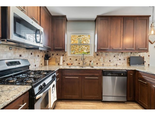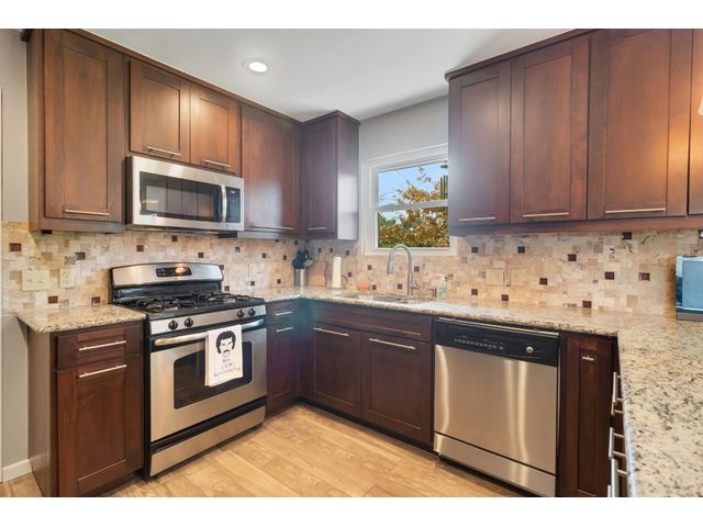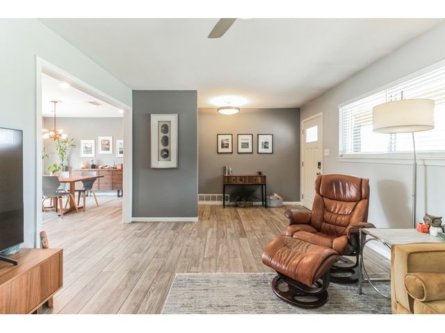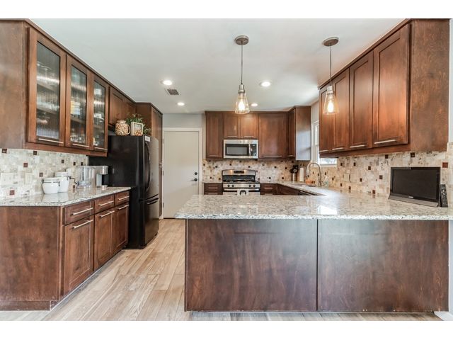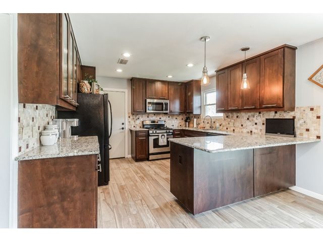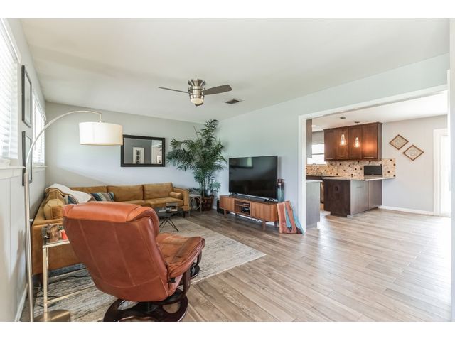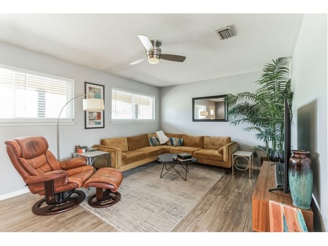 This charming one-story home, situated on a corner lot, offers a delightful living experience. The absence of front neighbors allows for an unobstructed view of the park, providing a serene and picturesque setting. Step inside to discover a beautifully remodeled interior adorned with Tile (2021) flooring throughout, creating a cohesive and stylish look. The kitchen is a highlight, featuring granite countertops, upgraded cabinets with hardware, stainless steel appliances, a gas cooktop, and an elegant tile backsplash. The abundance of windows (replaced 2021) ensures that natural light floods the space, contributing to the open and bright ambiance. Designer-painted walls add a touch of sophistication to every room, enhancing the overall aesthetic. The guest bathroom is thoughtfully upgraded (2023), showcasing a stylish sink, tile backsplash, and an upgraded toilet. The owner's suite bathroom is a retreat with its modern updates, boasting two sinks and a stand-up shower. Outside, the welcoming backyard beckons with a patio that's perfect for entertaining or simply enjoying the outdoors also has an irrigation system that was added in 2015. The garage offers convenience with drive-through access and two doors. Additionally, the metal roof (2015) adds durability and a touch of contemporary flair to the property. This remodeled one-story home combines modern amenities with a thoughtful design, creating a comfortable and stylish living space for its fortunate occupants.