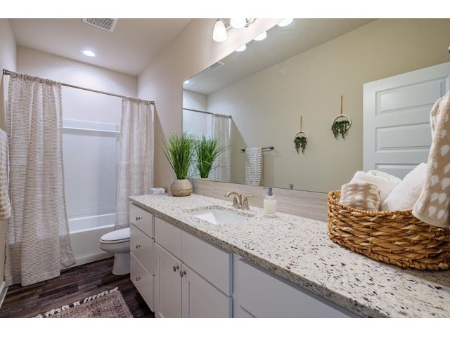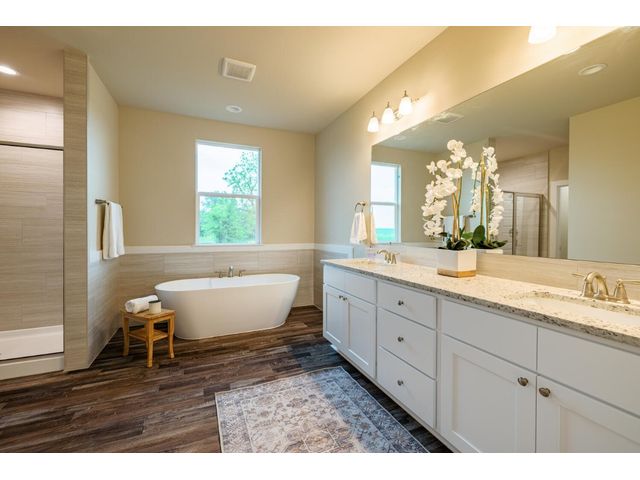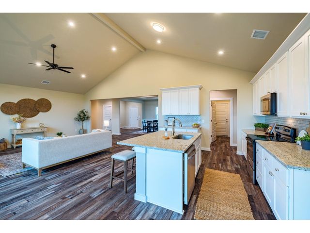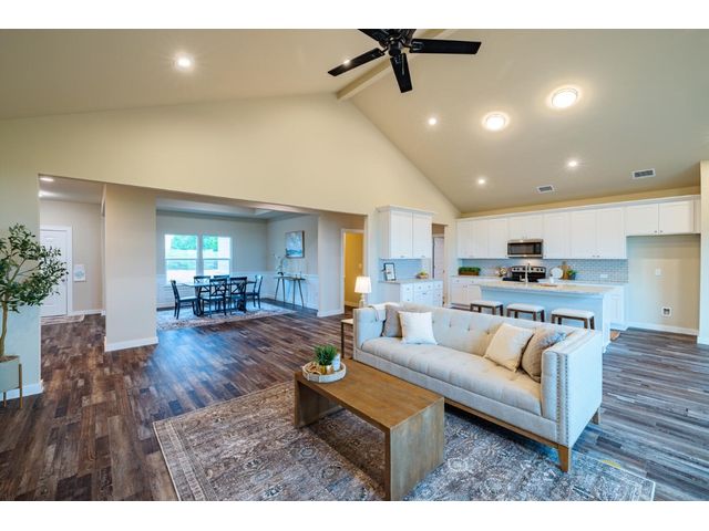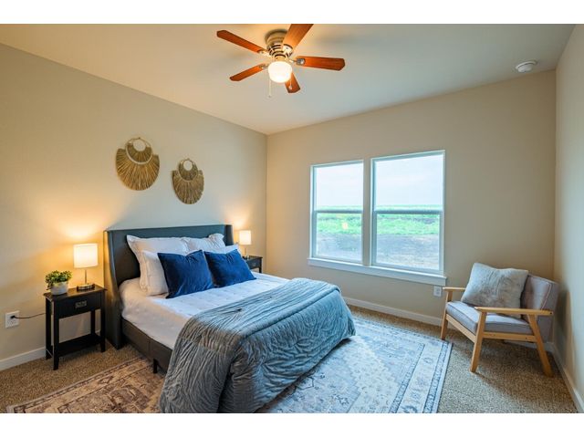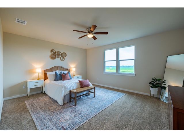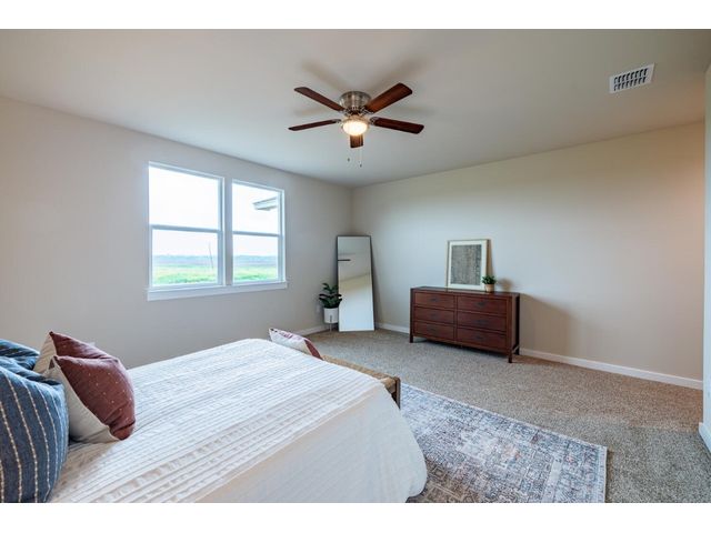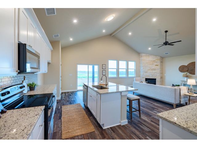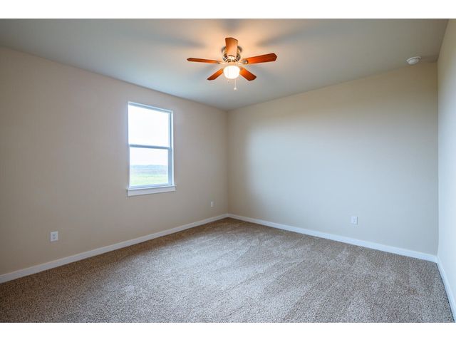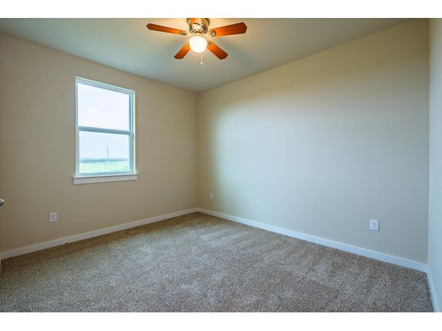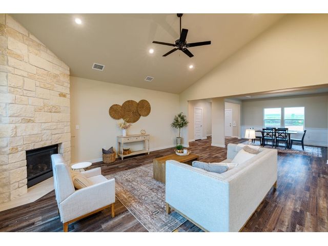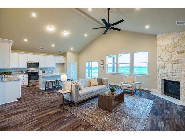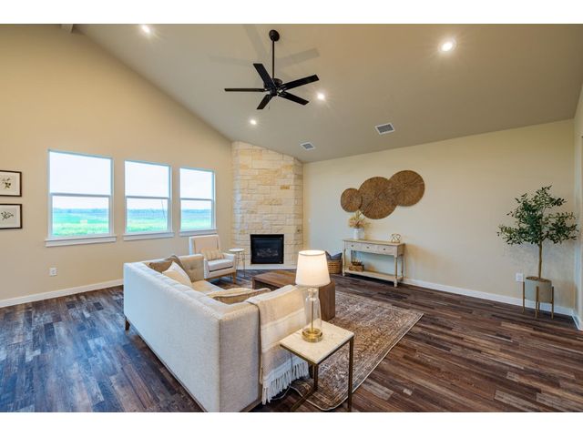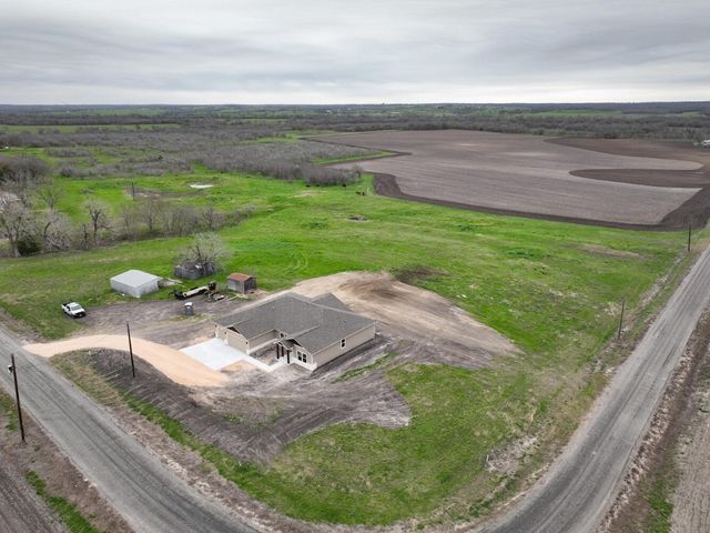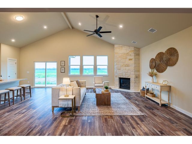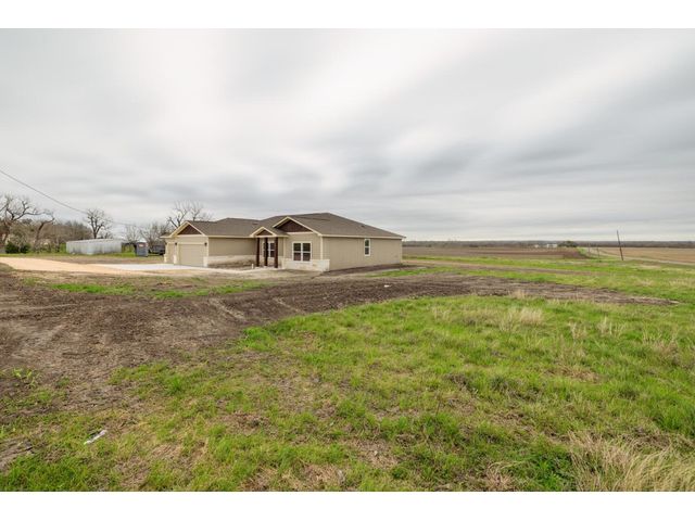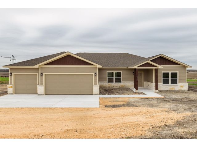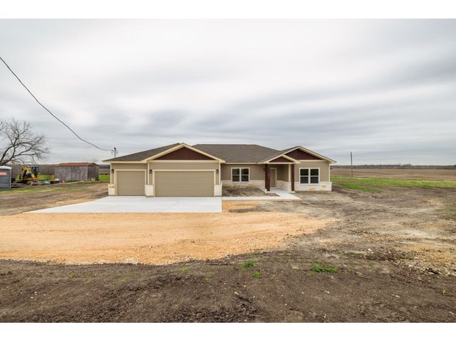 Creativity and comfort merge into this popular floor plan. This gorgeous new construction home is situated on 1.67 acres of sprawling countryside with no restrictions. The Castleton is a styled home with a spacious 2497 square feet of living space. The Castleton has 4 oversized bedrooms with 2.5 bathrooms to complement its design. This home features large primary bedroom and bathroom suite, expansive primary walk in closet, dual vanity, large walk in shower, elegant soaking tub, guest full bathroom with adjoining guest bedroom for more privacy, abundance of large windows for a plethora of natural lighting, attractive stone faced fireplace, a chef inspired kitchen design provides for an area to gather and dine with friends, granite counters throughout, large kitchen island with breakfast area, stylish custom backsplash in kitchen and bathrooms, recessed lighting, 42-inch cabinets, stainless steel appliances and tons of storage space, luxury vinyl flooring in main areas, a vaulted ceiling in main areas and 9 ft ceilings throughout the rest of the home. The 3-car garage provides 670 square feet with plenty of driveway parking as well. Other features and amenities are the vast covered backyard patio and a barbecue area with a propane stub out. Easy commute to downtown Thrall & Taylor, HWY 79 and San Gabriel River. Approximately 15 minutes to Samsung Semiconductor plant.