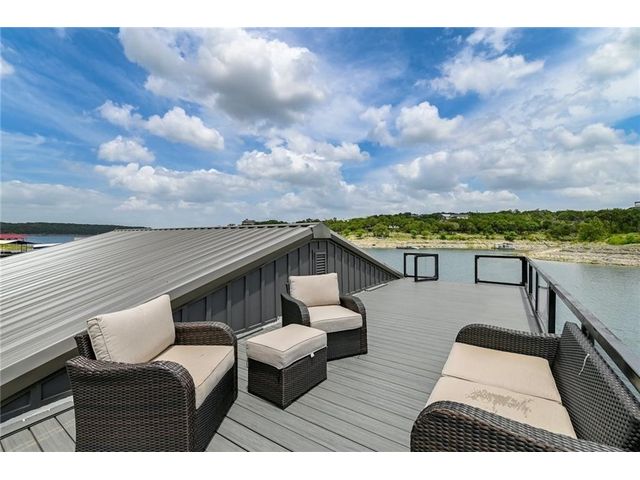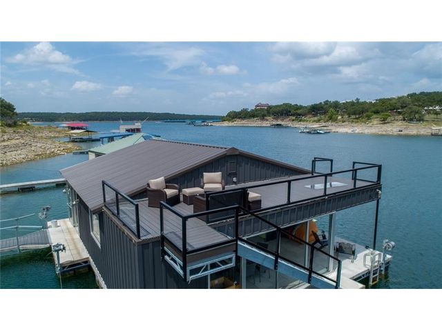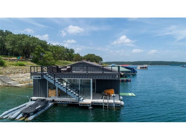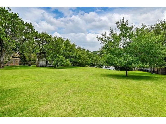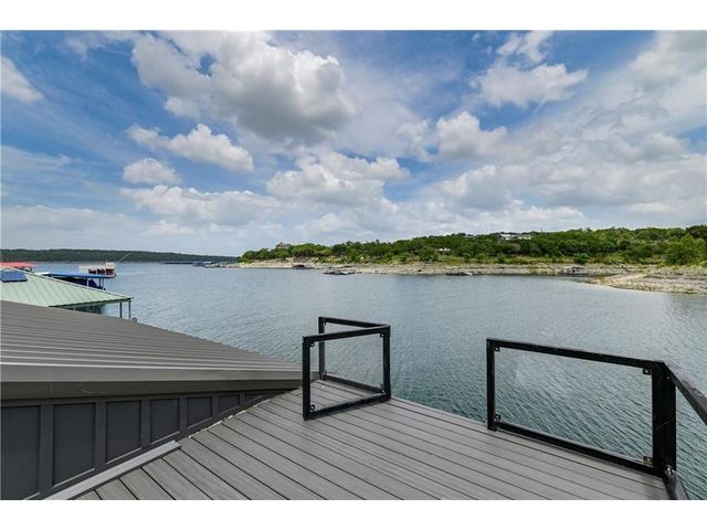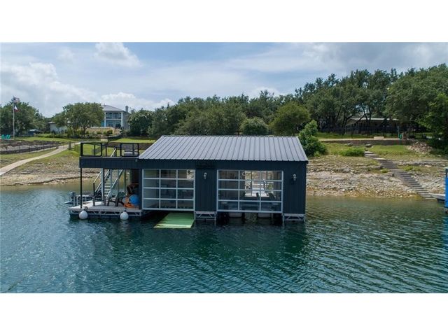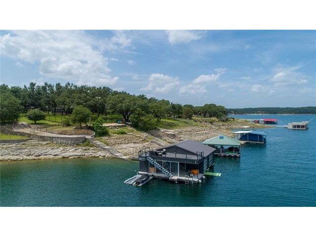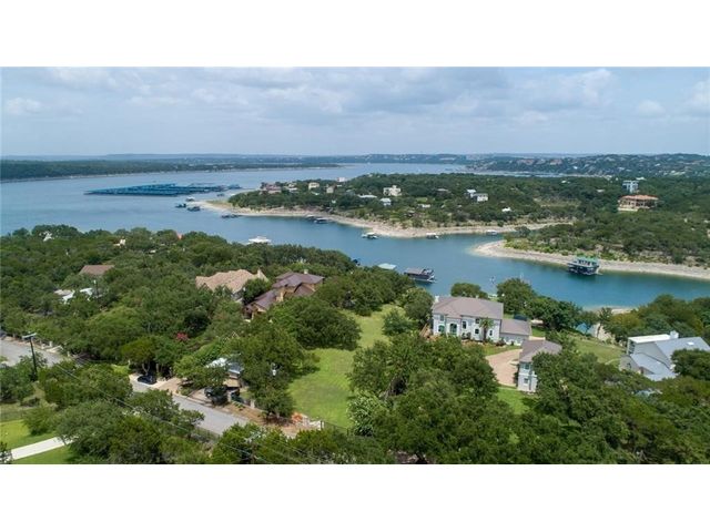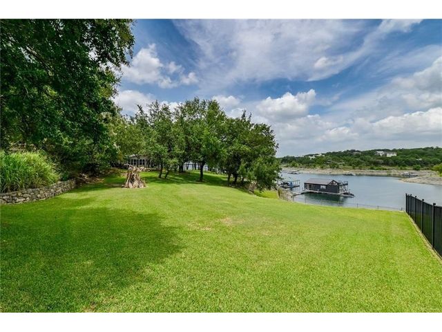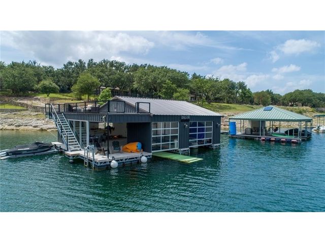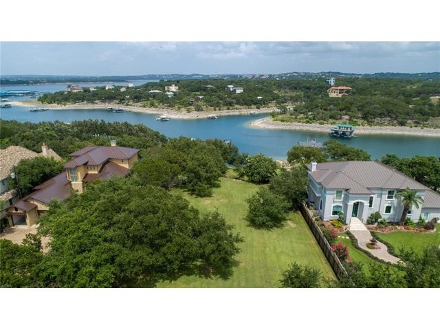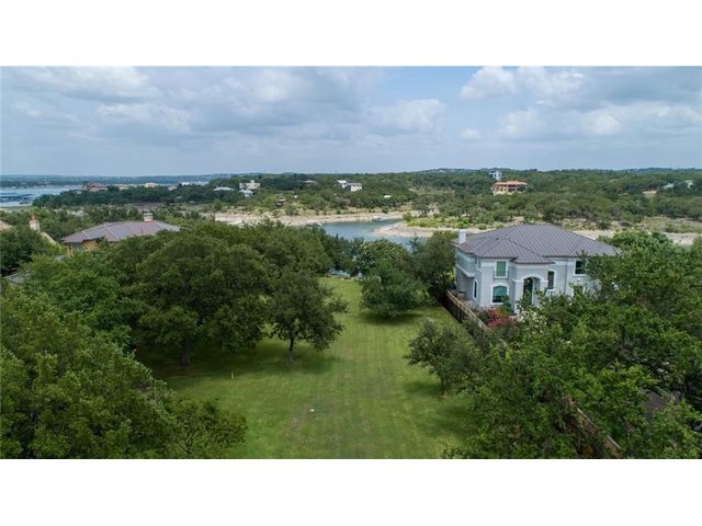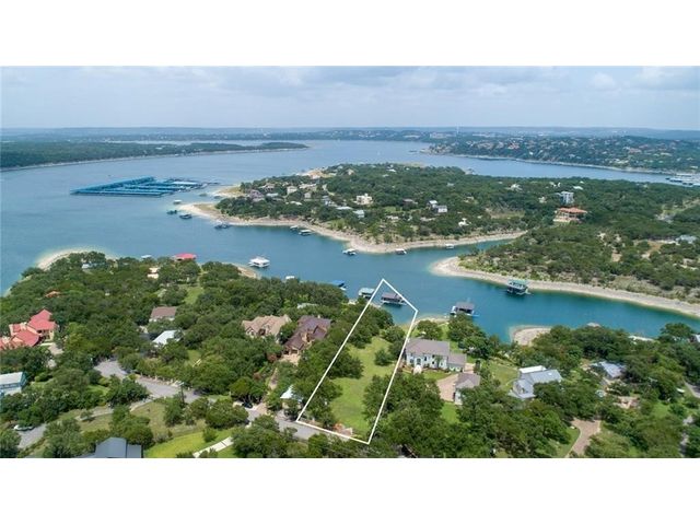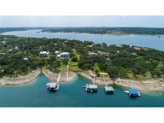 HUGE PRICE REDUCTION for this gorgeous Lakefront property in Lakeway with private dock! With over 200 feet of Lake Travis water frontage, this lot is ready for you to immediately embrace the beauty of the lake life in your fantastic boathouse with 2 boat slips, hydra lift, jet ski dock, wet bar, and spacious upper sun deck. Have fun while you design and build your dream home on the 2.6 acres of gently sloping land, beautiful oak trees and awesome waterfront views. The property also features rock accented terraces towards the waters edge, a storage unit and iron fence all around. Nestled in a private Cul-de-sac and surrounded by beautiful homes, this property offers a sense of exclusivity and community. It's an invitation to a lifestyle where every day feels like a vacation. Whether you're envisioning a peaceful retreat or an entertainer's paradise, this lakefront property provides the perfect canvas for turning your dreams into reality and making lasting memories in your own piece of paradise. Pictures show lake level on Spring 2023 & video is from April 2024. The water is lower now but dock is NOT on dry land. . Buyer to verify all LCRA, flood zone and city building guidelines.
