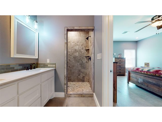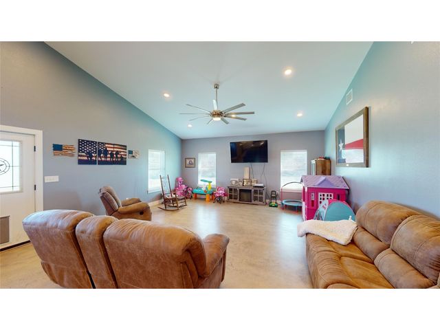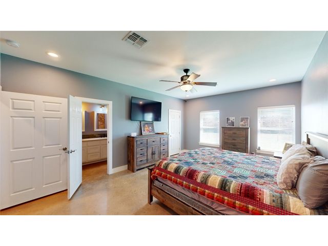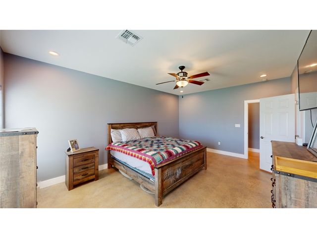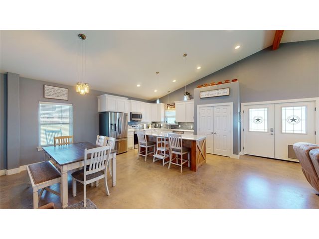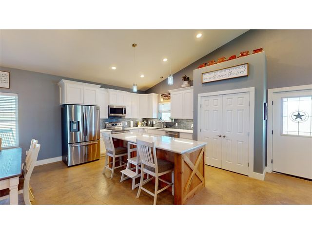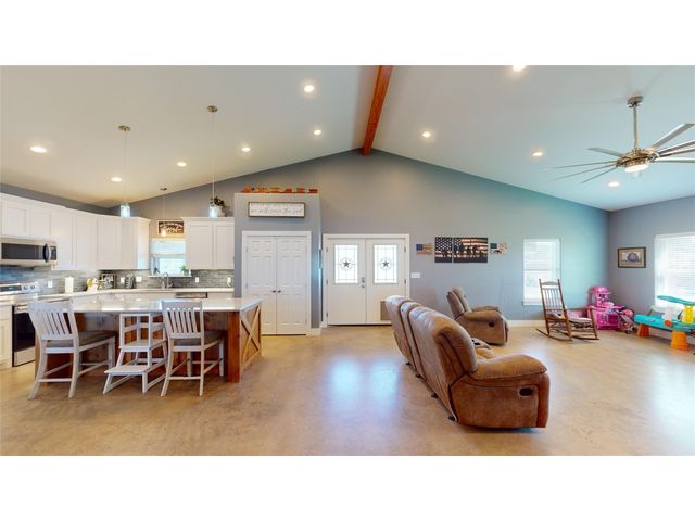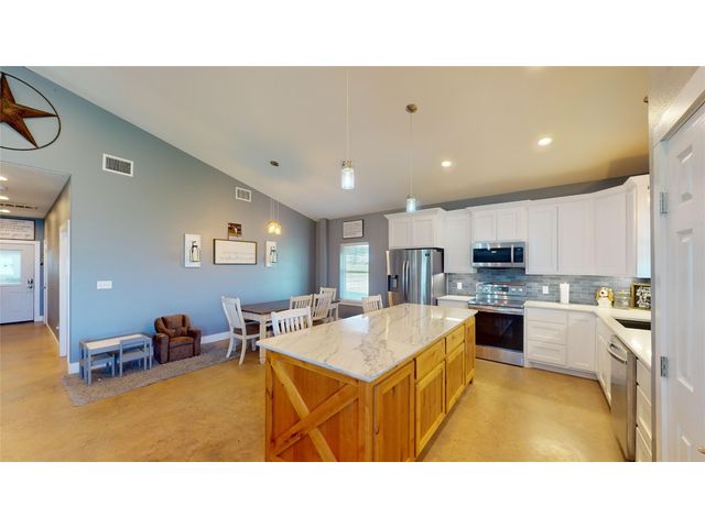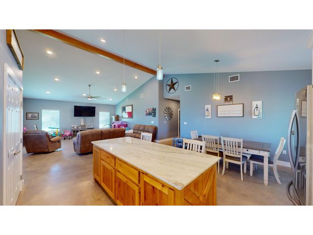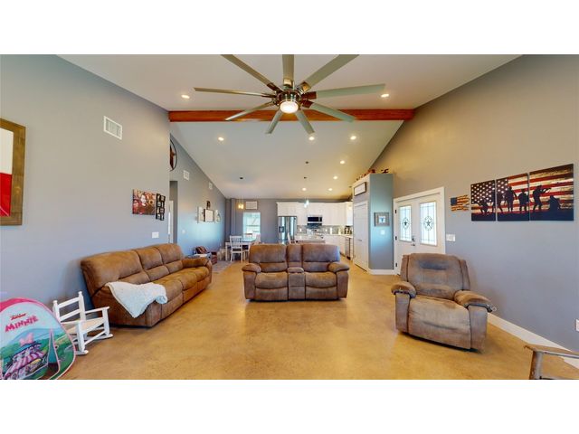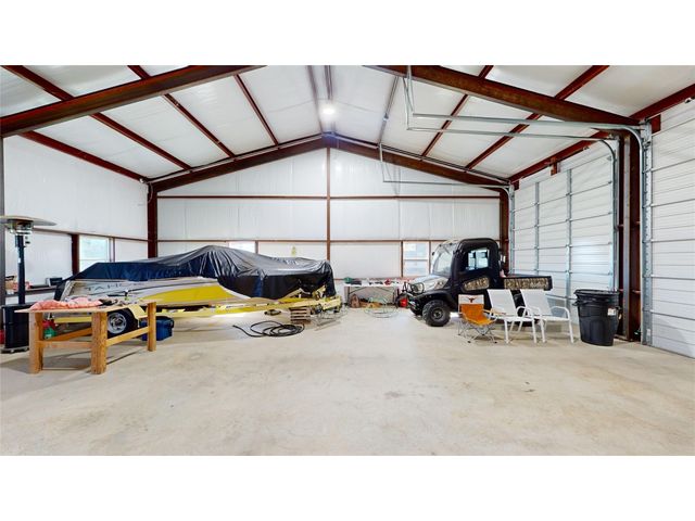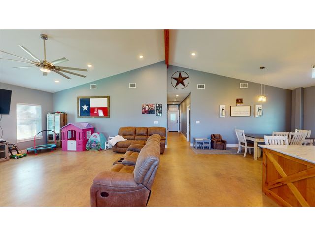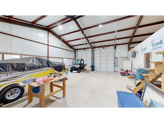 Gorgeous acreage with views overlooking 2 ponds & the countryside awaits you just minutes from Giddings, Texas! The 2020-built barndominium is a true haven of tranquility featuring comfortable living spaces & a modern design. The residence boasts 2 bedrooms w/walk-in closets, & 2 bathrooms. The primary bath has a double vanity & large walk-in shower. With its open floor plan & stained concrete floors, this home is perfect for both entertaining & living. The kitchen features quartz countertops, an oversized island, 5 burner electric range, refrigerator, & pantry. Take a stroll through the double doors to a covered porch w/ceiling fans overlooking 2 ponds & the countryside. Large 1,200 sqft garage w/loft is ideal for storage, entertaining, or to use as a workshop. Covered parking extends out from garage. Electric gate & fencing outlines the property. Mature trees scattered throughout pastures used for grazing. Conveniently located minutes from Giddings, restaurants, churches, stores, etc., this property offers the ideal country lifestyle. Lee Co Water, Bluebonnet Electric, Aerobic Septic. No minerals. Make this your own slice of Texas paradise & schedule your showing today!