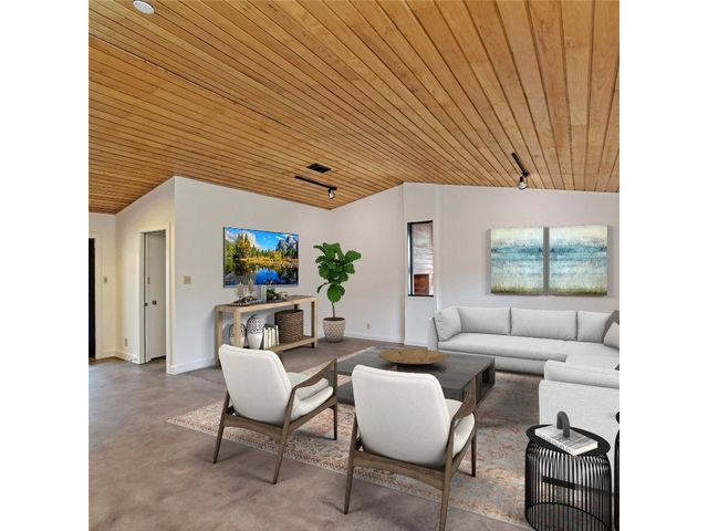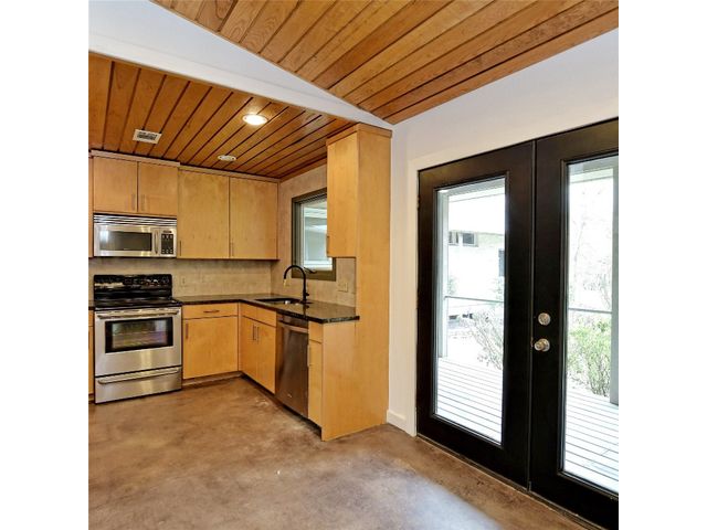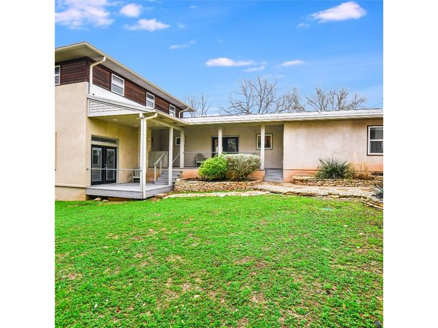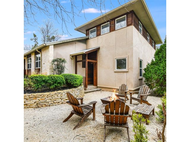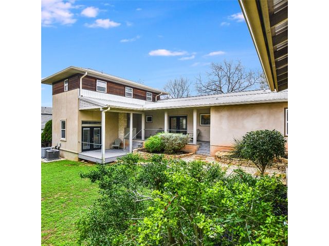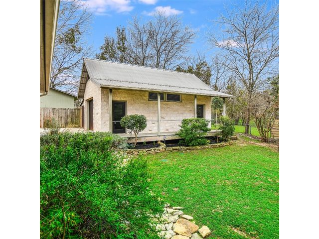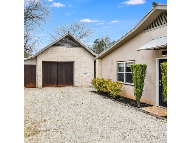 25K Buyer Update Credit. Welcome home to Bahama Rd. Concrete floors and wonderful natural light throughout. The large open, living / dining area boasts cathedral wood ceilings leading into the kitchen with custom maple cabinetry and double doors to an exterior covered porch. 2 primary bedrooms with their own entrances - The main floor primary has an adjacent study with kitchenette. The 2nd primary is in the tower (built in 2006) above one of the three living areas. This in-law layout offers multiple possibilities for guest, extended family, home office, additional bedrooms, or possible short-term rental. The detached stone garage/workshop has a barn door, covered porch, and additional storage. 2nd driveway off of the tower leads to additional outdoor living with a fire pit and private courtyard. Eanes ISD. Voluntary HOA includes Lake Austin access, beach area, boat ramp, community pool, picnic area, and clubhouse.