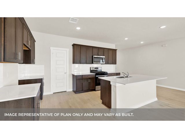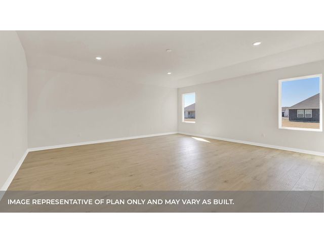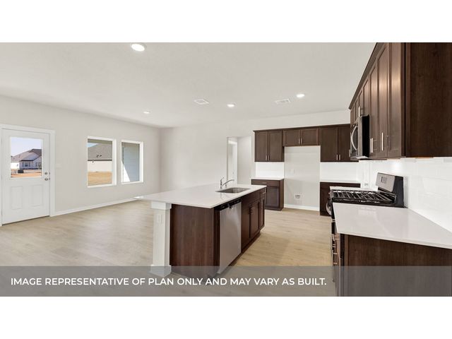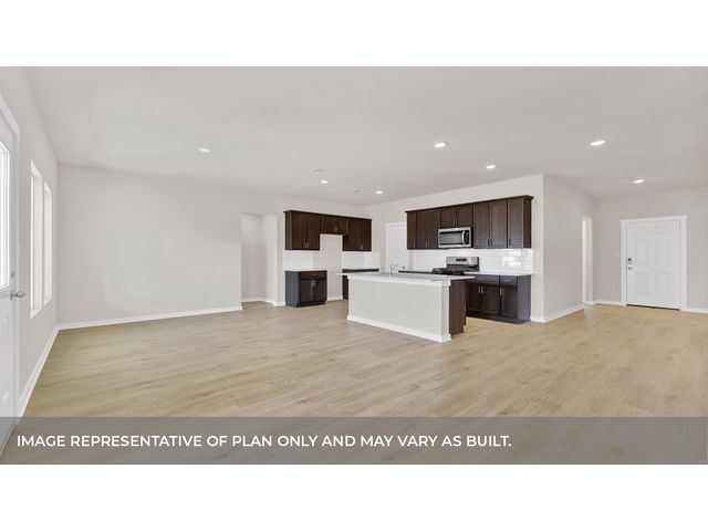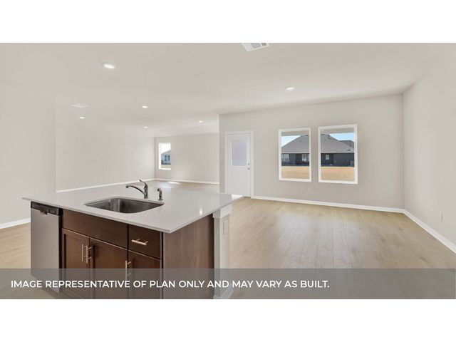 MOVE IN READY. The Garland is a thoughtfully designed floorplan that offers 2,134 square feet of living space across 4 bedrooms, 2 bathrooms. As you enter the home into the foyer, you'll pass a hallway with two spacious bedrooms and a bathroom in between. An extra bedroom is located across the hall with a spacious walk-in closet. Continuing into the home you will enter into the kitchen area. The kitchen offers a large kitchen island, decorative tile backsplash, quartz countertops, stainless steel appliances and walk-in pantry, perfect for entertaining. Extending off the kitchen is the dining room and open family room. The dining room looks out to the spacious covered patio. The main bedroom provides plenty of natural lighting, as well as a large walk in closet. The Garland also offers full yard sod, irrigation and gutters on the entire house. This home includes our HOME IS CONNECTED base package which includes the Alexa Voice control, Front Door Bell, Front Door Deadbolt Lock, Home Hub, Light Switch, and Thermostat.