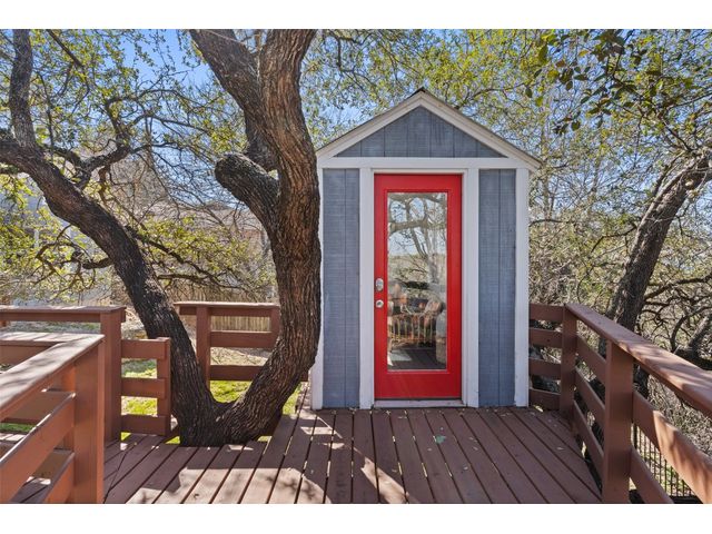 YOU CAN BUY THIS $650,000 home for the same payment as a $552,000 home. UPGRADE into this Home. SELLER FINANCING AVAILABLE with MUCH lower than market rates. Buyer can get a rate in the mid 4’s to mid 5’s depending on down payment, and SAVE $27k in closing costs. MINIMUM of 20% down and Buyer must get pre-approved with Leahy Lending for seller financing consideration. NO formal underwriting, MUCH lower closing costs, NO discount points, close as fast as 10 days. This charming 4BD/2BA abode sits on an impressive over half-acre lot backing to peaceful expanse of trees, providing a serene escape. Enjoy the amazing entertainer’s deck and 2nd floor balcony with panoramic views of rolling, tree-filled hills – perfect for soaking in the natural beauty and hearing the birds sing. Easy access to both Lake Austin & Lake Travis and just minutes from a wealth of Lakeway’s best eateries, shopping, and entertainment options. This home is a true gem, exuding authentic Austin vibes both inside and out. The backyard features a one-of-a-kind detached air-conditioned treehouse studio, ideal for meditation and epic sunset experiences. The interior is beautifully updated with desirable contemporary finishes, including LED recessed lighting, wood flooring, designer tile accents, Stainless Steel appliances, and sleek countertops. Upstairs, discover a secondary bedroom with access to the upper balcony, as well as a secluded primary bedroom complete with a large walk-in closet and a luxurious bathroom. Two perfectly sized secondary bedrooms are tucked away on the main level. Residents can take advantage of the fantastic Lake Travis ISD Schools and join Club Apache to enjoy the awesome amenities along Lake Austin, including a park, community pool, sports courts & fields, playground, boat ramp, and walking trails with waterfalls. Furnishings available for an additional $15K. This turnkey home is perfect for primary home buyers or STR investors/1031 exchange buyers.