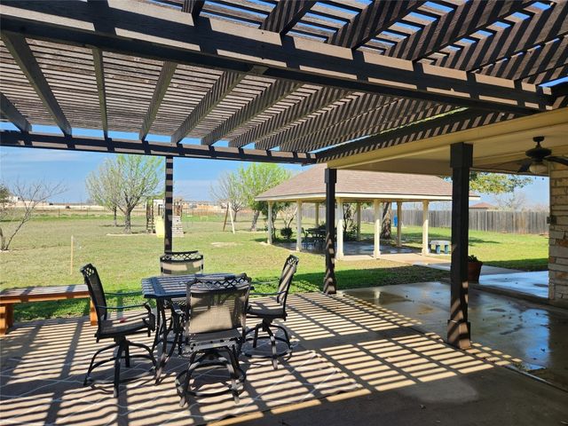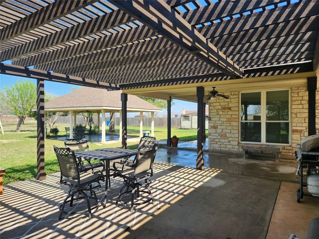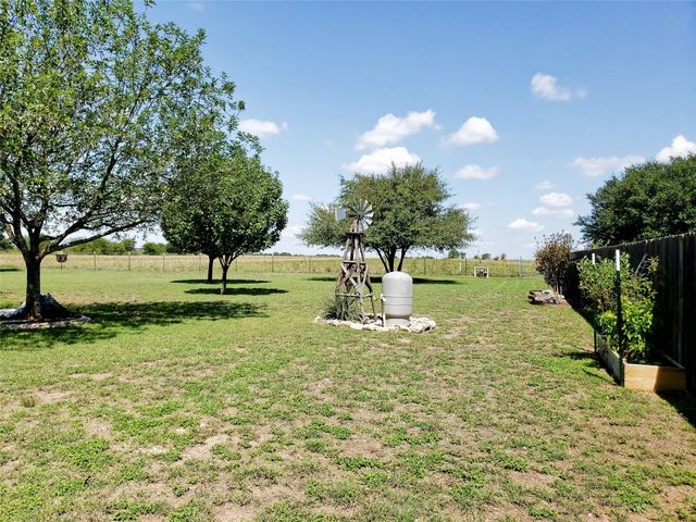 Great investment property for AirBnB just blocks from soccer, softball, and baseball fields. This John Siemering Custom Build ranch style home is country living outside city limits but close enough to all amenities. This well-kept four bedroom, two bath home is a great property for entertaining and wonderful for kids to run around and play on the fenced in ONE ACRE OF LAND with mature oaks and other trees, in a safe neighborhood with NO HOA/no restrictions. Fresh paint throughout the interior. The spacious open floor plan with travertine floors boasts a living area with stone gas fireplace and office with built in bookshelves and double doors ~ The floor plan has open living and dining area and ample living space ~ Large kitchen with island, featuring travertine backsplash, stainless steel appliances, cast iron sink, ample counter space, and lots of cabinets for storage for all your culinary essentials ~ Large windows provide views to the front, back, and side of the house and provide natural sunlight throughout. Private water well-head on-site is tapped into an aquifer that is shared within the neighborhood ~ Roof, windows, and HVAC are recent ~ oversized spacious garage is detached and connected with covered breezeway ~ covered gazebo patio, large pergola patio, front and back porch, and storage shed. The garage opens up to the backyard with a 2nd garage door. side access allows for vehicles to come in to backyard. Nearby is Old Settlers Park with beautiful trails and sport courts and playgrounds is just down the street, as is Meadow Lake Park ~ Situated in the desirable Round Rock area, it's a rare opportunity to own a home on a substantial piece of land yet still enjoy easy access to so many amenities, including good schools, beautiful parks, shopping, sports venues and more! ~ Just 20 minutes to Taylor and Austin, few minutes to Round Rock Historic District, 5 minutes to Dell Diamond, 5 minutes to Kalahari Resort.
