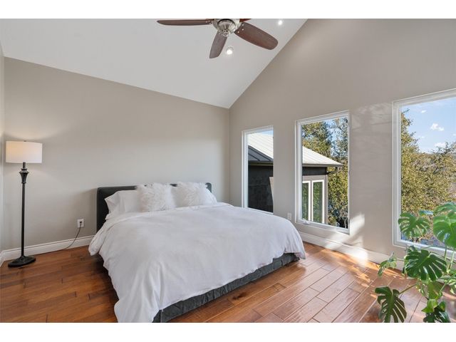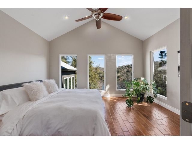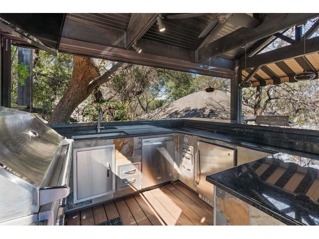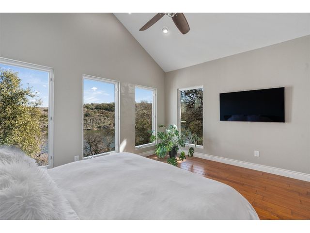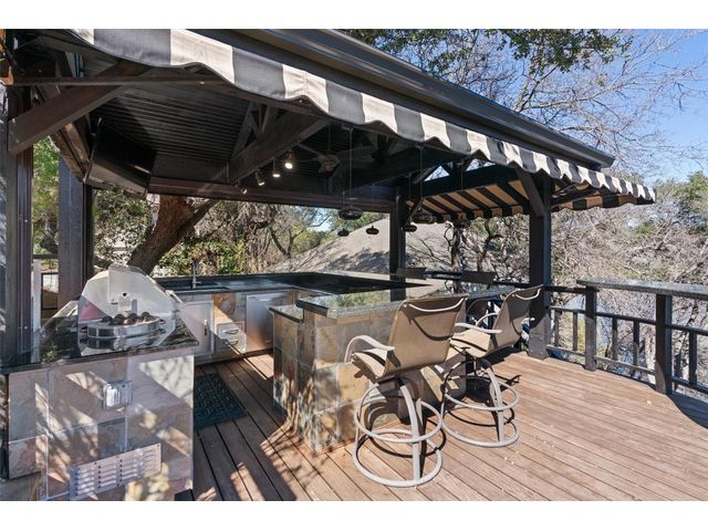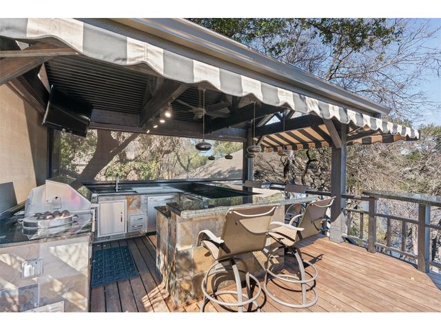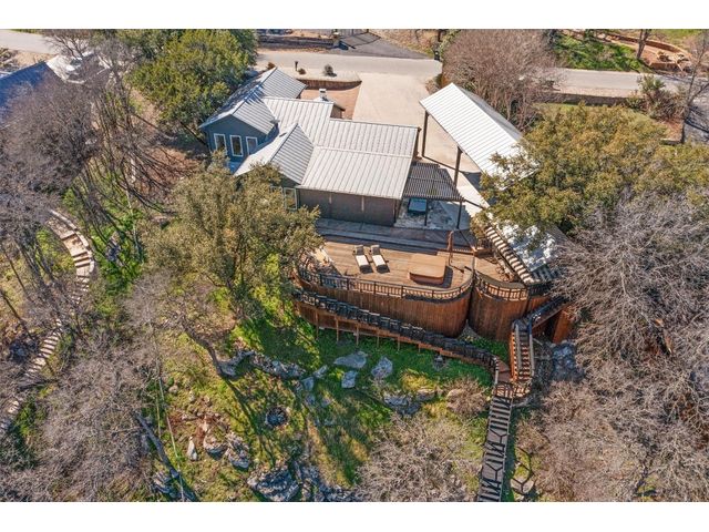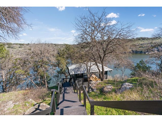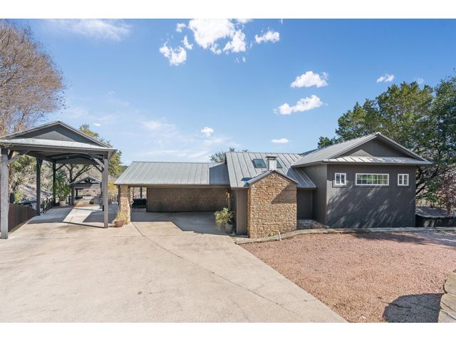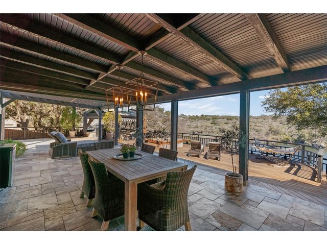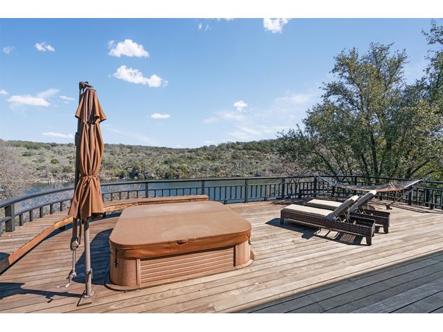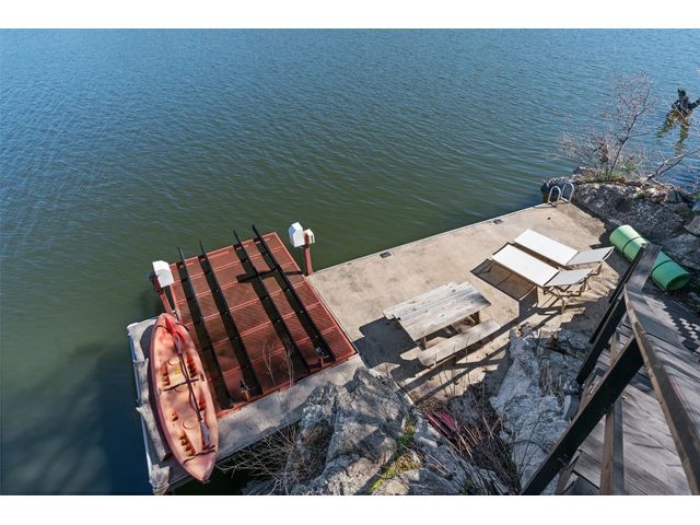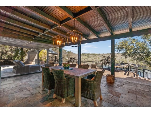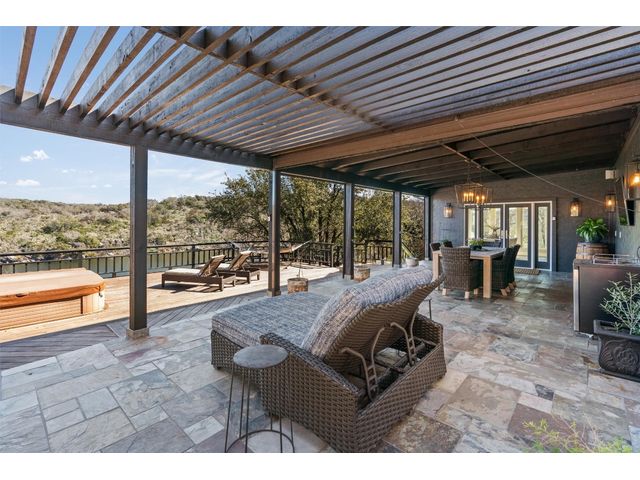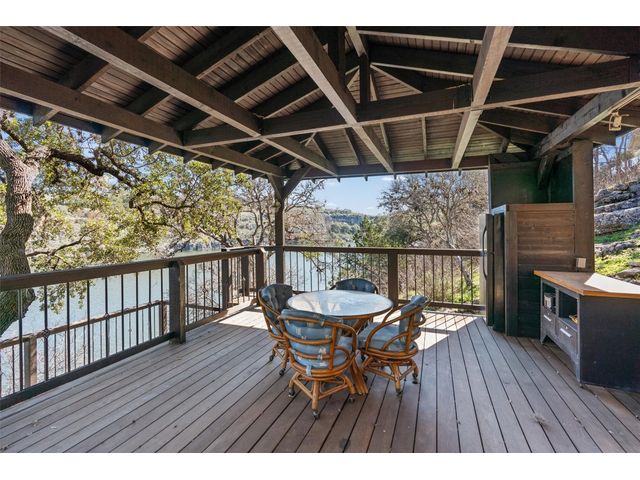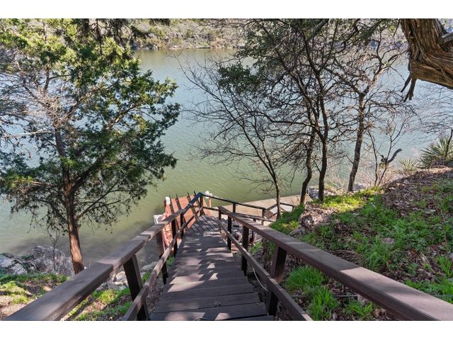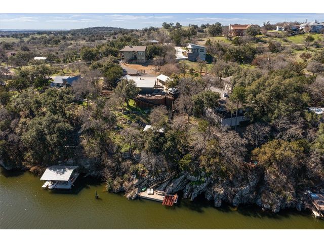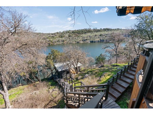 Nestled in the serene beauty of Lake Marble Falls, this stunning and secluded lakefront residence offers a truly captivating experience. From the moment that you step onto the property, you are greeted by panoramic views of the lake and rolling hills. The home boasts luxurious features such as extensive Ipe wood decking that seamlessly blends indoor and outdoor living, a fully equipped outdoor kitchen on the upper level; perfect for entertaining, and a charming cabana accessed by a connecting stairway where you can unwind and soak in the tranquility of the setting. Venture to the concrete boat dock equipped with an electric lift, inviting you to take a leisurely swim or try your hand at fishing in the clear waters. With ample parking space, including room for an RV, convenience and comfort are at the forefront of this lakeside retreat. Every corner of the residence has been thoughtfully designed to maximize the stunning views, from the inviting indoor-outdoor living areas to the cozy dining space and the luxurious primary bedroom. Come and discover the serenity of this hidden gem, tucked away on one of the most enchanting streets along the waterfront. Experience the beauty, tranquility, and luxury that this lakefront oasis has to offer.