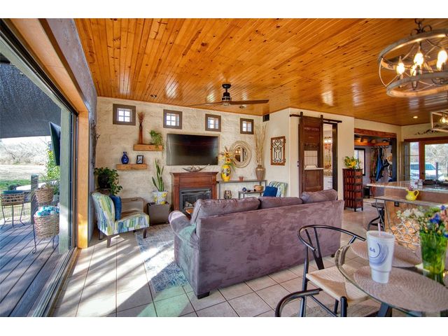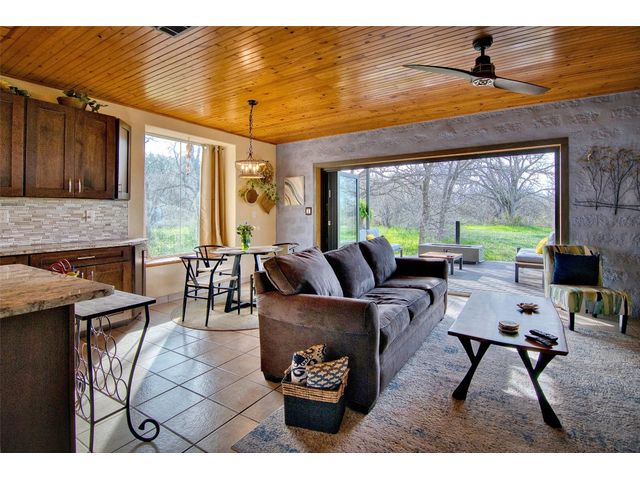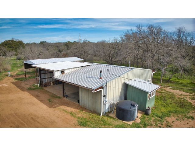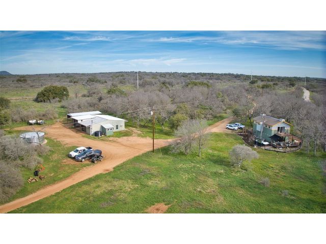 Tucked away off of CR 316 in Llano County is this Hill Country Charmer, located on 25 +/- acres. Relax and unwind on this beautiful property which the sellers have lovingly made inviting for the new buyers and their family and guests. The nuances they have put into the landscaping and home will be noticed immediately. Upon entry into this charmer, you will notice the bead board ceiling. To the right is a nook for coats and shoes. Located immediately after that is the half bath with a unique door, which is an actual antique. Granite countertops, stainless steel appliances and a nice island accent the kitchen. Weather permitting, you can walk directly to the patio without obstruction. The patio doors open completely to create an open outdoor feel. If it’s a bit chilly, fire up the firepit, hop in the hot tub and enjoy the outdoors. This home creates not only a place to rest your head, but a special feeling and a sense of calm. The upstairs has 2 bedrooms, a full bath and a bedroom/office. From the master bedroom is a balcony with great views. A short walk from the house is the firepit area where many fireside chats and adult beverages can be enjoyed. Towards the back of the drive is the large 1200 sq. ft. shop. There is also a 925 sq. ft. climate controlled bunkhouse which sleeps 5, and includes a composting toilet and outdoor shower. It also houses the laundry room. There’s a 20x40 pole barn with 12’ eves, and 30/50 amp RV hookups. The rainwater collection system is 20,000 gallons and has a multi-filtration system and tank circulation. There is also a working well and a holding tank. The sellers have lived there for 15 years with and have had no issues with not having enough water. There is a wildlife exemption on the property. It comes fully furnished inside and out, except for a few items such as the computers and a few other personal belongings. All of the outdoor experience items are included!