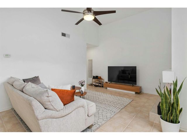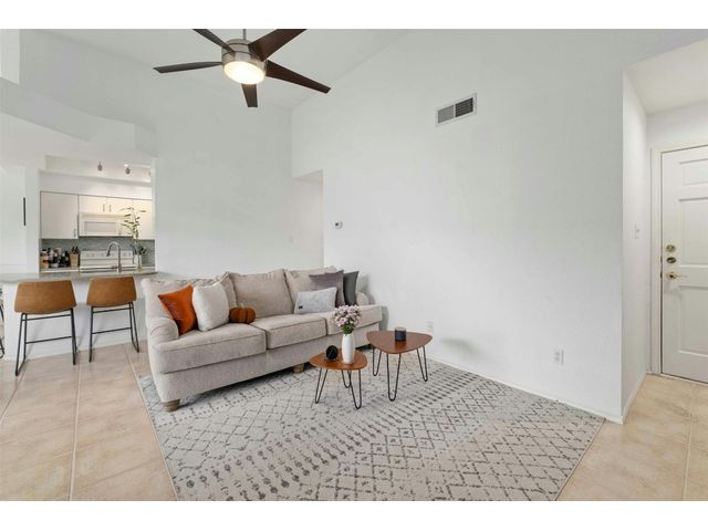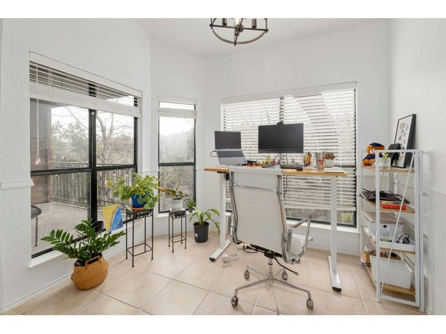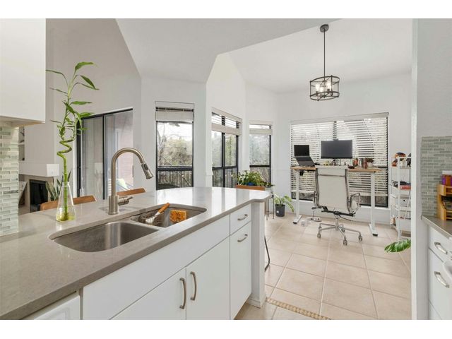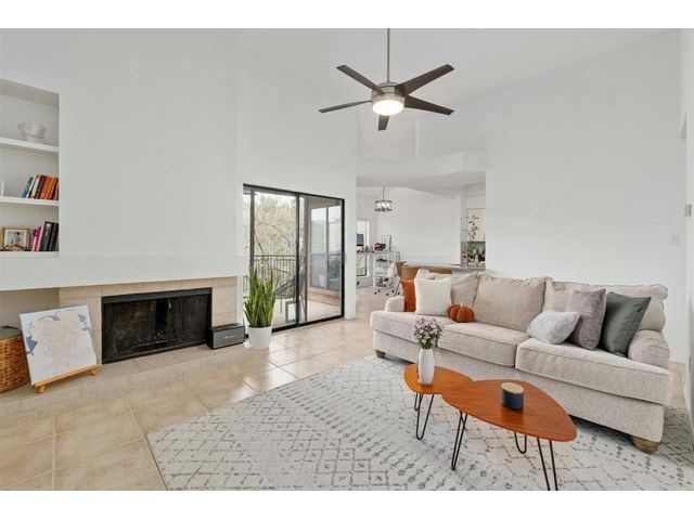 Natural light pours into this adorable, spacious two bedroom condo in the highly sought after community of Stillhouse Canyon! With high ceilings, tons of windows and natural light, the space feels bright and airy while maintaining a coziness with features such as the fireplace and gorgeous views of nature everywhere you look. The spacious, private balcony overlooks greenspace and will not be developed- This peace and serenity of nature with the trees the birds is quite amazing for this location right in the heart of Austin. This two bedroom layout is just right with a larger primary bedroom + a large walk-in closet! The kitchen updates include countertops and backsplash and more, with a breakfast bar overlooking the large living room. with built in shelving, multiple closets including one on the patio, every inch of space in this condo was put to good use! No carpet makes for easy cleaning, and this unit has full sized laundry room IN unit! Spend your mornings drinking coffee and soaking in some nature on the patio, and spend your evenings by the community pool! This gated condo community is located right off of Spicewood Springs Road between MOPAC & 360, allowing quick access around Austin, and walkability to the nearest grocery store and restaurants. This cutie condo is a MUST SEE!