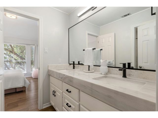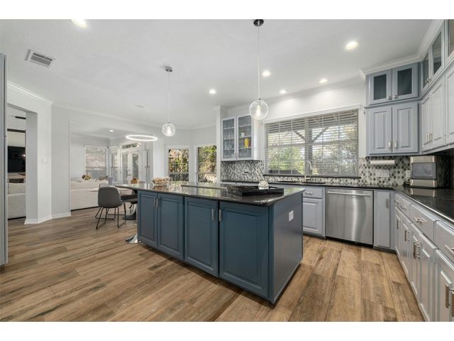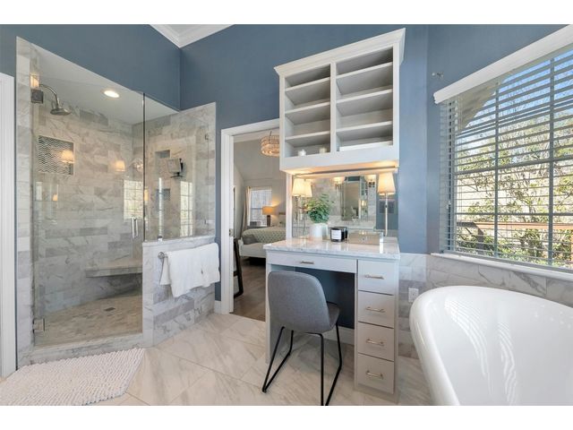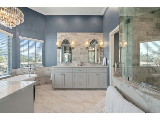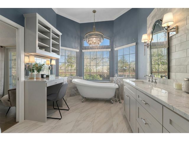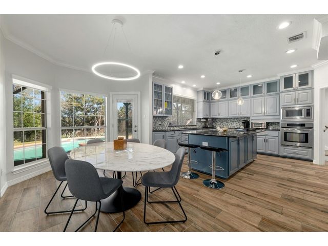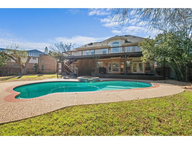 Welcome to your very own Austin paradise! Nestled in the heart of the Texas Hill Country, this exquisite completely updated property offers more than the perfect family home in EANES ISD: Luxury living meticulously designed with impeccable attention to detail, breathtaking panoramic views and impressive curb appeal with towering shade trees and lush landscaping. This true open floor plan is an entertainer’s delight offering multiple living and dining areas, 5 bedrooms, 4.5 bathrooms and even Nanny Headquarters. The stunning gourmet kitchen is ready for the chef in your family with stainless steel appliances including an induction cooktop, gleaming granite counters, upgraded lighting and fixtures, large island/breakfast bar and abundant cabinet and counter space. The primary suite features high coffered ceiling, large walk-in closet with built-ins, plus private entry to the back balcony where you can enjoy the beautiful Texas sunsets. Retreat in luxury to your spa-like primary bathroom with chandelier lighting, dual vanity, separate walk-in shower and soaking claw foot tub to relax after a long day. Generous sized secondary bedrooms upstairs feature two ensuites and two more that share a Jack and Jill style bathroom with double sink. Step outside to your private backyard oasis complete with covered deck, sparkling pool, outdoor shower, multiple outdoor living areas and private access to the greenbelt. Located in the prestigious Barton Creek West community, within walking distance to exemplary Elementary and Middle Schools, and numerous community amenities such as pools, playgrounds, sports courts and lots of trails the explore the beautiful surroundings. This property offers the perfect blend of privacy and convenience, with easy access to nearby shopping, dining, and entertainment options, you'll have everything you need right at your fingertips.