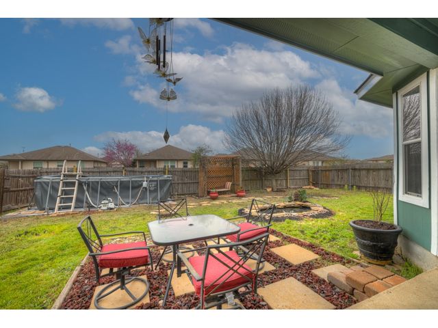 SELLERS NOW OFFERING 5K INCENTIVE TO BUYERS AT CLOSING!!! Welcome Home! This tranquil home in the heart of Kyle, Texas has so many neat features and is ready for you to call it your home! The open floorplan has plenty of space for all of your living and entertainment needs. The gourmet kitchen has been completely remodeled with a gas cooking range, quartz counter tops, custom cabinets and a custom built in kitchen table will make you feel right at home! The home has fresh paint on both the interior walls and exterior trim and siding and luxury vinyl plank flooring in all main areas. The roof is less than 1 year old. The spacious backyard hosts a pond with a solar water pump and a large back patio. The above group pool conveys! Don't miss the Panasonic solar panels that are paid off as an additional bonus to the buyer! Electric bills are as low as $25 per month. Home is within walking distance to schools and the community has a pool, playscape and basketball courts! Don't miss it! Washer, Dryer, Fridge convey! For certain qualified buyers, lender will cover the appraisal cost and contribute up to $2,000 as a closing credit!