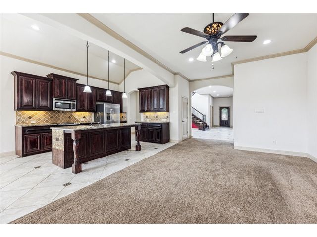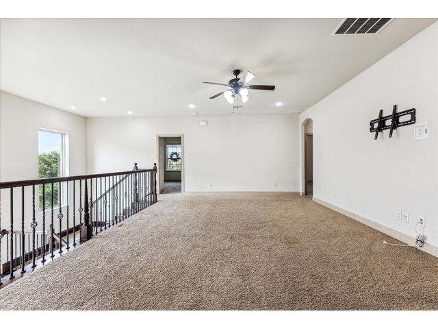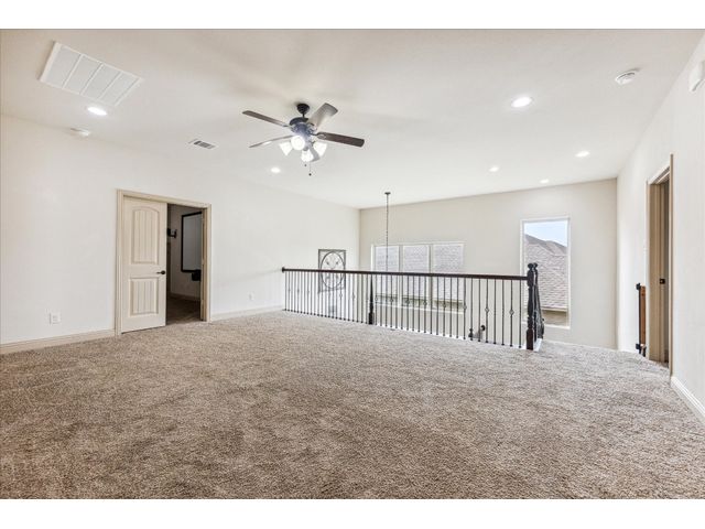 Motivated Seller! BRAND NEW HVAC UNIT 209 Prospector Lane, Liberty Hill, TX is located in the Stonewall Ranch neighborhood. It is a spacious home with 5 bedrooms and 4 bathrooms, offering ample space for a large family or those who enjoy entertaining guests. The open floor plan of the home includes a game room/loft, providing a versatile space for relaxation and recreation. Additionally, there is a media room with surround sound and a projector, perfect for movie nights or watching sports games. The home features a 3-car tandem garage, providing ample parking space for multiple vehicles. The primary suite boasts dresser vanities, a jetted tub, and a separate shower, offering a luxurious and spacious retreat. The kitchen features an island, eat-in breakfast area, and E-Star qualified appliances. The dining area includes large picture windows that span the first and second floors, allowing natural light to fill the room. The home also includes full automatic sprinklers, a covered patio, tankless water heater, and is Green and Energy Star Certified. These features not only contribute to the home’s comfort and convenience but also help to reduce energy costs and promote sustainability. Stonewall Ranch is a desirable neighborhood, conveniently located just east of Hwy 183 and HWY 29 intersection in Liberty Hill, TX, known for its scenic beauty and friendly community. Residents enjoy easy access to local amenities such as shopping centers, parks, and restaurants.