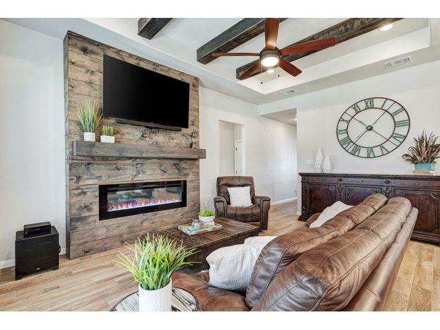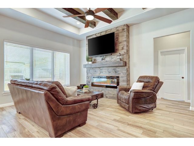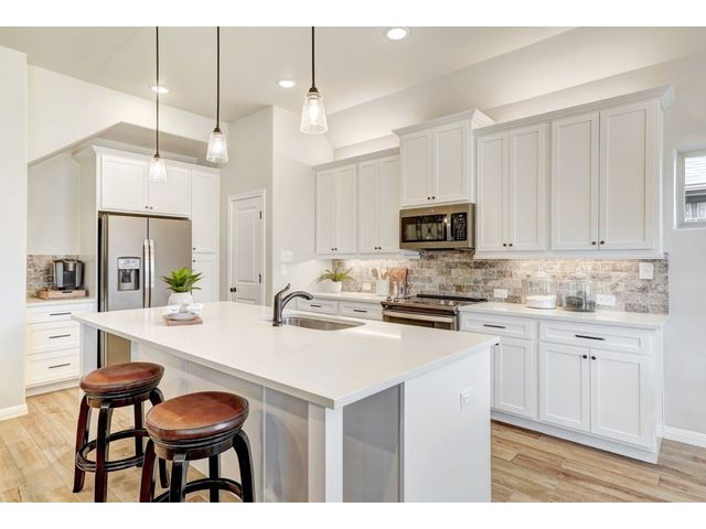 This gently lived-in and highly upgraded home truly is Better than New! The flexible floor plan meets a variety of needs for today’s modern family. The main level features two spacious bedrooms and two full bathrooms. Work from home in style in the dedicated office, complete with elegant French doors. Upstairs, you’ll find a spacious bonus room with a full bathroom and closet, offering endless possibilities. Whether you envision a guest suite, workout room, game room, second living area, or additional office space, this versatile room is sure to impress. Throughout the home, you'll find enhanced standard features such as high ceilings, rounded corners, and foam insulation, ensuring comfort and energy efficiency year-round. The living room boasts a beamed recessed ceiling and a custom electric fireplace with a floor-to-ceiling wood surround, creating a cozy ambiance for relaxation and entertainment. Plus, enjoy the convenience of a highly adjustable TV mount for optimal viewing angles. The kitchen is a chef's delight, upgraded with extra cabinetry featuring pull-out organizational drawers, a coffee bar area, and above-and-below cabinet lighting. Adorned with quartz countertops, elegant hardware, and a beautiful backsplash, this kitchen is as functional as it is stylish. Indulge in luxury in the primary bathroom, featuring a large walk-in tiled shower with a rain shower head and bench seat, perfect for unwinding after a long day. The garage boasts an epoxied floor, a wood workstation with peg board for storage and organization, a garage door opener, and an exterior keypad. Extra insulation was also added in-walls, ceiling and door. Meticulously landscaped yard with landscape lighting, full irrigation, front and back covered patios. The back patio features a ceiling fan with a Bluetooth speaker included. You have to see it to fully appreciate the thoughtful upgrades and attention to detail throughout.