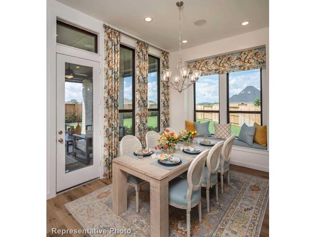 MLS# 7785019 - Built by Highland Homes - Ready Now! ~ Introducing an impeccably designed single-story sanctuary boasting four bedrooms and four full baths. This residence exemplifies luxury living with its upgraded kitchen, adorned with modern amenities to inspire culinary creativity. Throughout the home, revel in the timeless elegance of wood flooring, enhancing the aesthetic appeal of every room. Retreat to the primary bedroom, where a charming bay window creates a serene haven for relaxation. Indulge in the opulence of the primary bath, featuring a luxurious freestanding tub that promises blissful moments of pampering. Step outside to the extended outdoor living space, perfect for enjoying al fresco gatherings and leisure activities. Completing the picture-perfect landscape are lush greenery, full sod, and automated sprinklers in both the front and back yards, ensuring effortless maintenance and vibrant curb appeal. Embrace the epitome of refined living in this meticulously crafted residence, where every detail reflects sophistication and comfort!